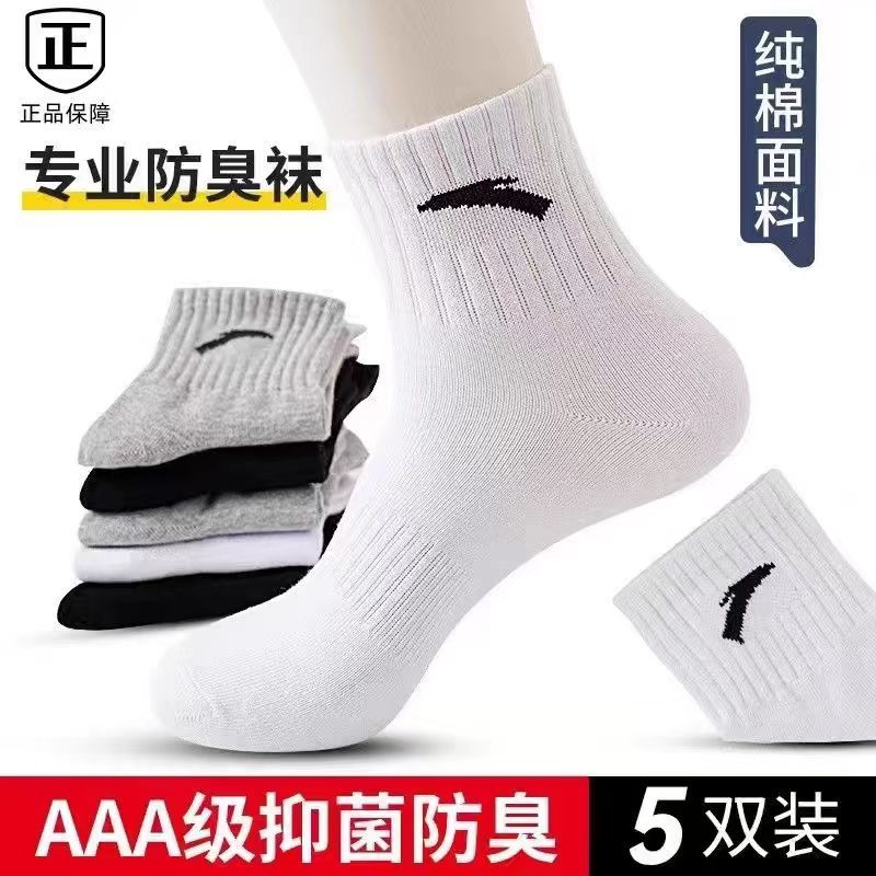 ANTA安踏正品男袜春夏秋袜防臭吸汗篮球白色袜子运动男女同款袜