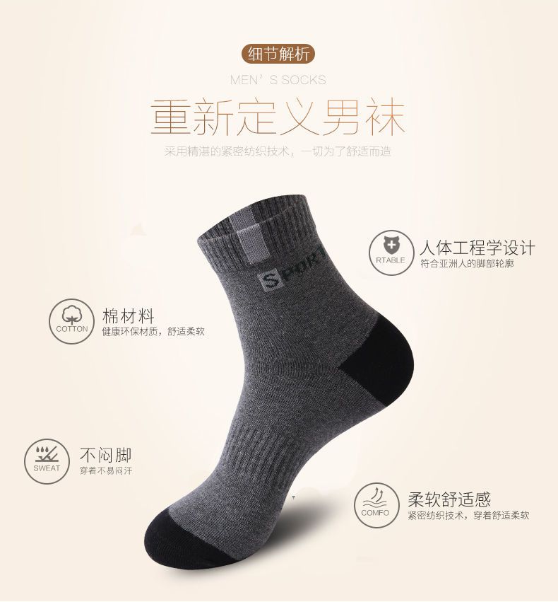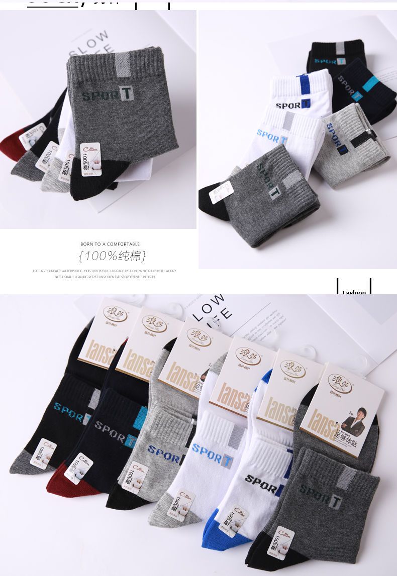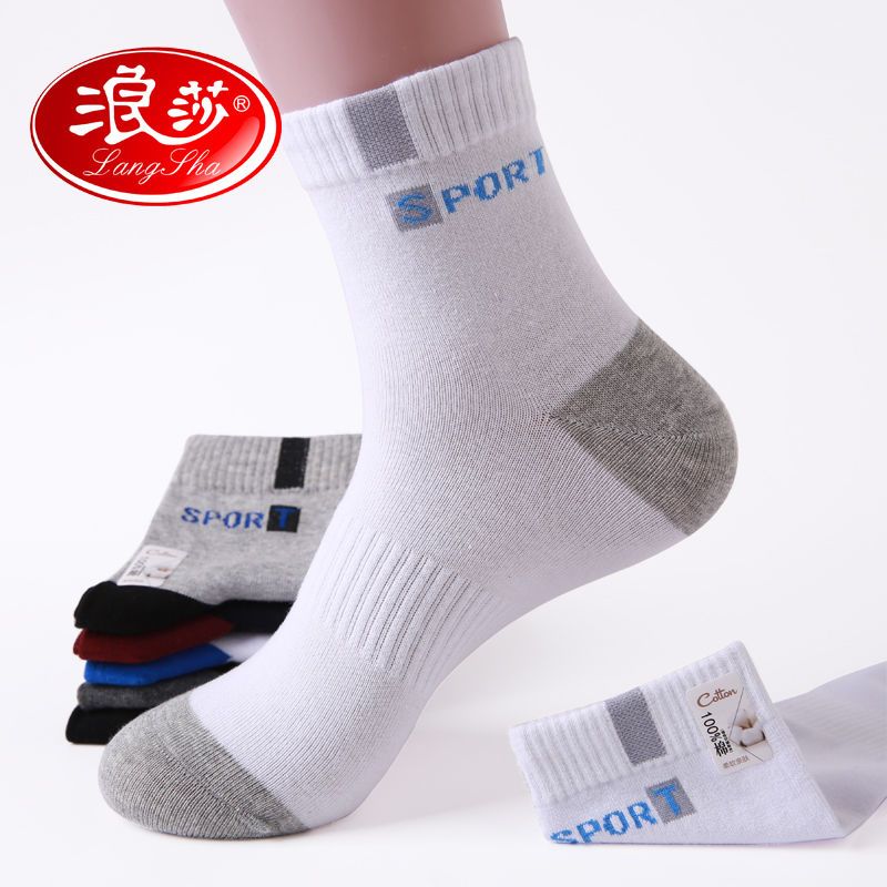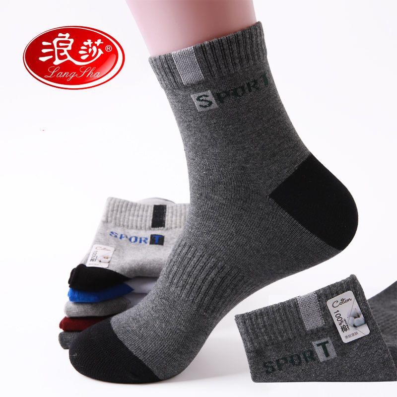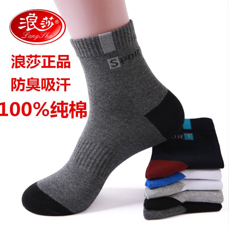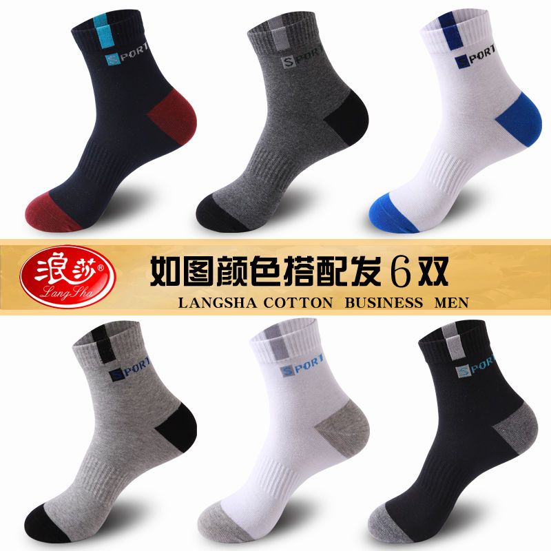 6双 浪莎男袜中筒春秋款纯棉袜吸汗透气男士短筒全棉防臭运动袜子