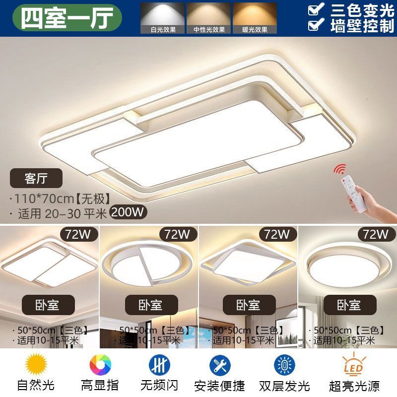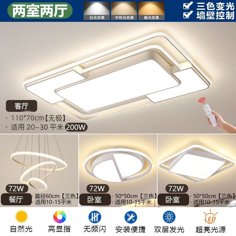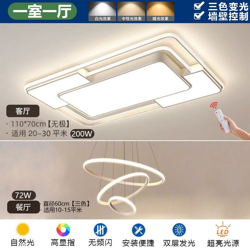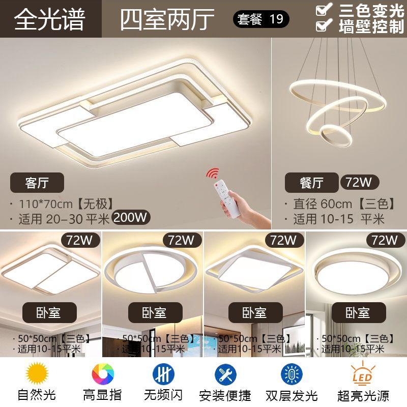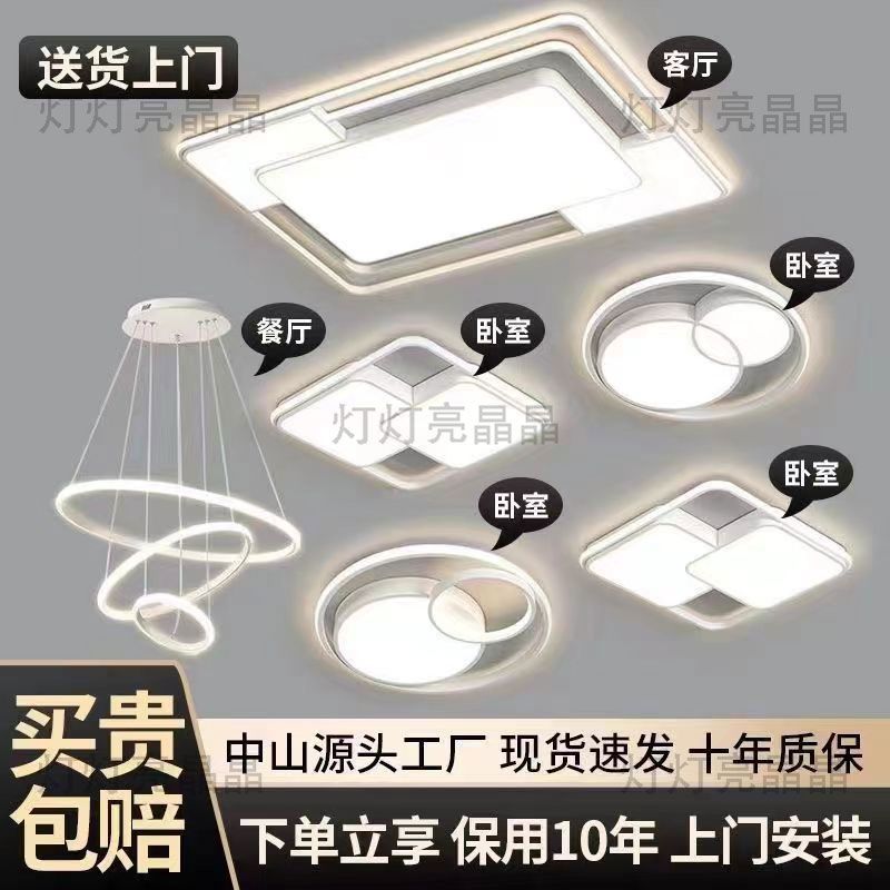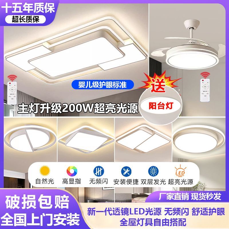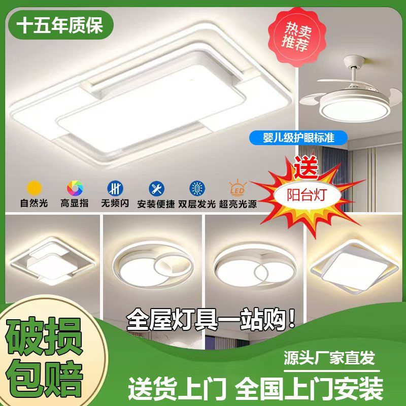 2024新款简约白色客厅灯现代长方形吸顶灯卧室灯家用全屋灯具套餐