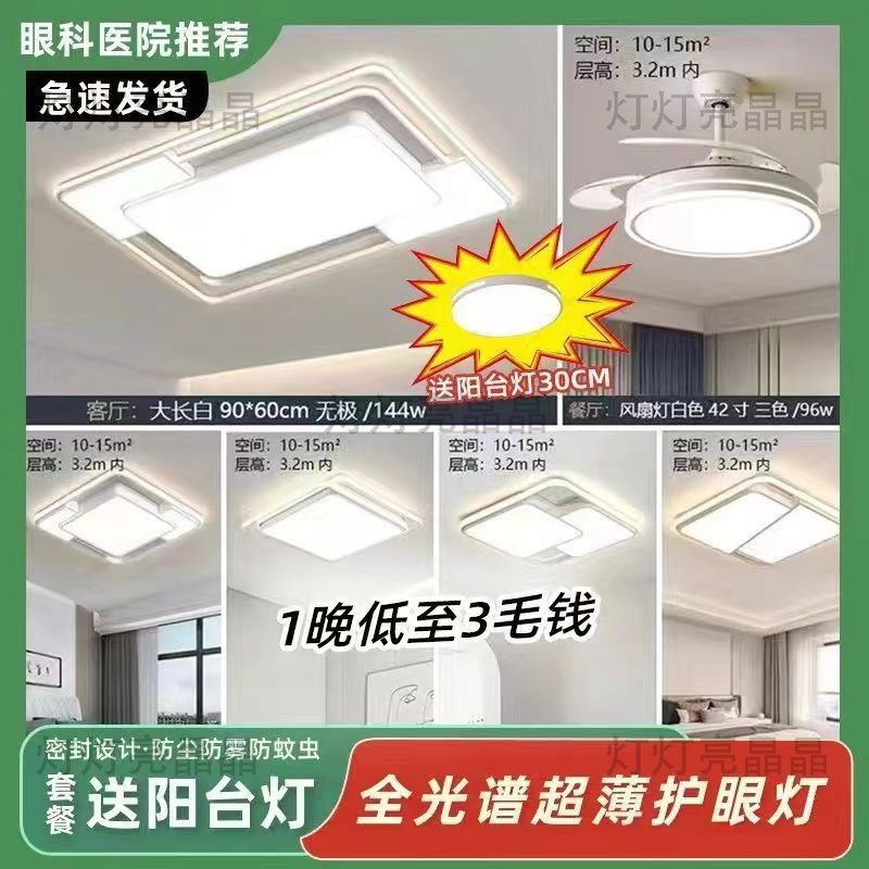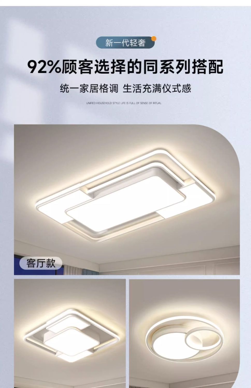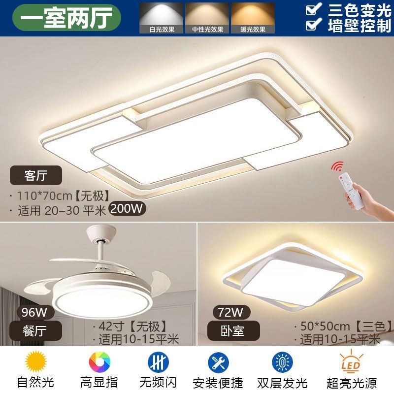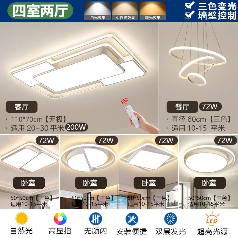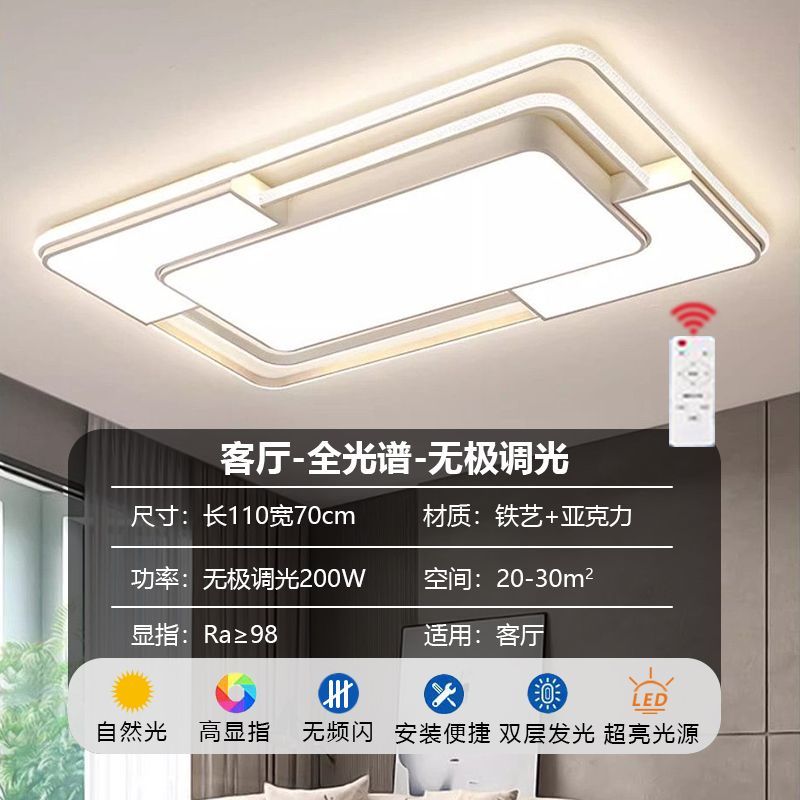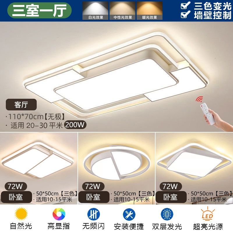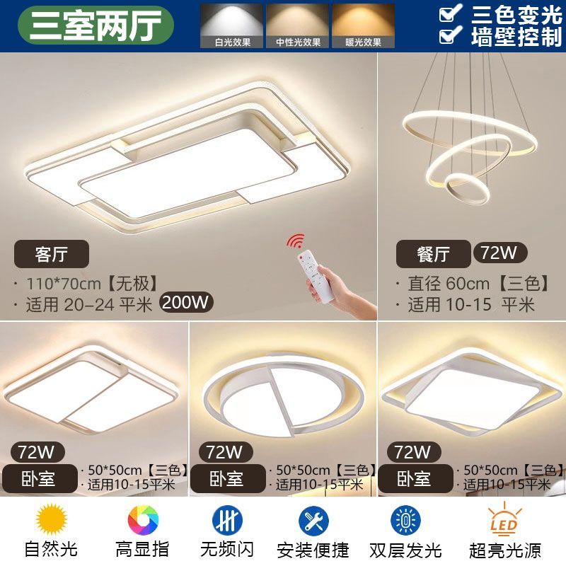 2024新款简约白色客厅灯现代长方形吸顶灯卧室灯家用全屋灯具套餐