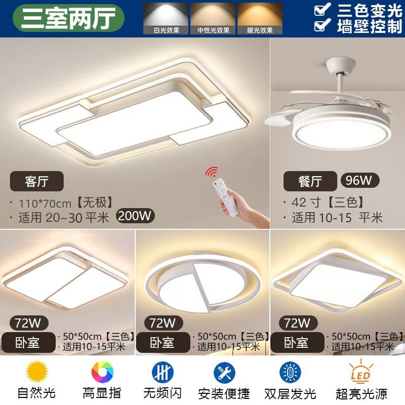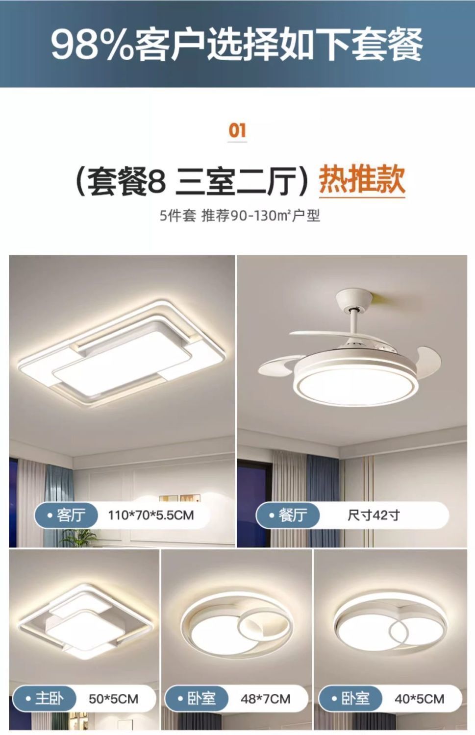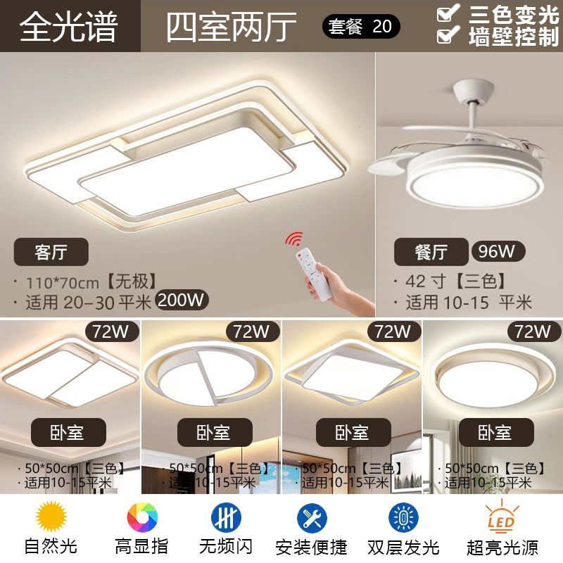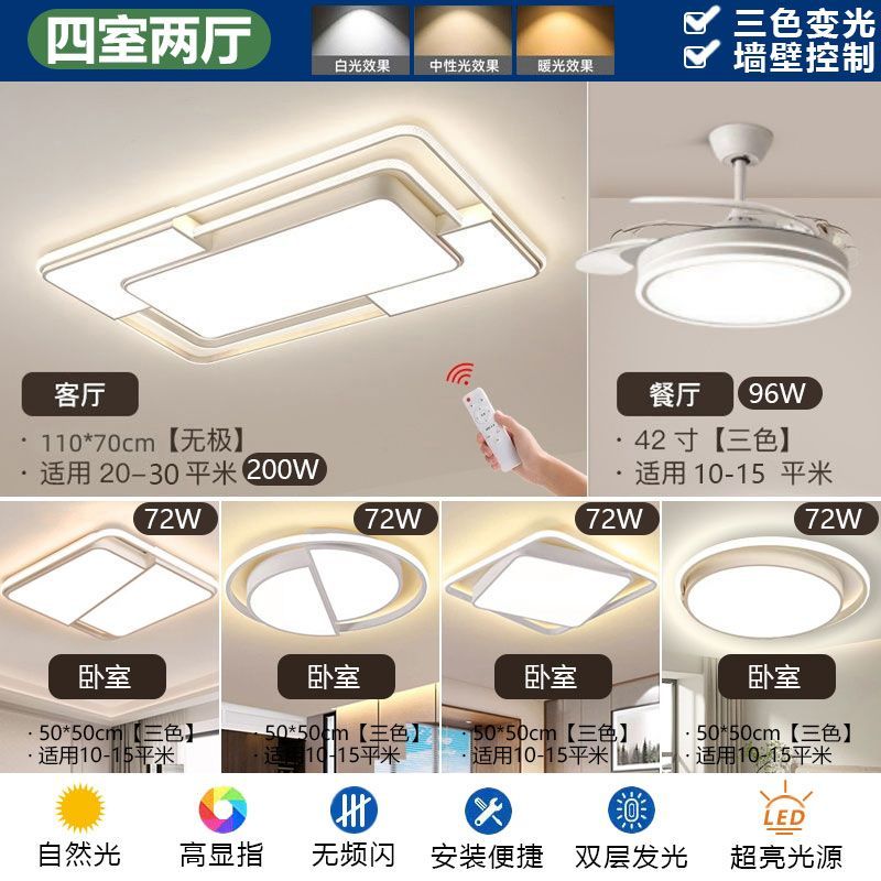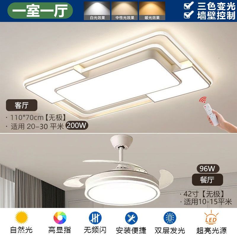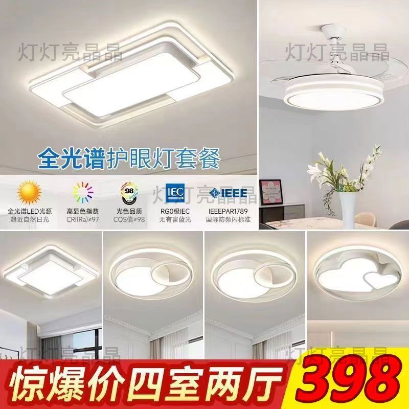 2024新款简约白色客厅灯现代长方形吸顶灯卧室灯家用全屋灯具套餐