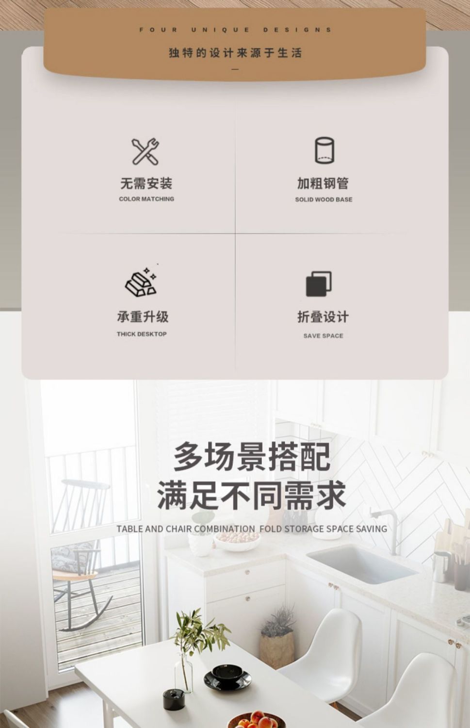 折叠桌简约家用餐桌小户型出租房简易吃饭桌便携长条小桌子长方形
