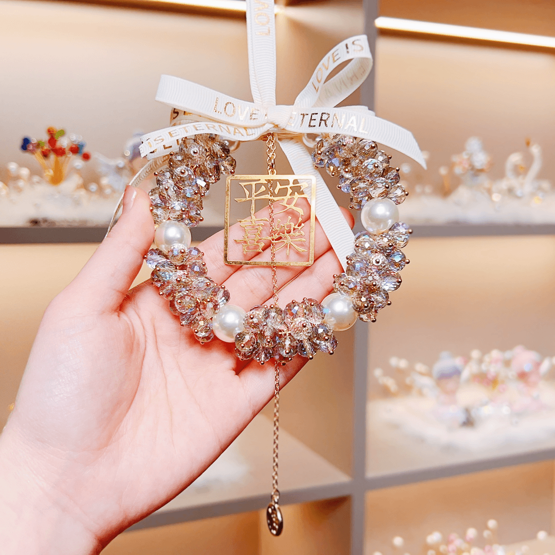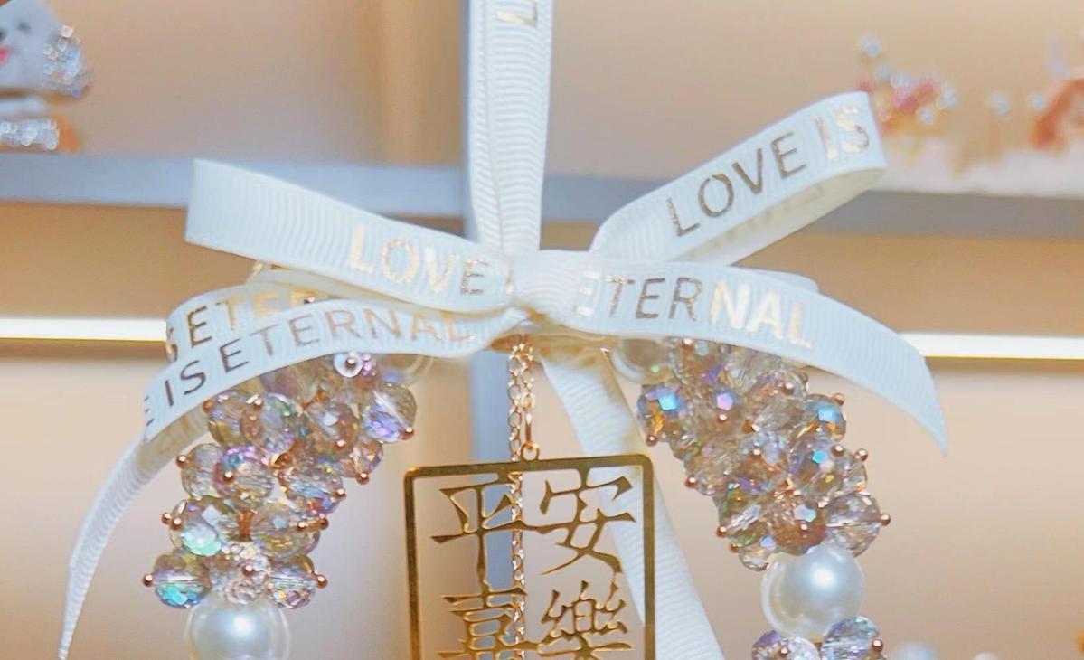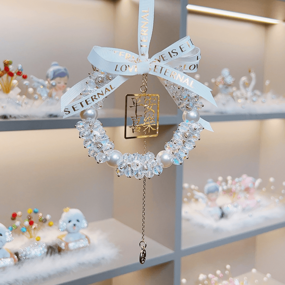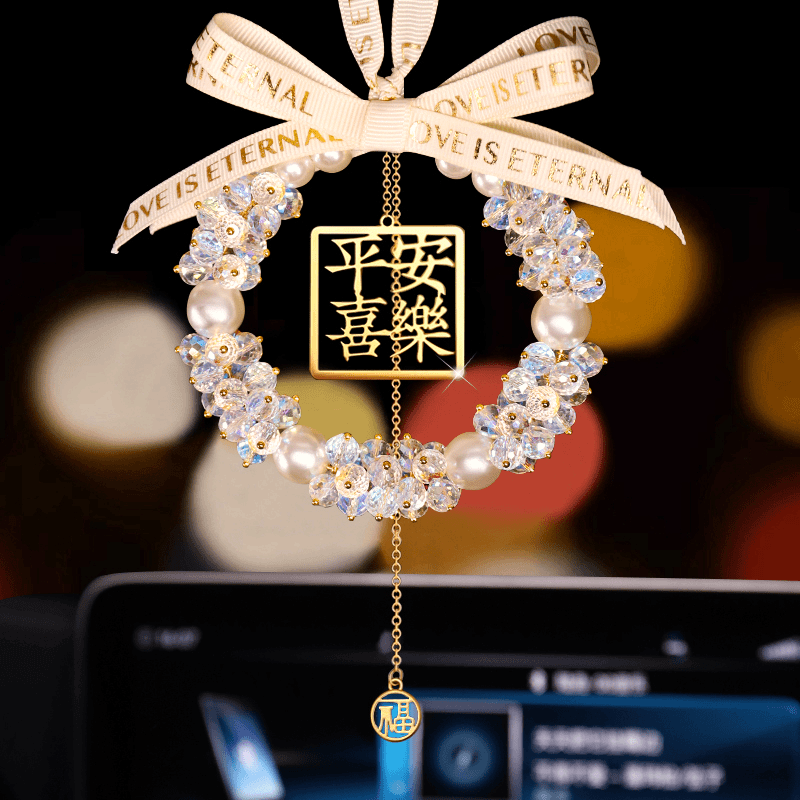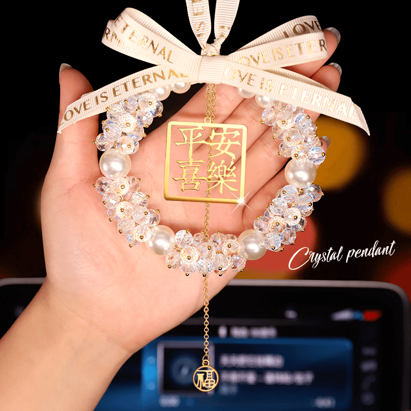 汽车挂件饰品女高档车载后视镜吊坠平安喜乐水晶车载吊坠挂件