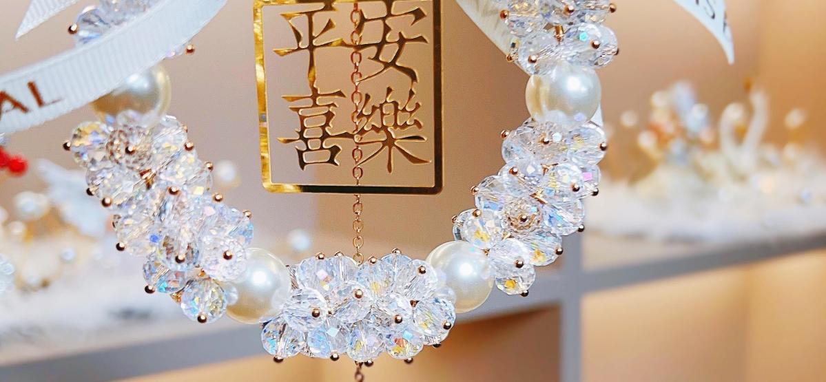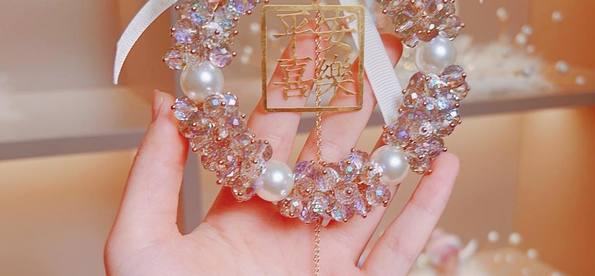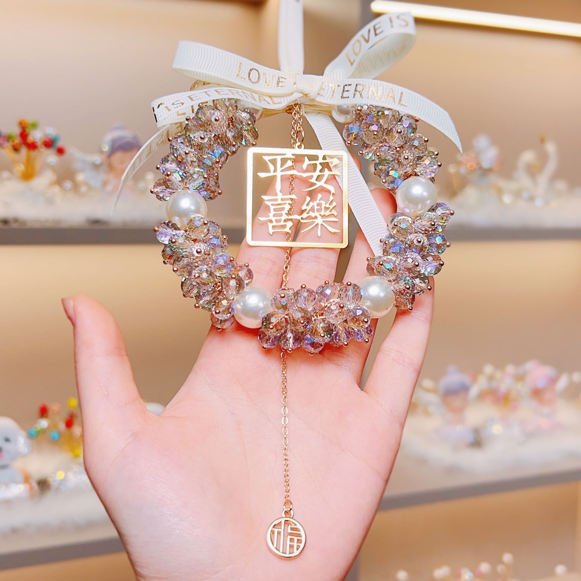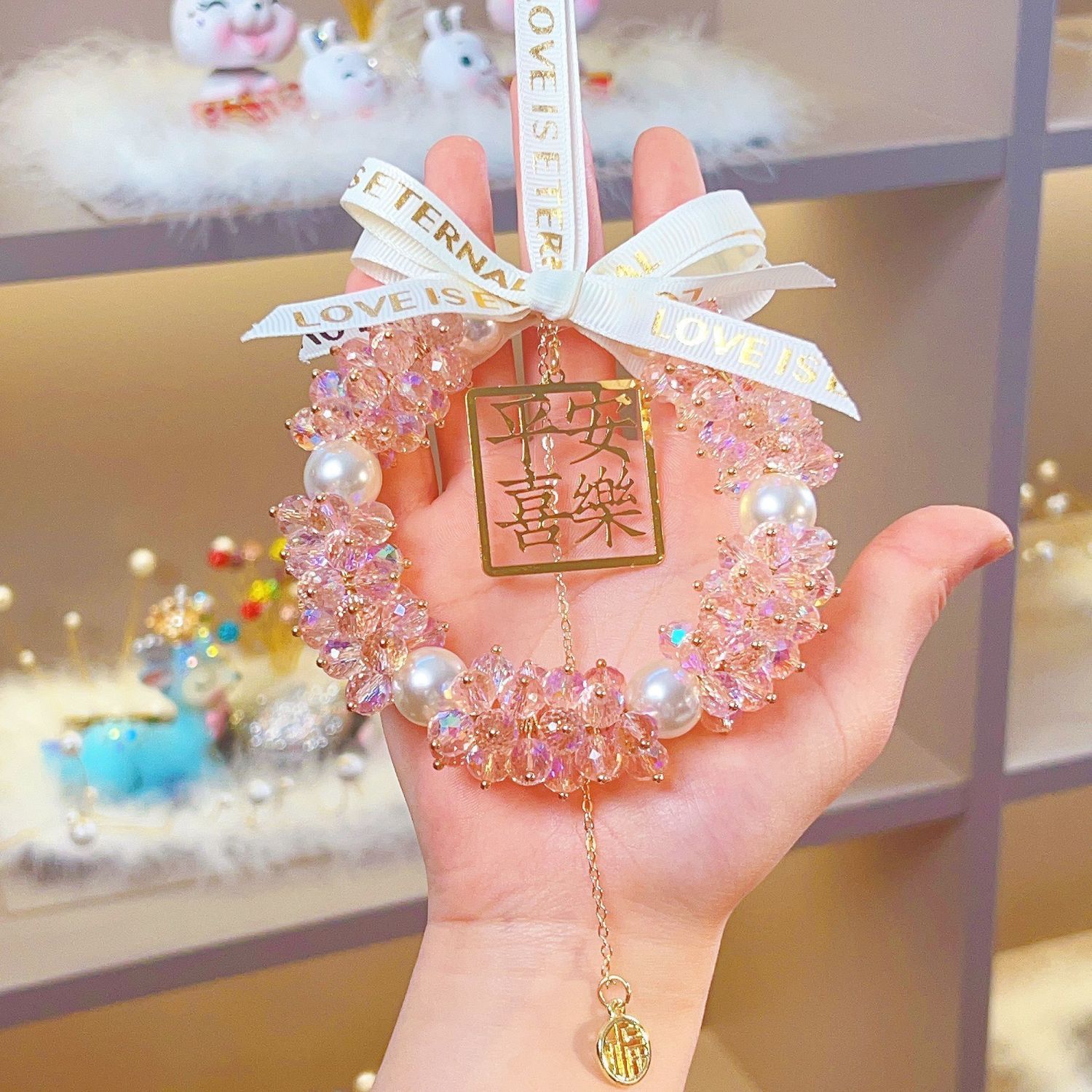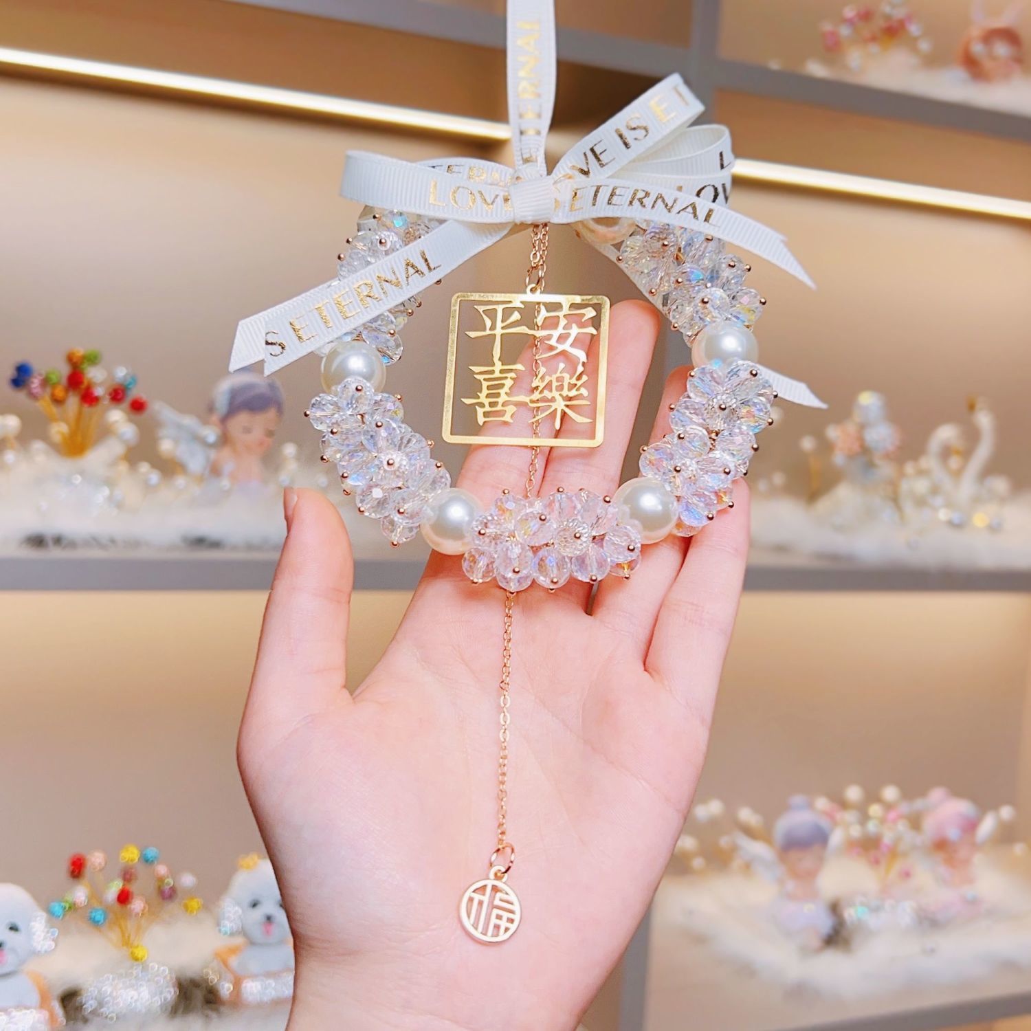 汽车挂件饰品女高档车载后视镜吊坠平安喜乐水晶车载吊坠挂件