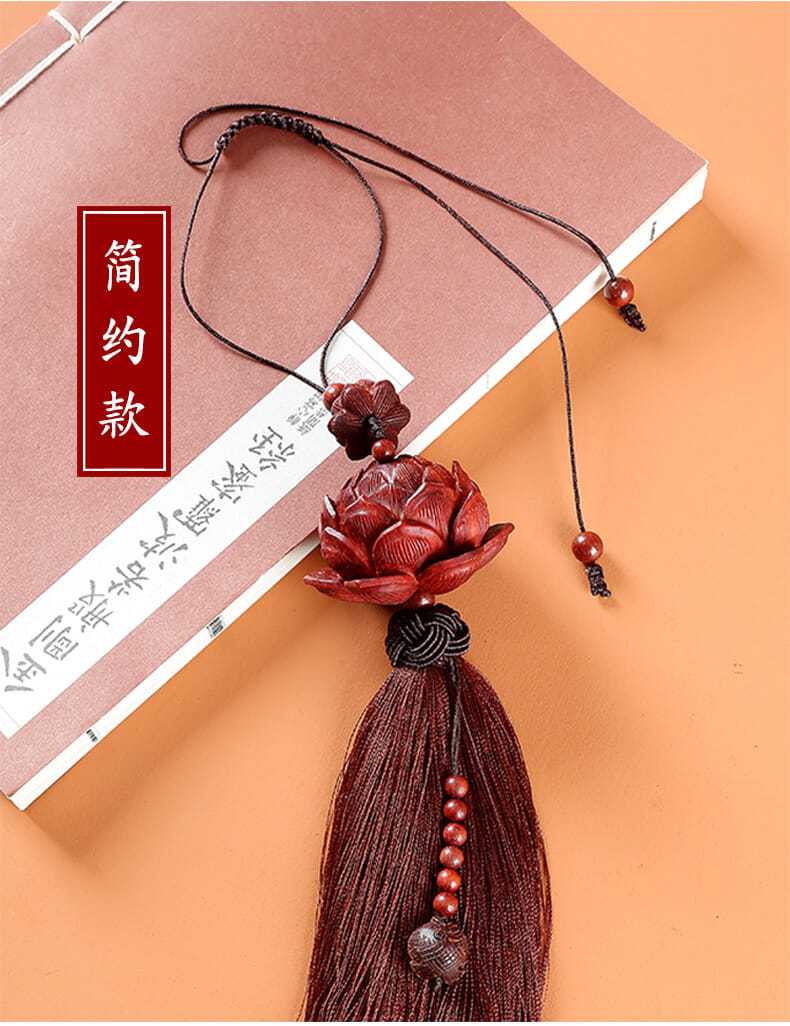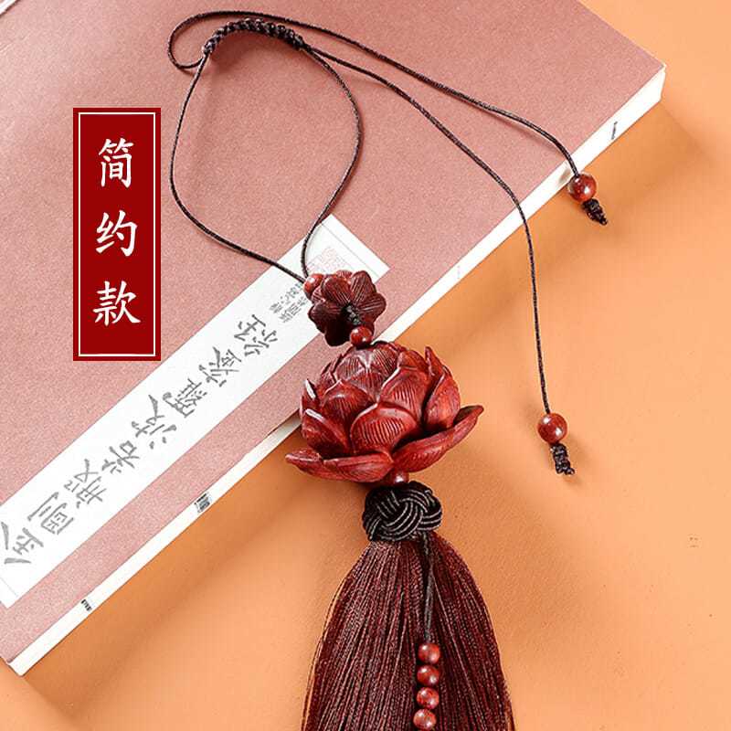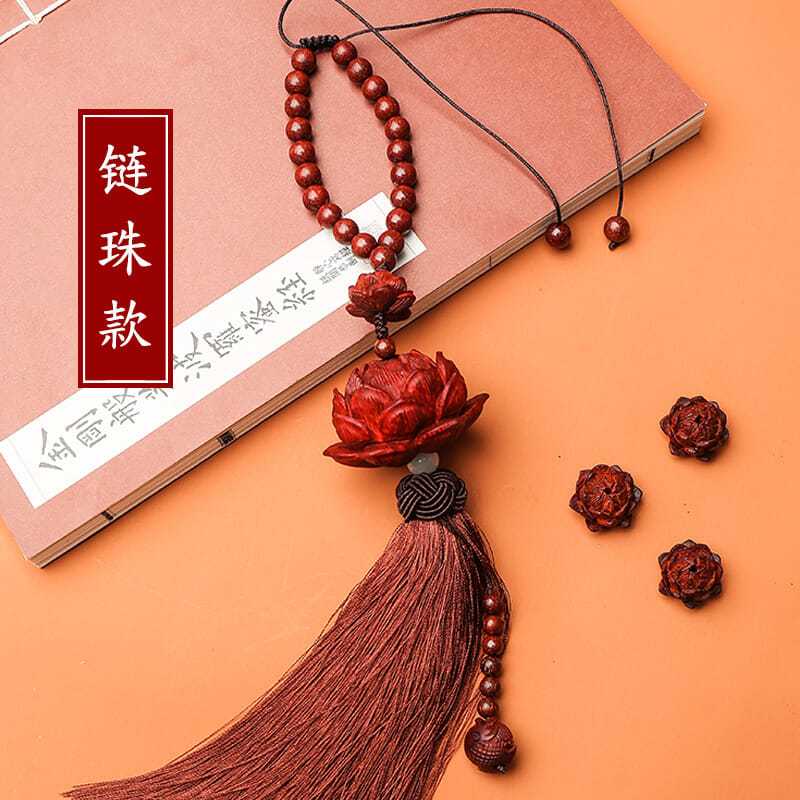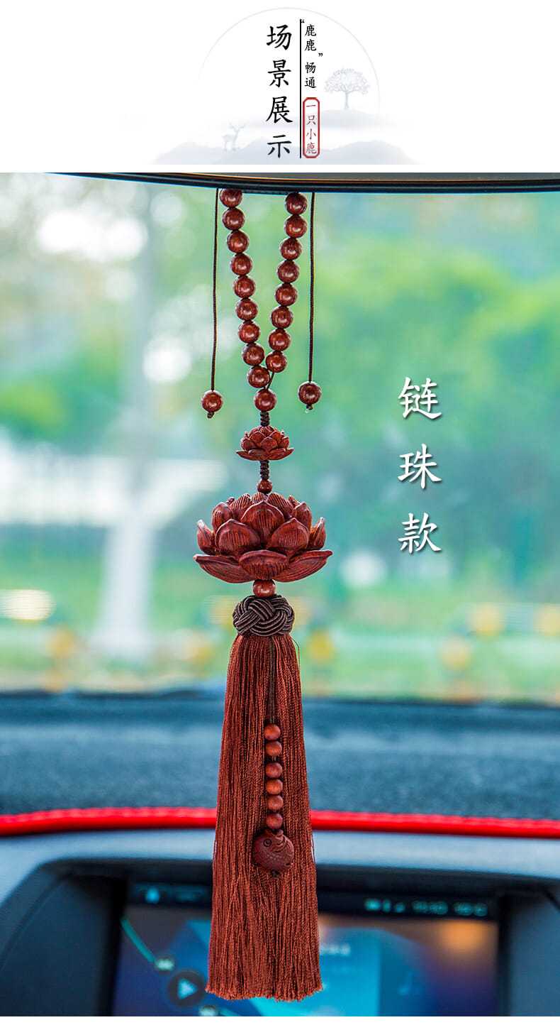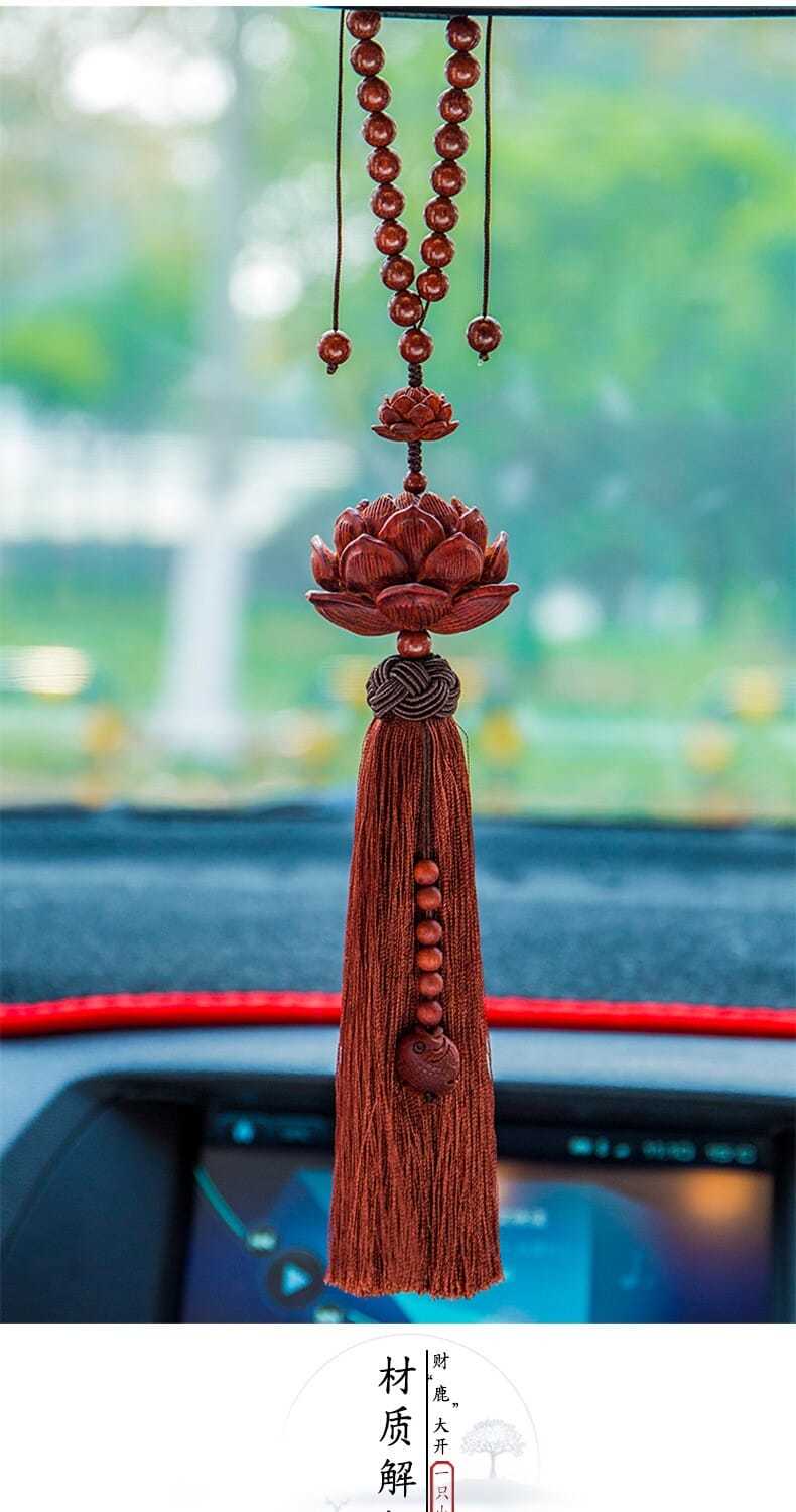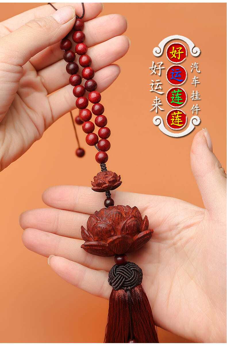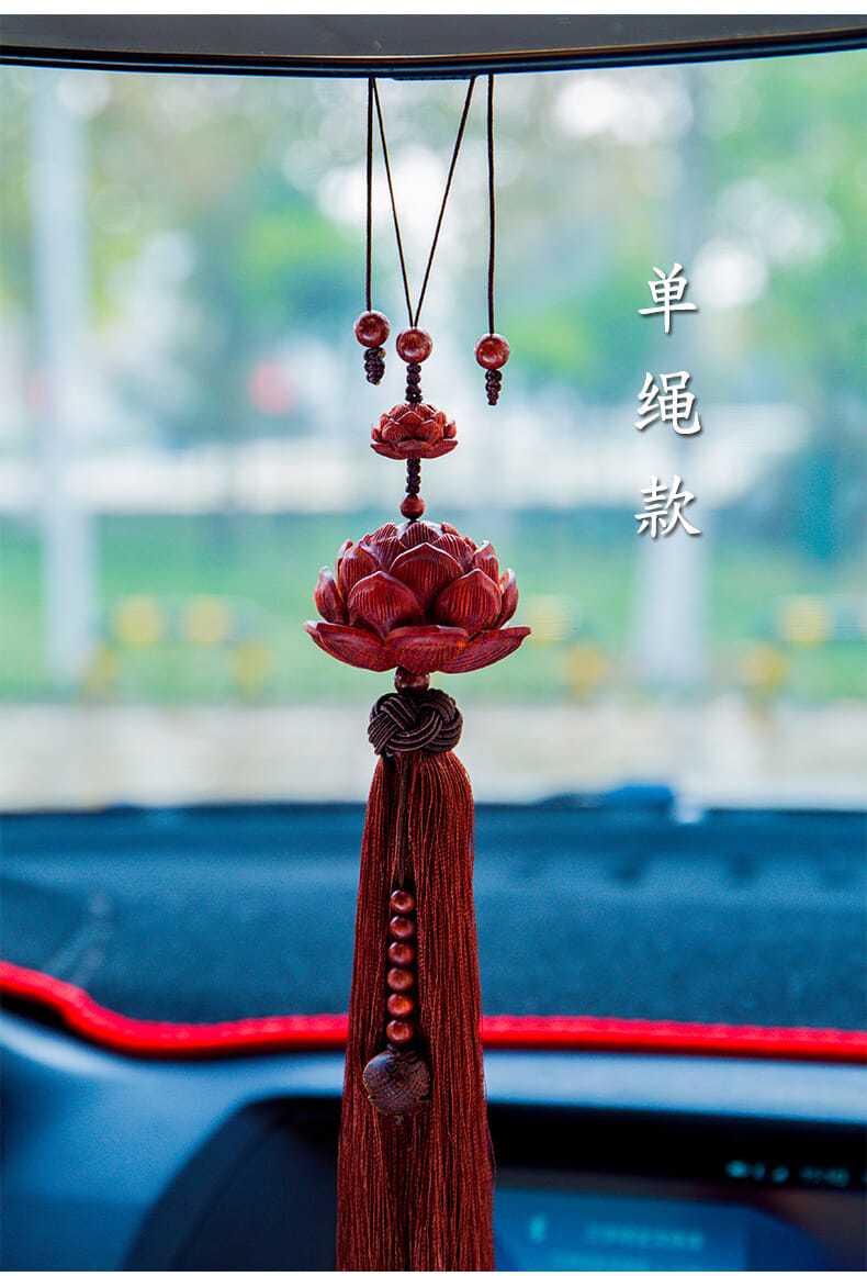 紫檀木质平安莲花汽车挂件创意后视镜吊坠车载车内挂装饰用品男女