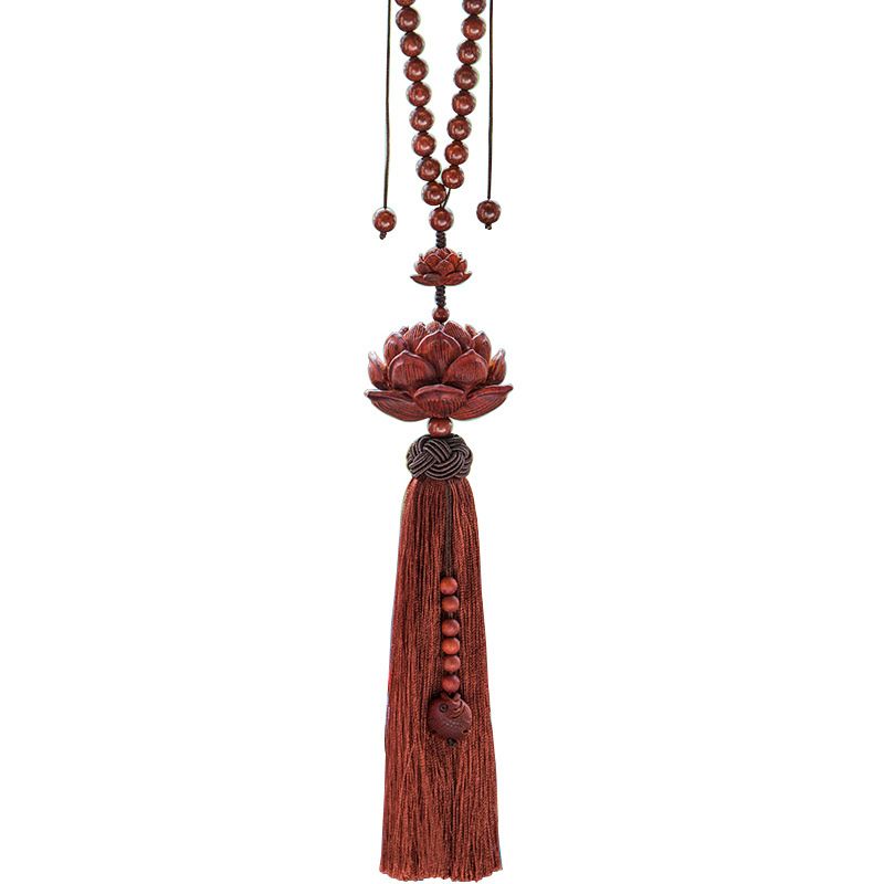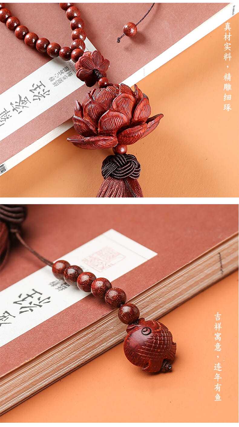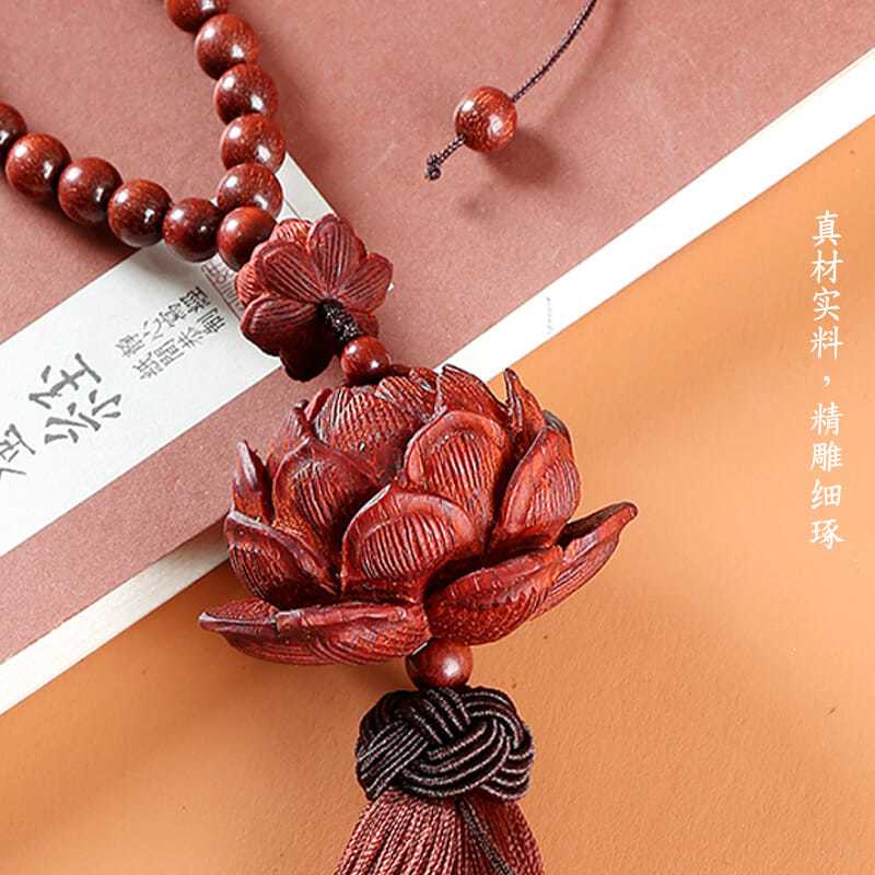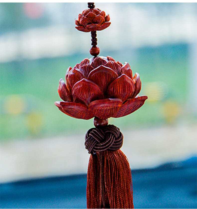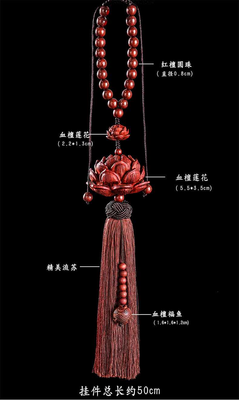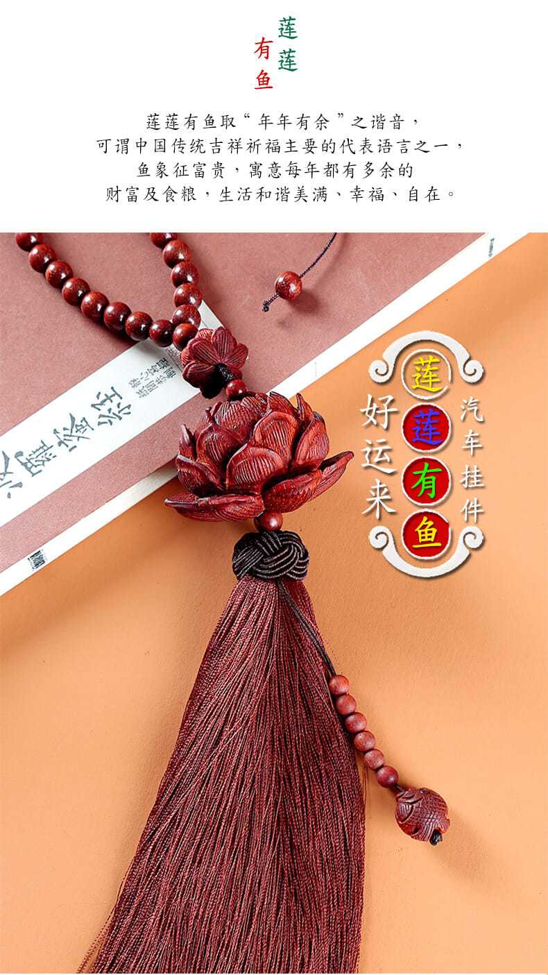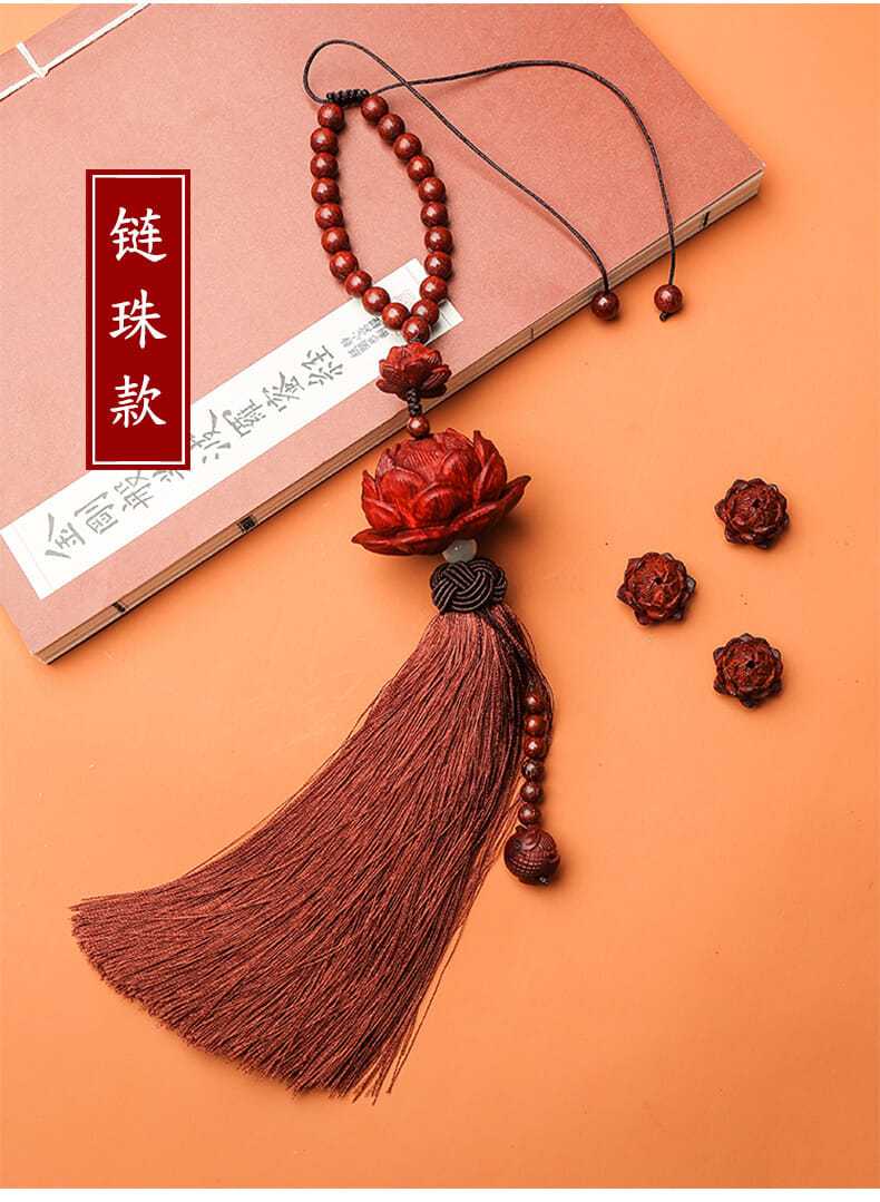 紫檀木质平安莲花汽车挂件创意后视镜吊坠车载车内挂装饰用品男女
