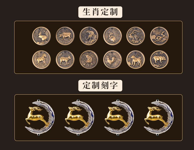 | short alluvial gold six-treasure pendant + ice crack copper deer(短款沙金六宝坠+冰裂纹铜鹿) | USD $90.57 | 99999 piece available |