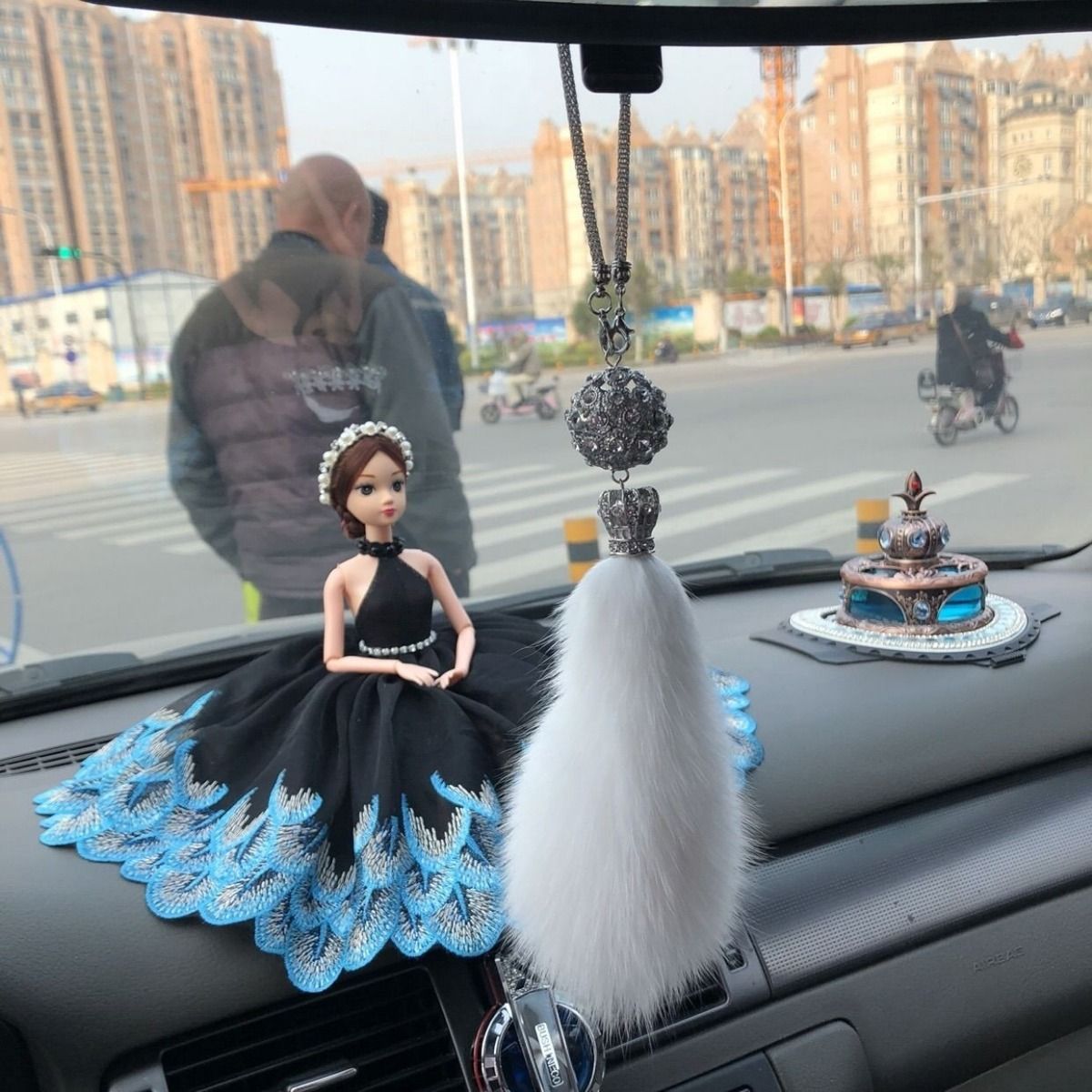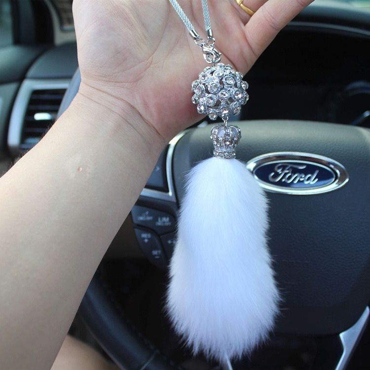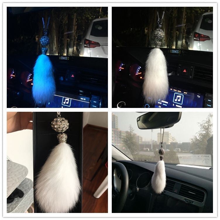 汽车挂件车内吊饰狐狸毛水晶韩国可爱高档女士车载吊坠车上挂饰品