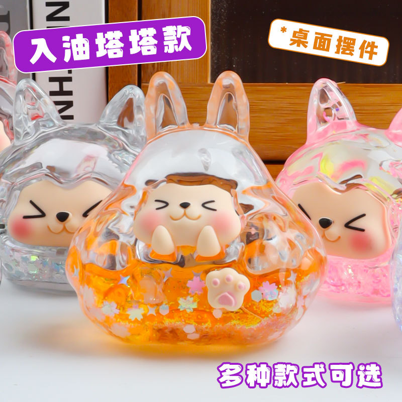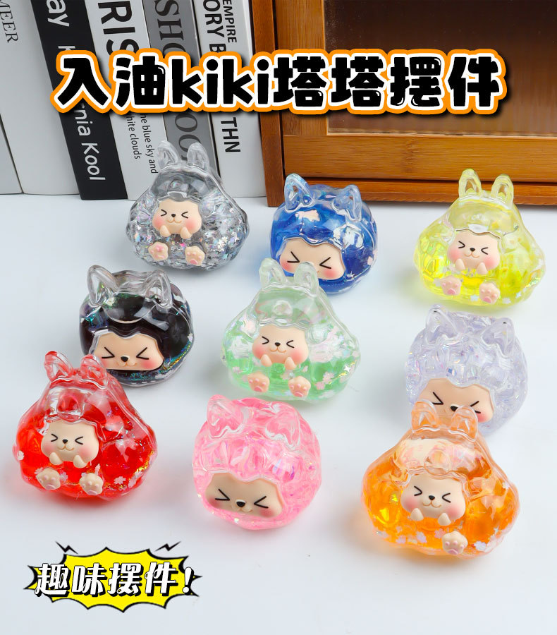 入油流沙瓶KiKi大塔塔创意桌面摆件入油流沙潮玩公仔盲盒摆件批发