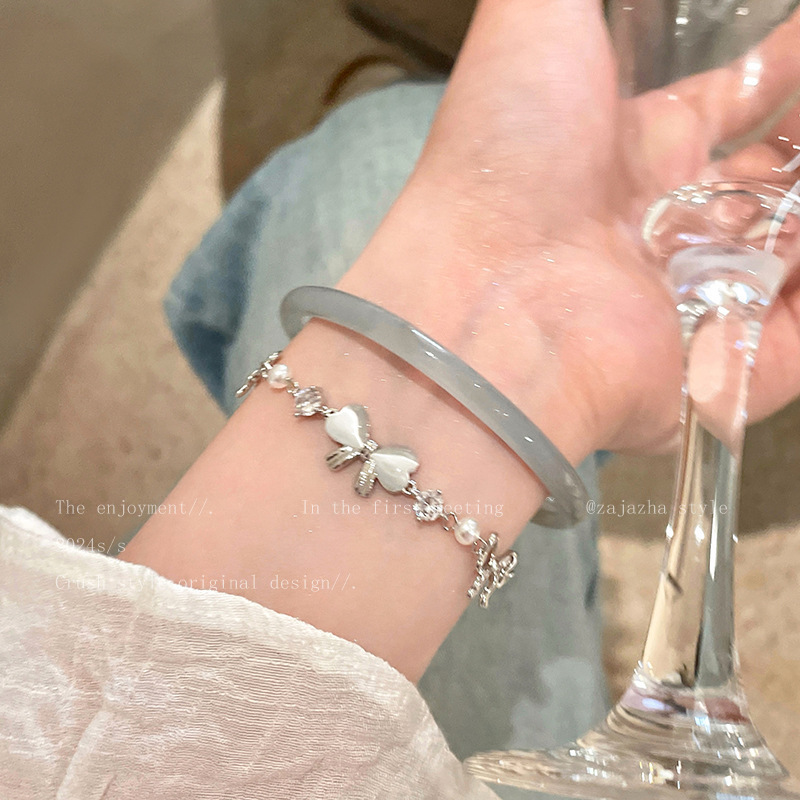 饰品小众高级感叠戴串珠手镯闺蜜礼物手环碎银子猫眼石蝴蝶结手链