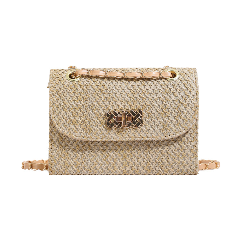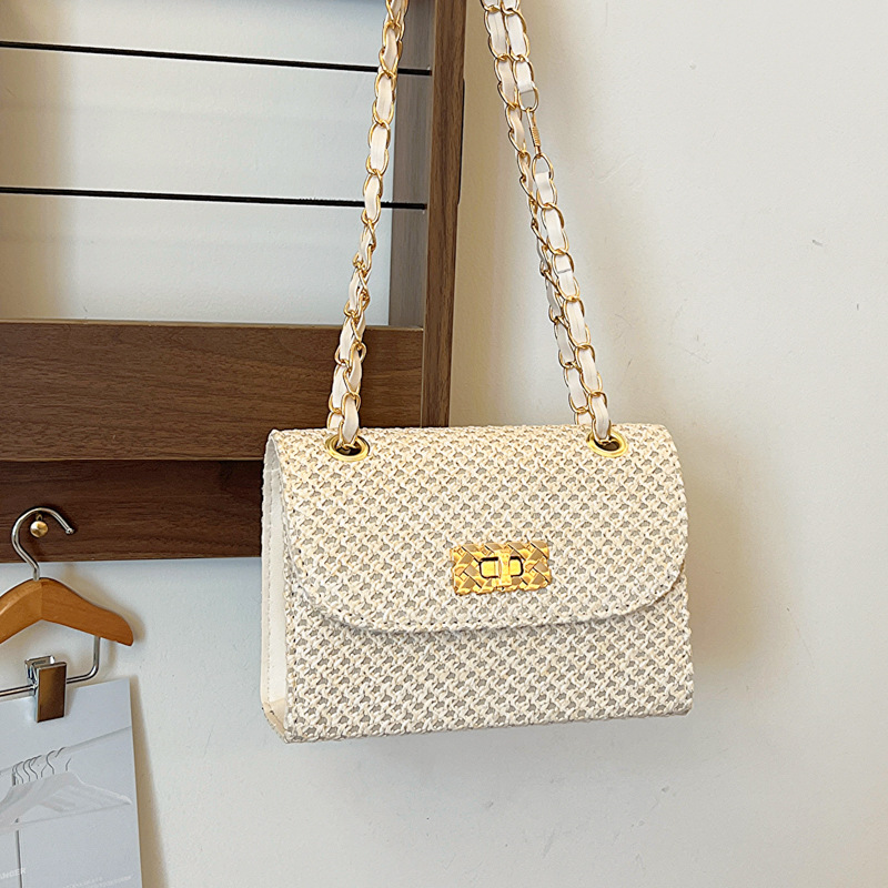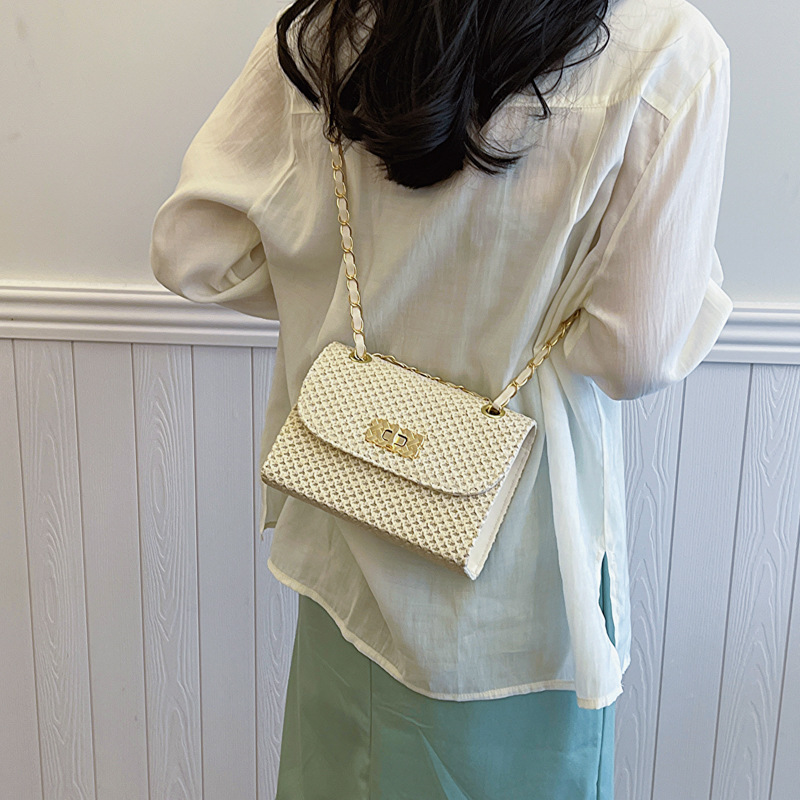 流行时尚编织小包包女2024夏新款潮百搭链条小方包草编单肩斜挎包