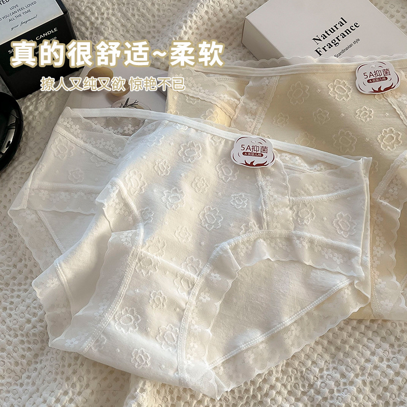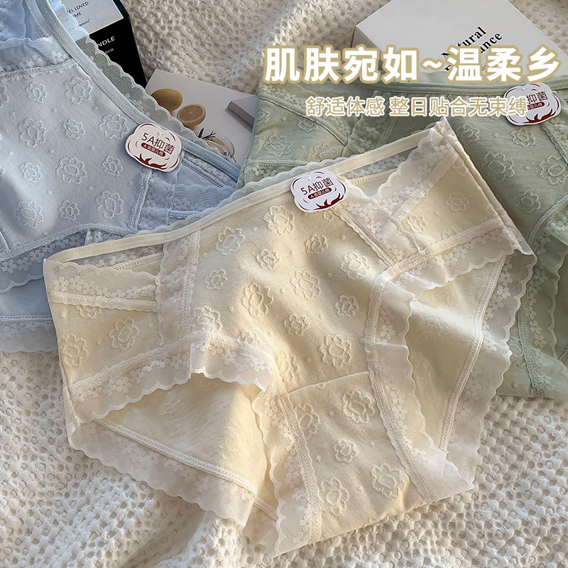 A类婴儿棉女生全棉纯棉内裤女中腰纯欲风5A舒适少女蕾丝女士批发