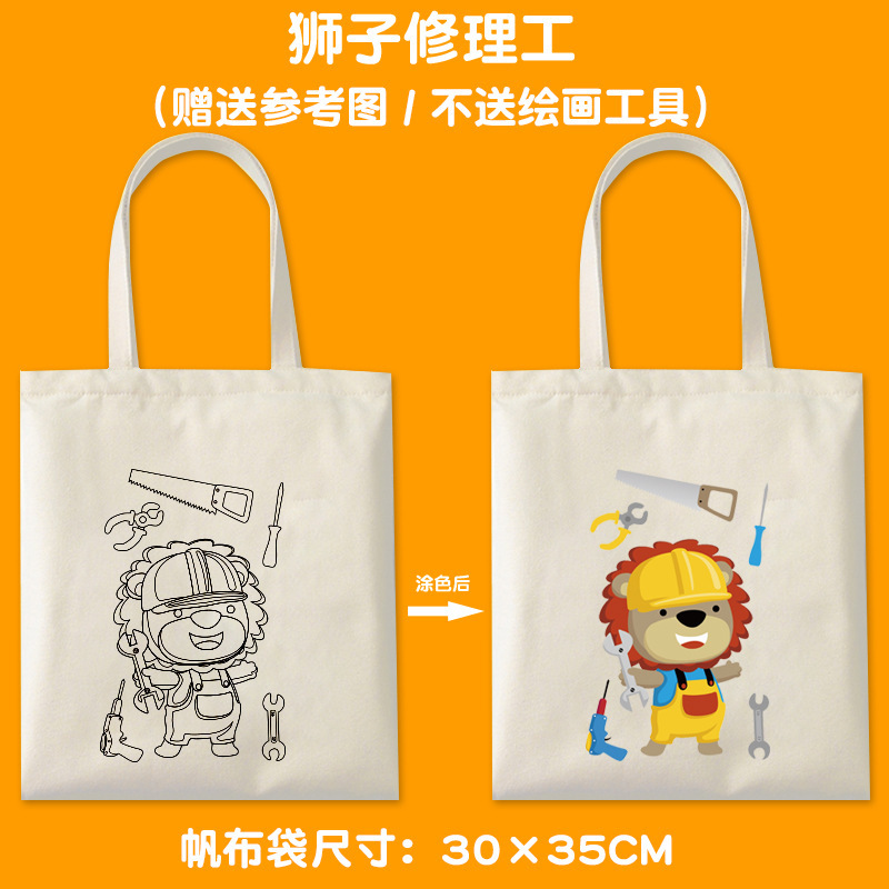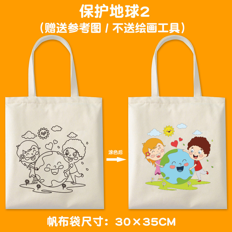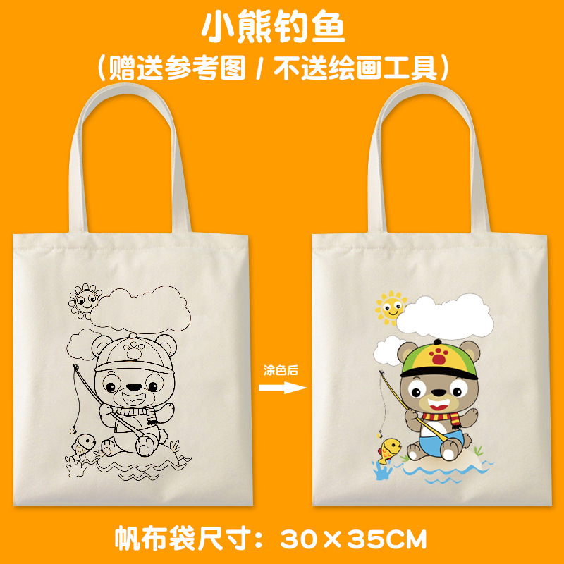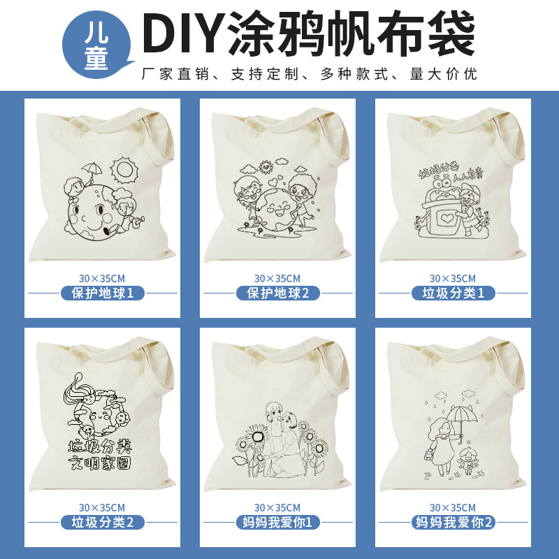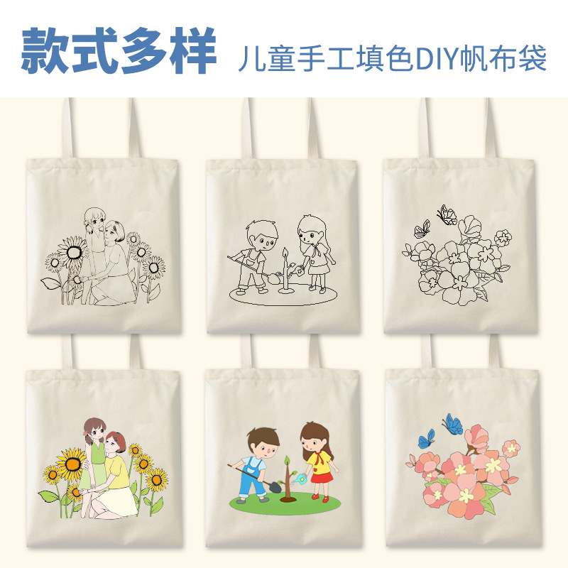 儿童DIY空白手工填色手绘帆布包袋学生涂鸦环保袋手提制绘画画袋