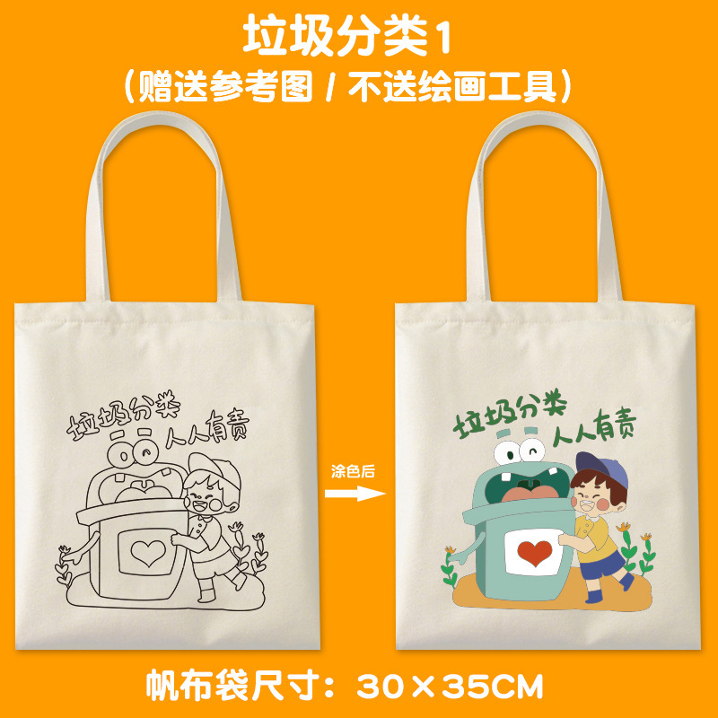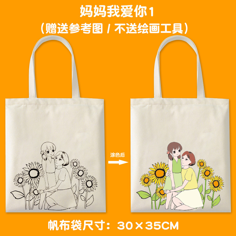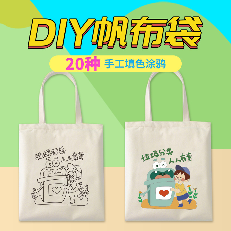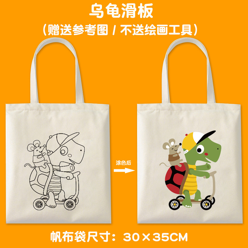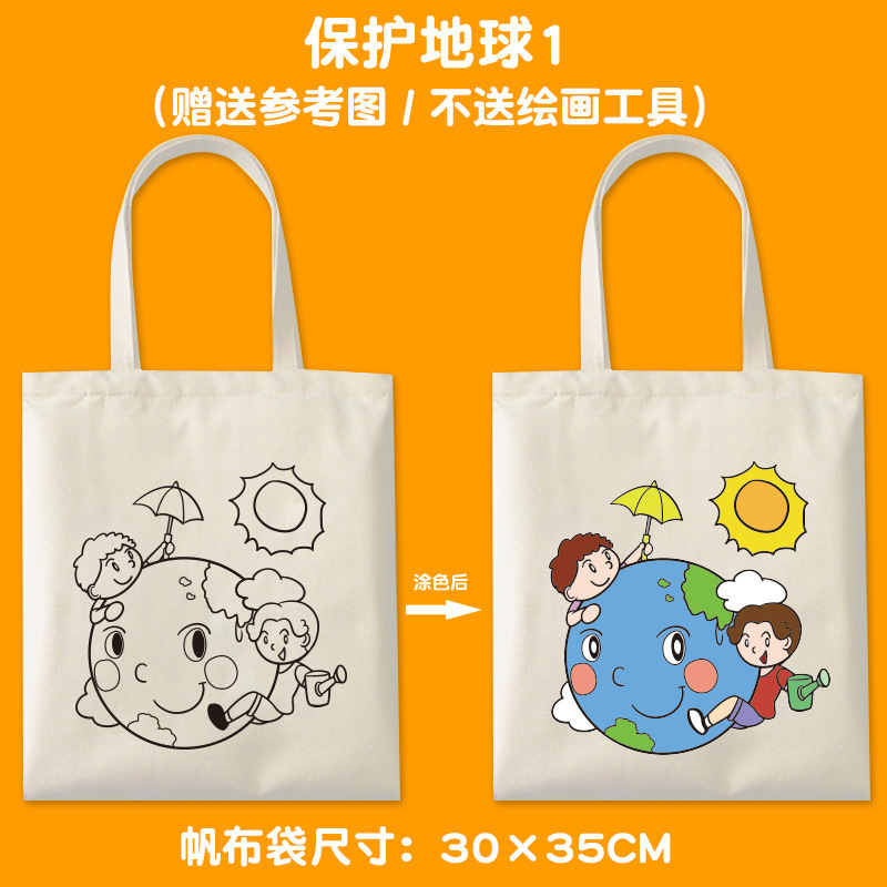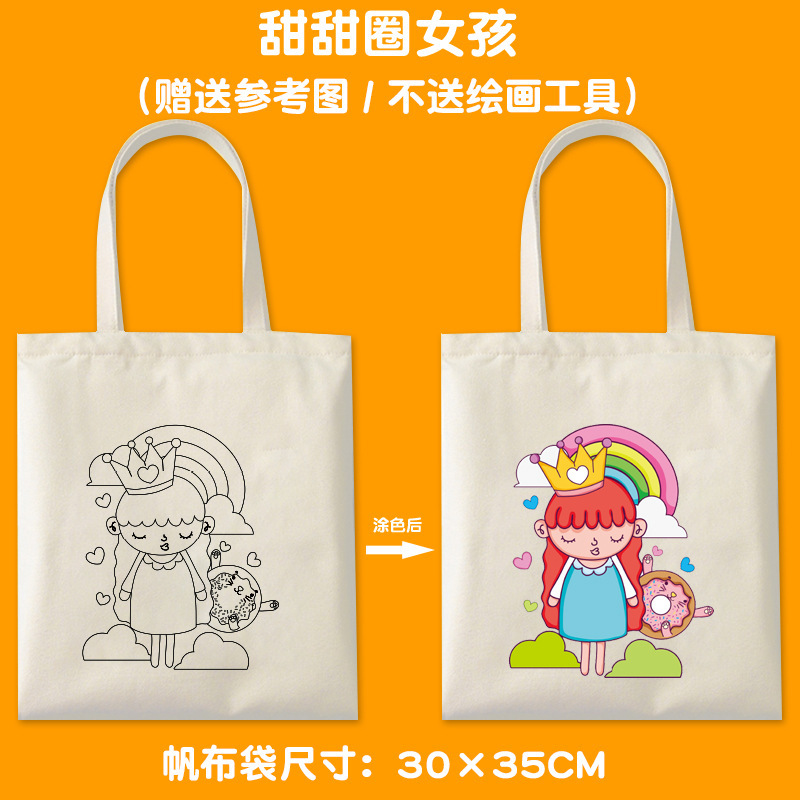 儿童DIY空白手工填色手绘帆布包袋学生涂鸦环保袋手提制绘画画袋