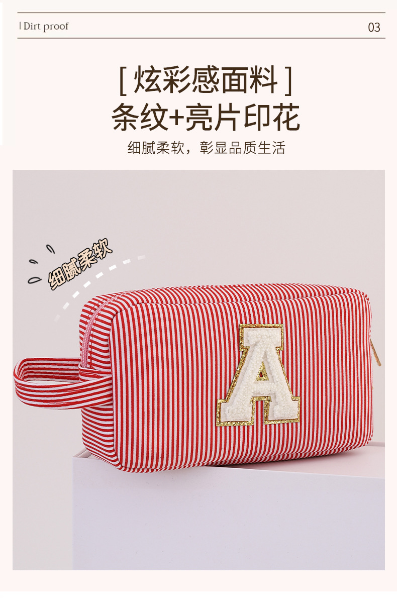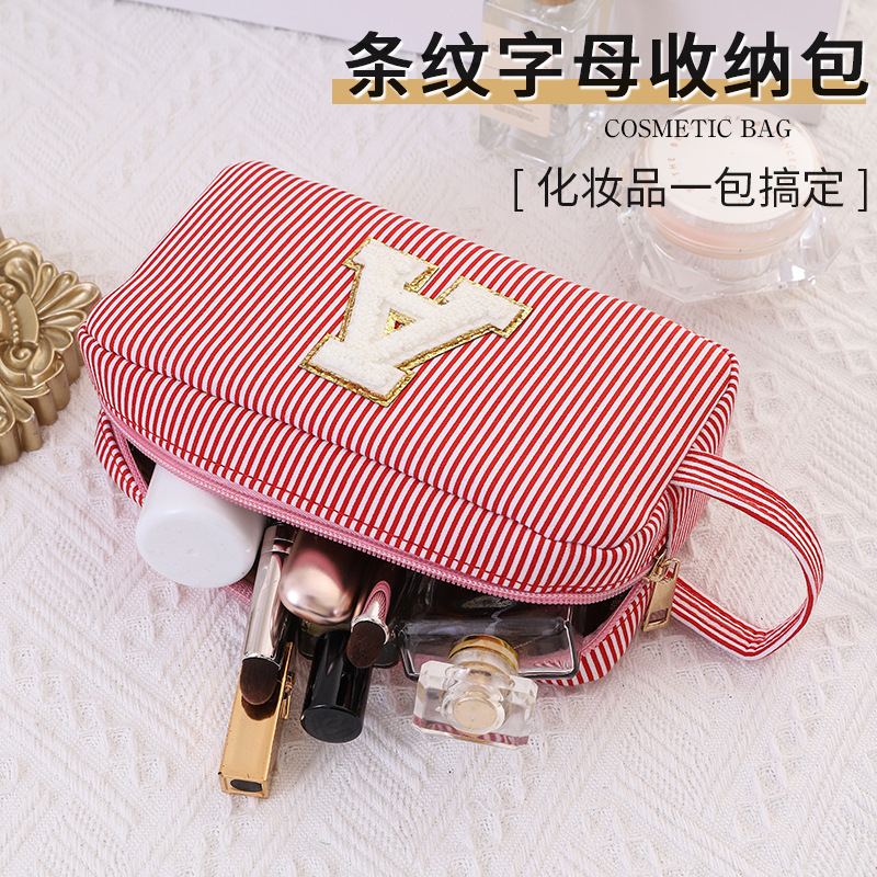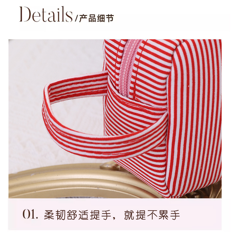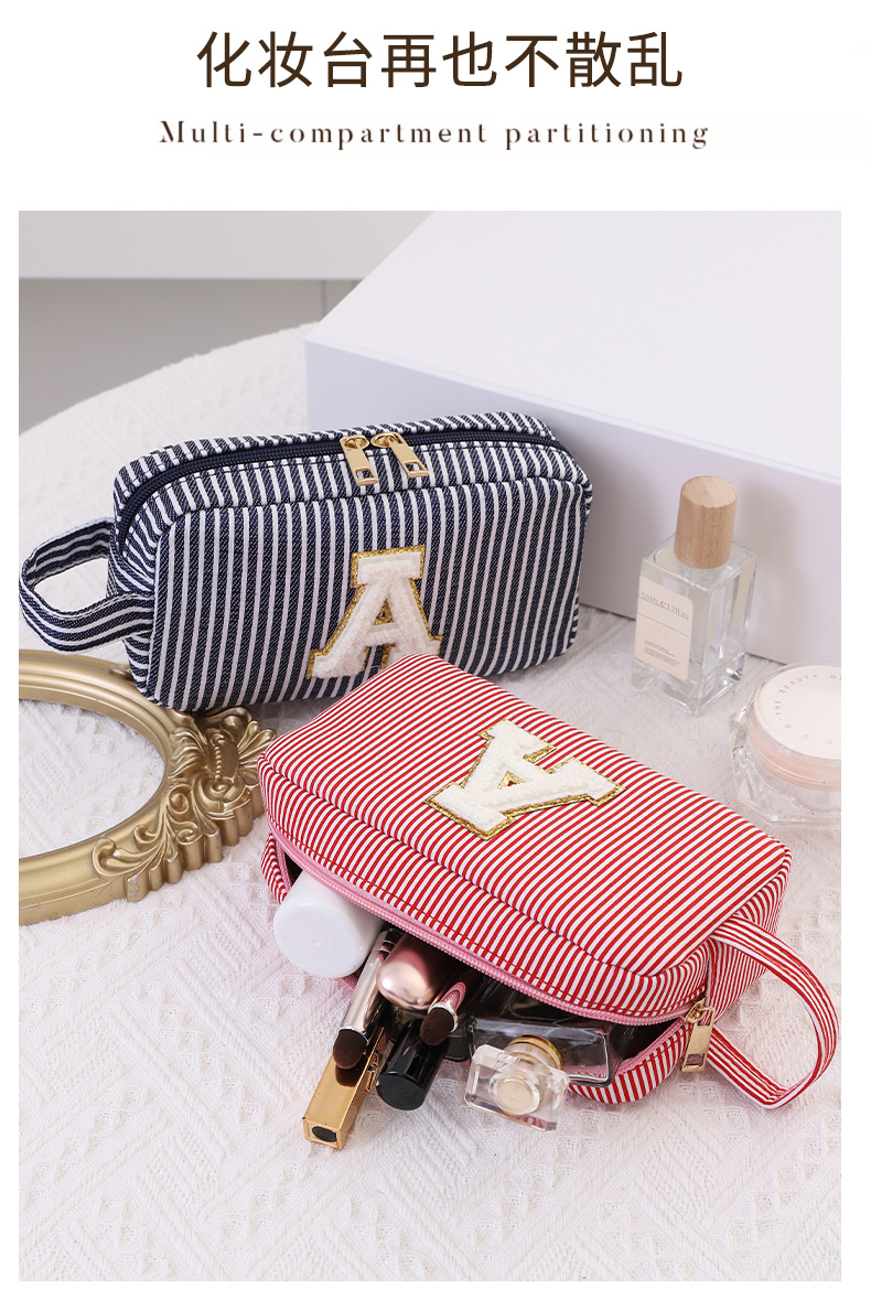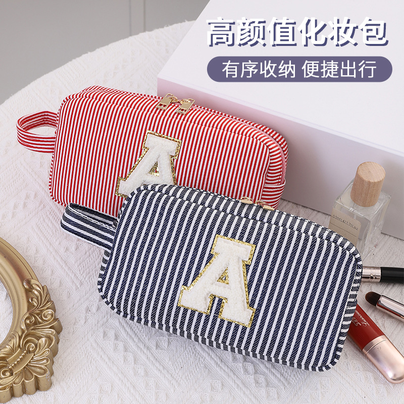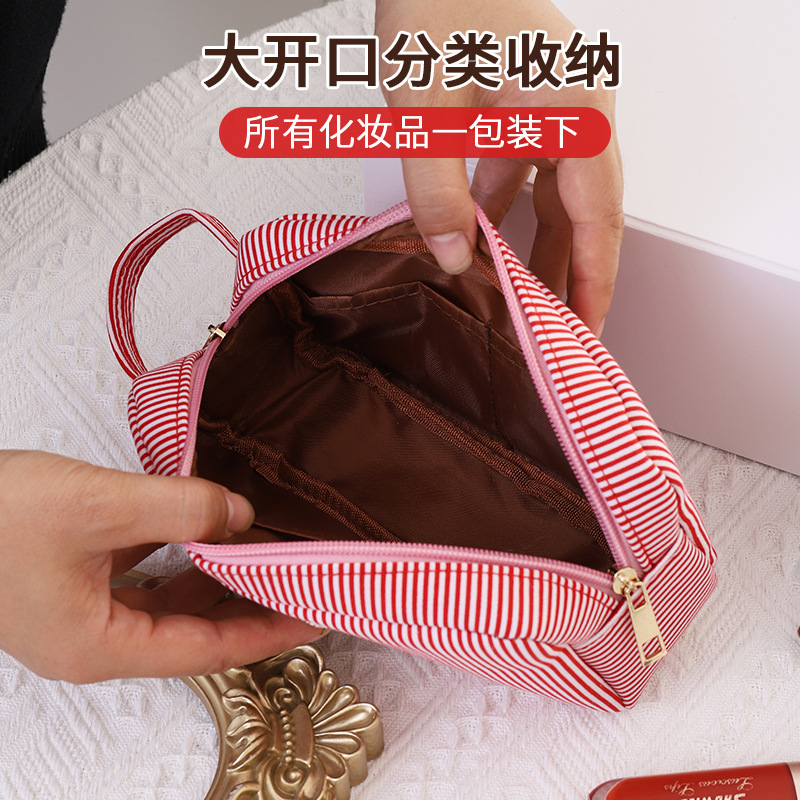 2023跨境新品旅行手提化妆包条纹的泡泡纱化妆包洗漱袋厂家直销