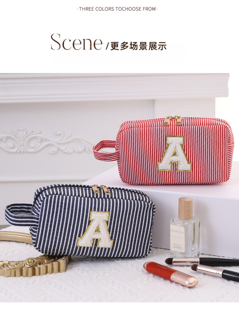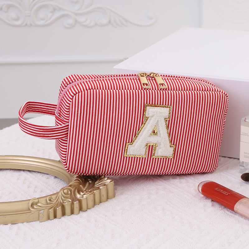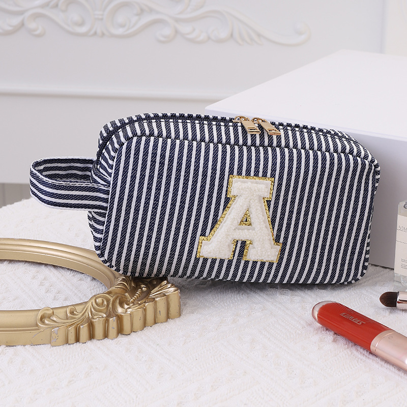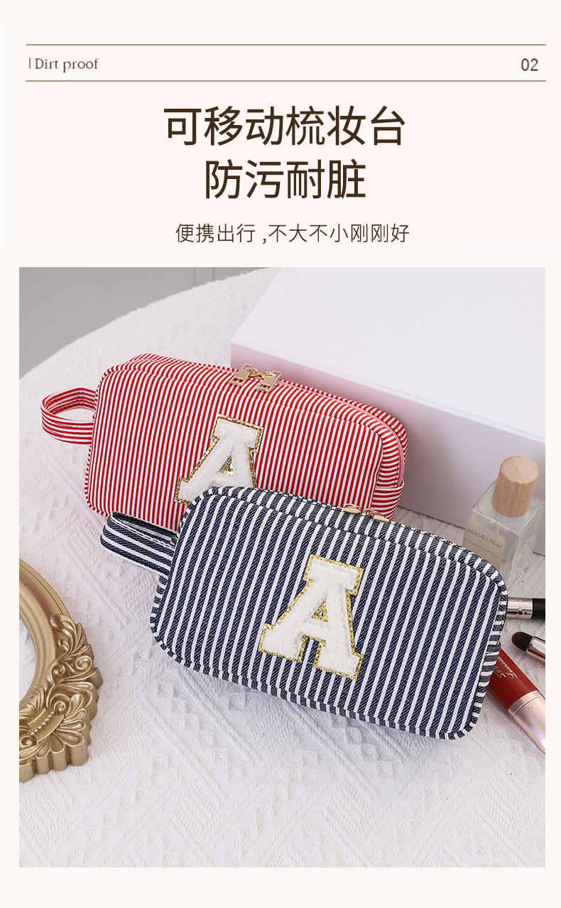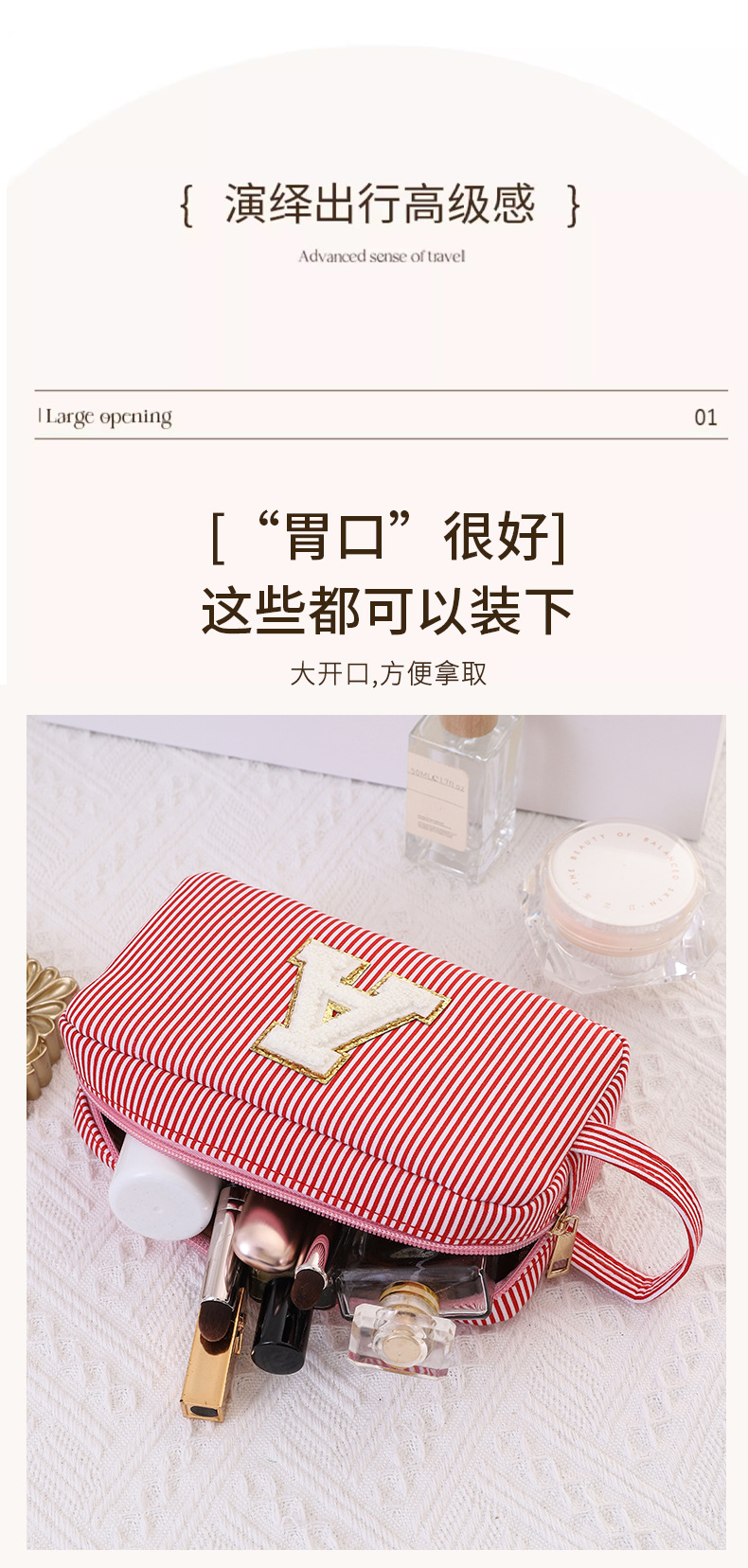 2023跨境新品旅行手提化妆包条纹的泡泡纱化妆包洗漱袋厂家直销