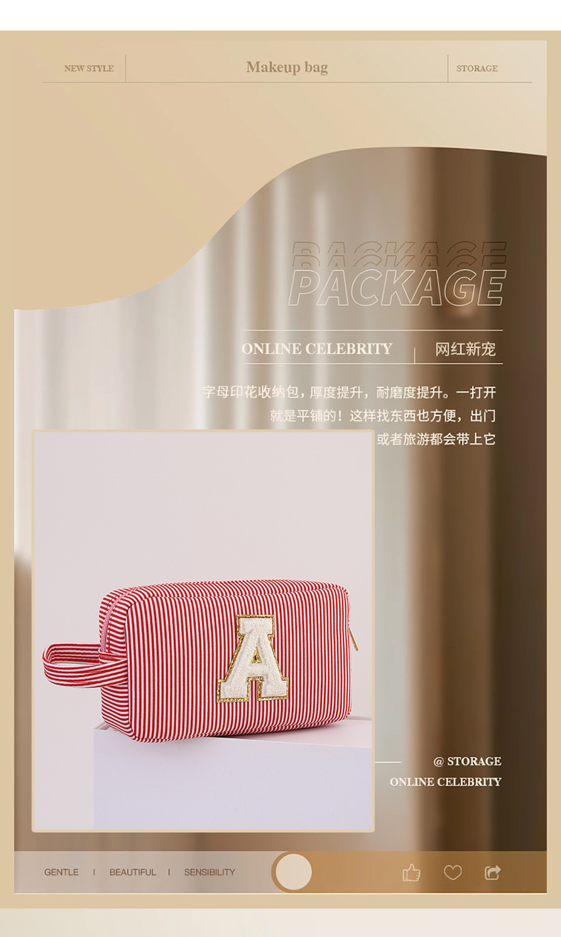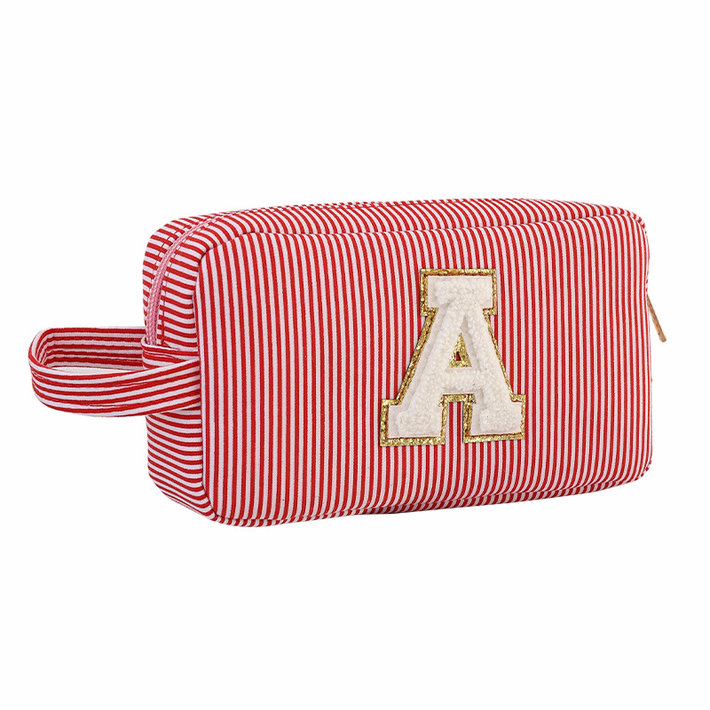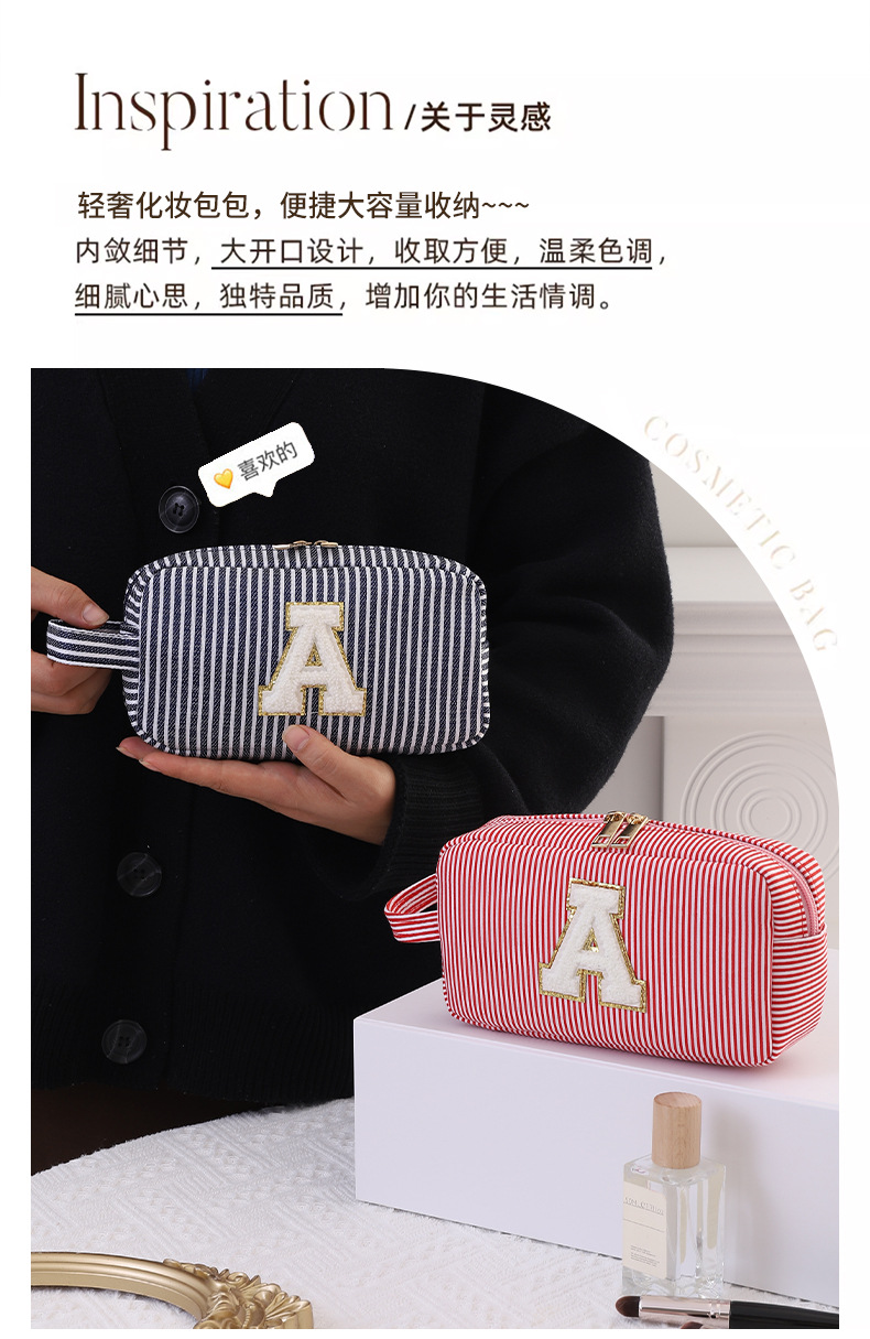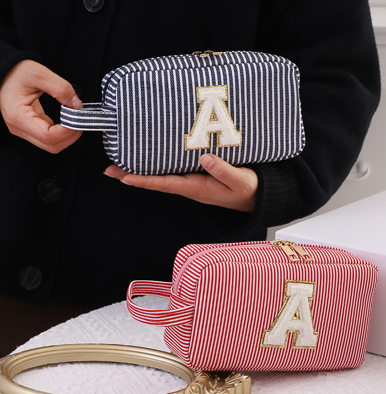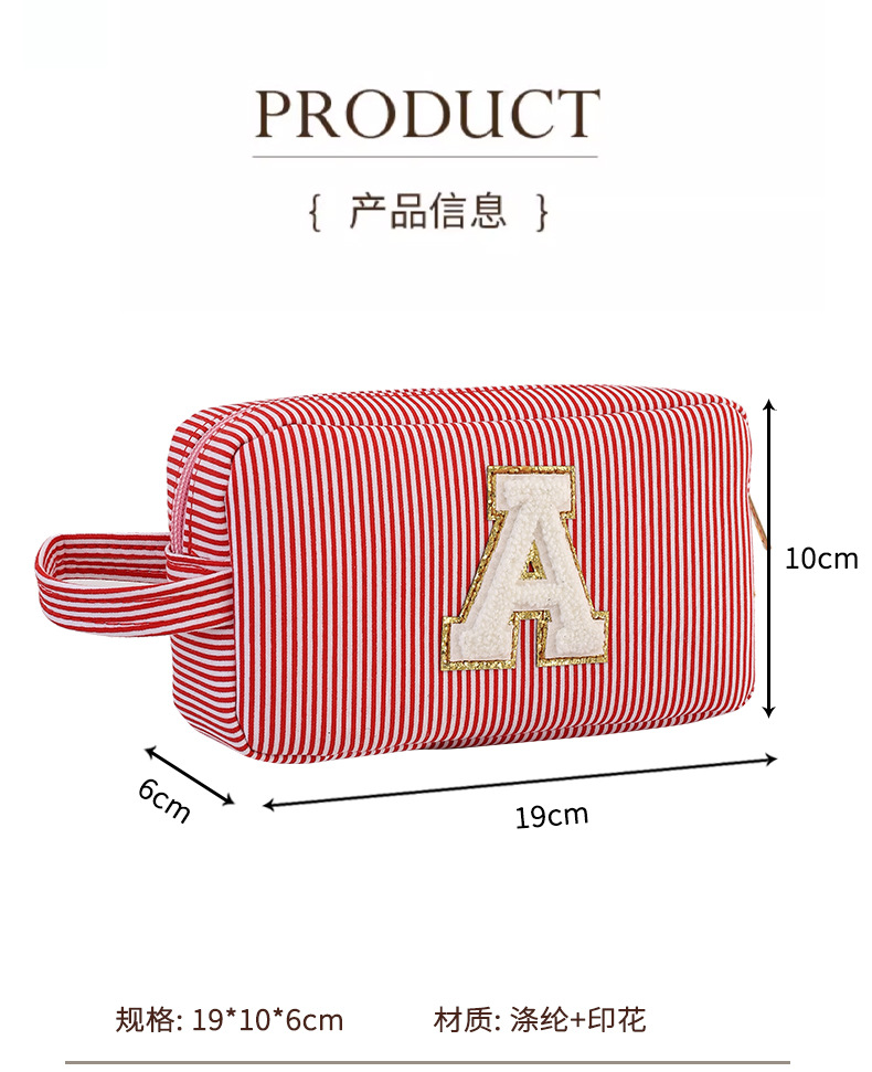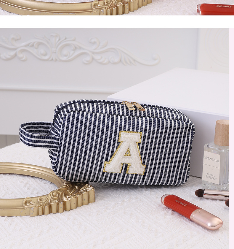 2023跨境新品旅行手提化妆包条纹的泡泡纱化妆包洗漱袋厂家直销