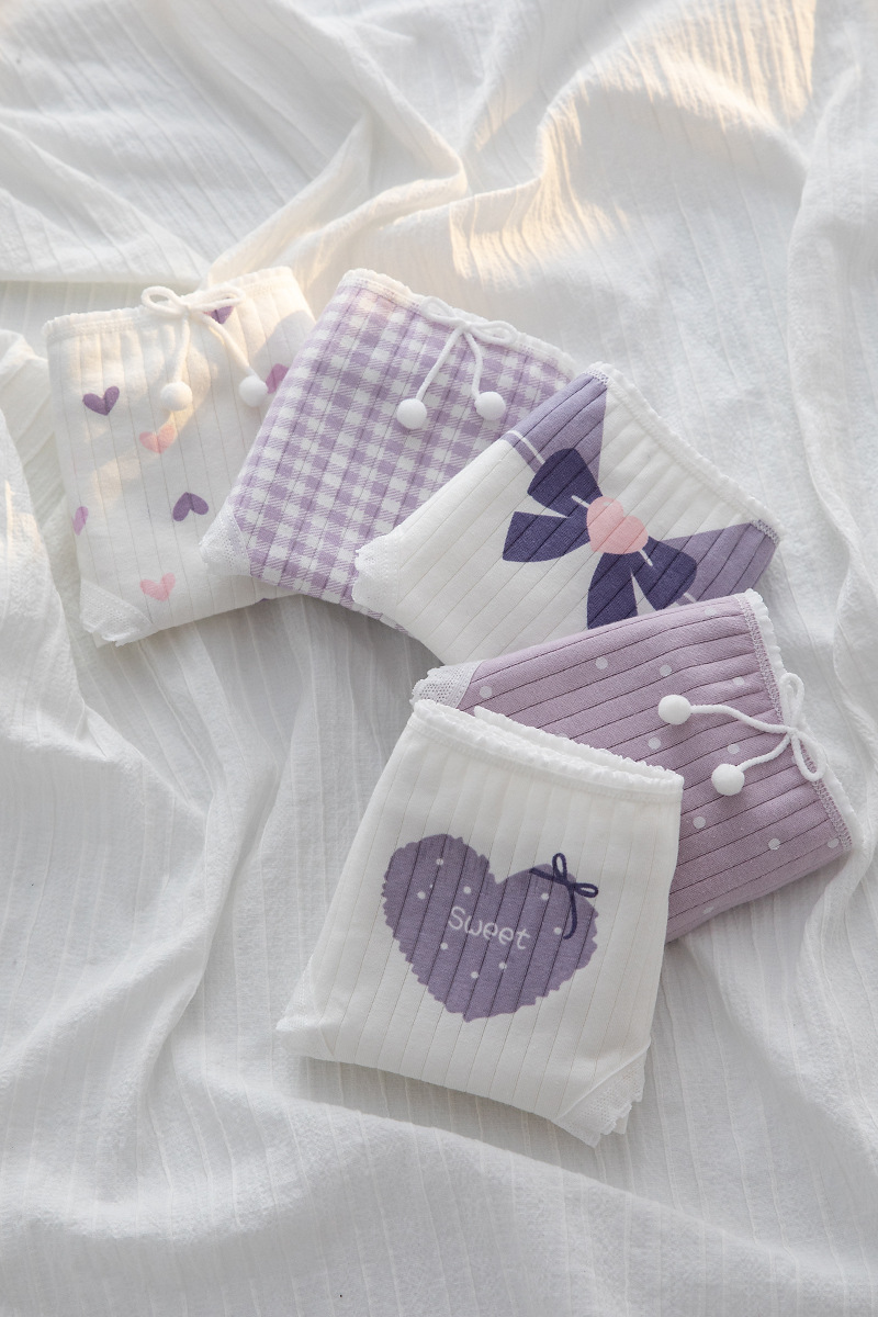 纯欲香芋紫甜美可爱少女内裤中腰三角裤包臀纯棉裆中腰女士内裤