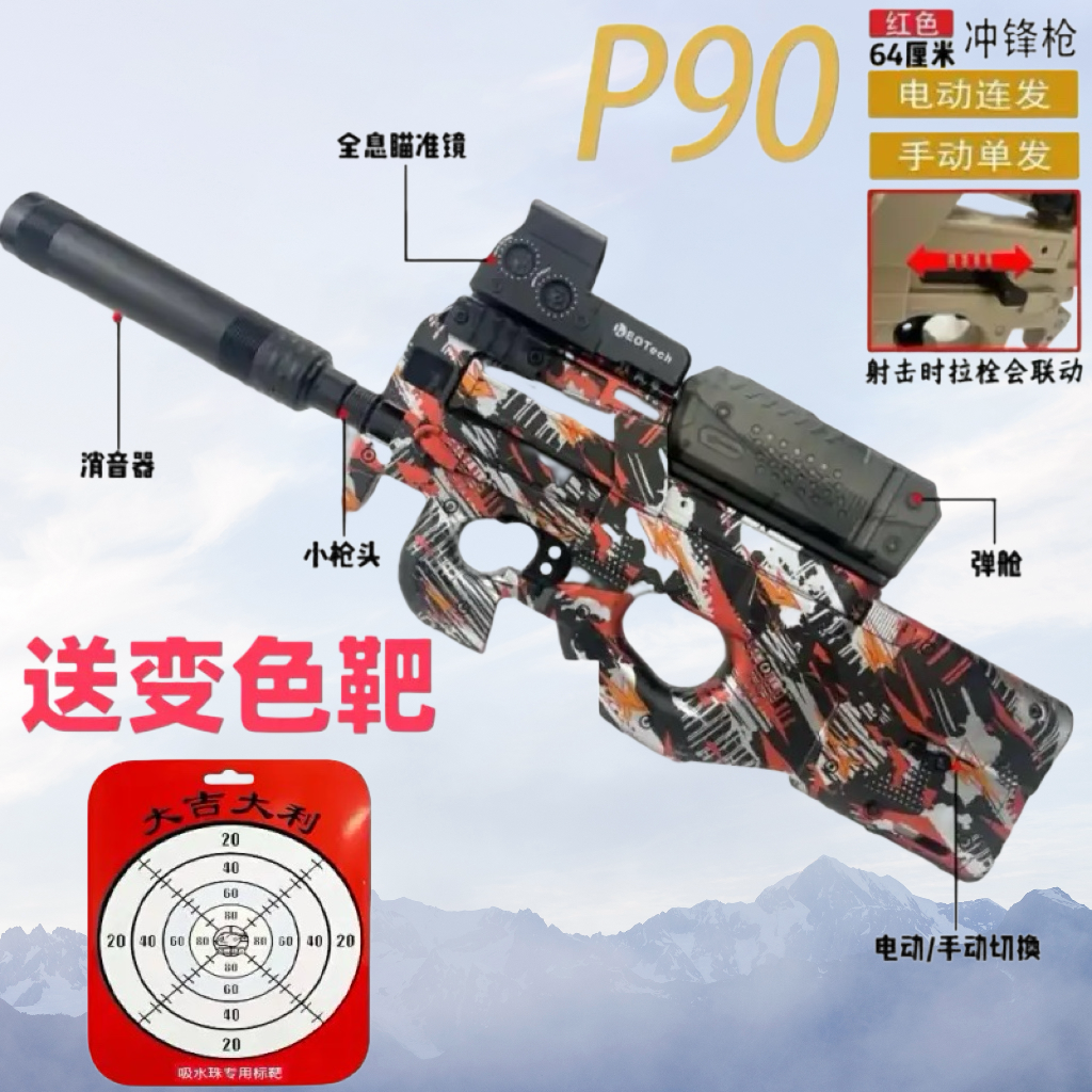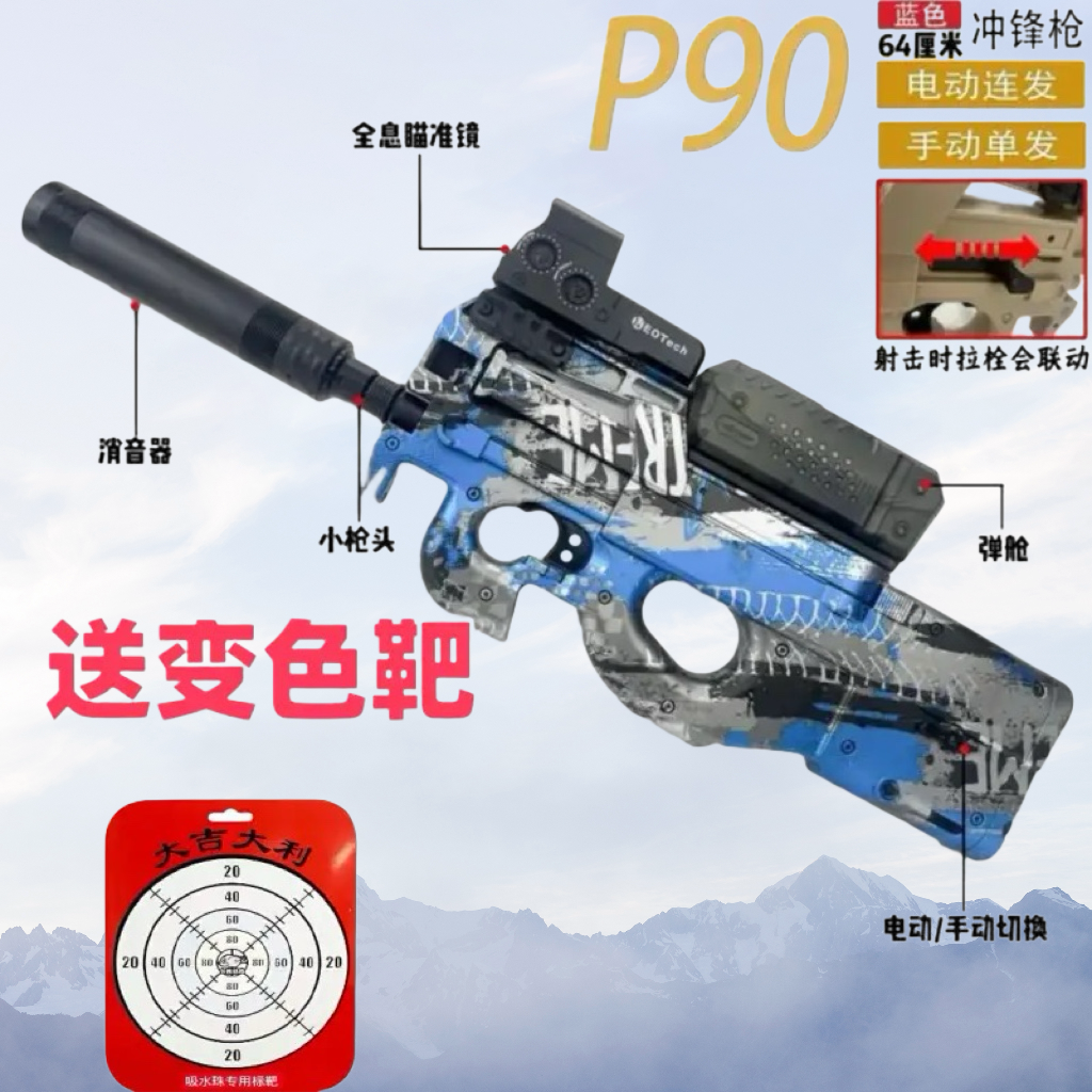 P90冲锋枪电动连发儿童玩具枪全自动手自一体软弹枪仿真吃鸡男孩