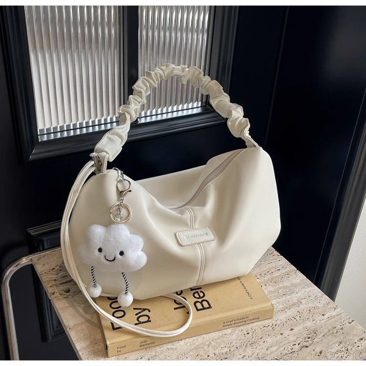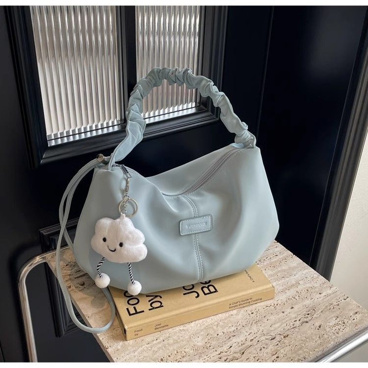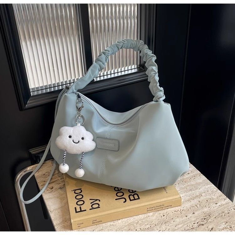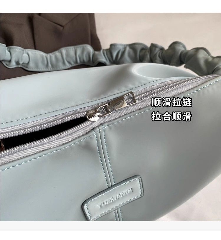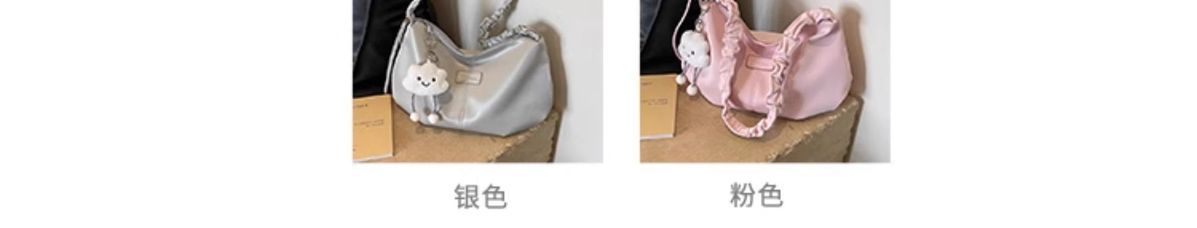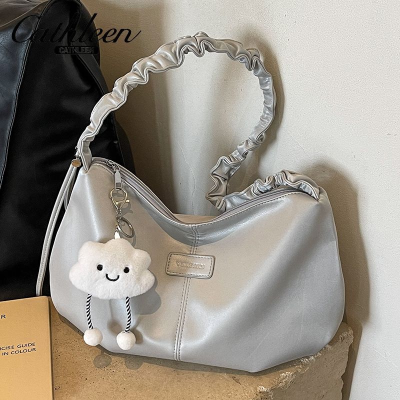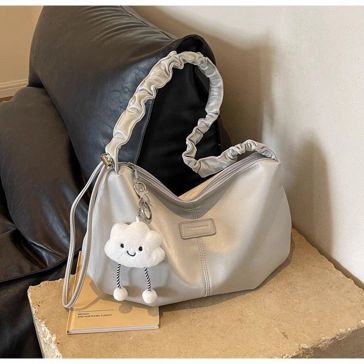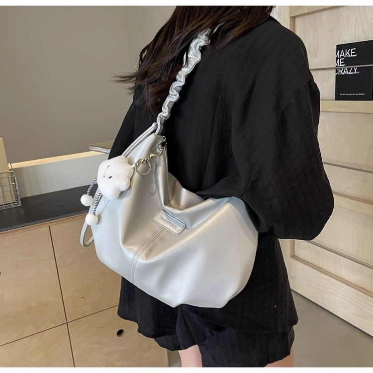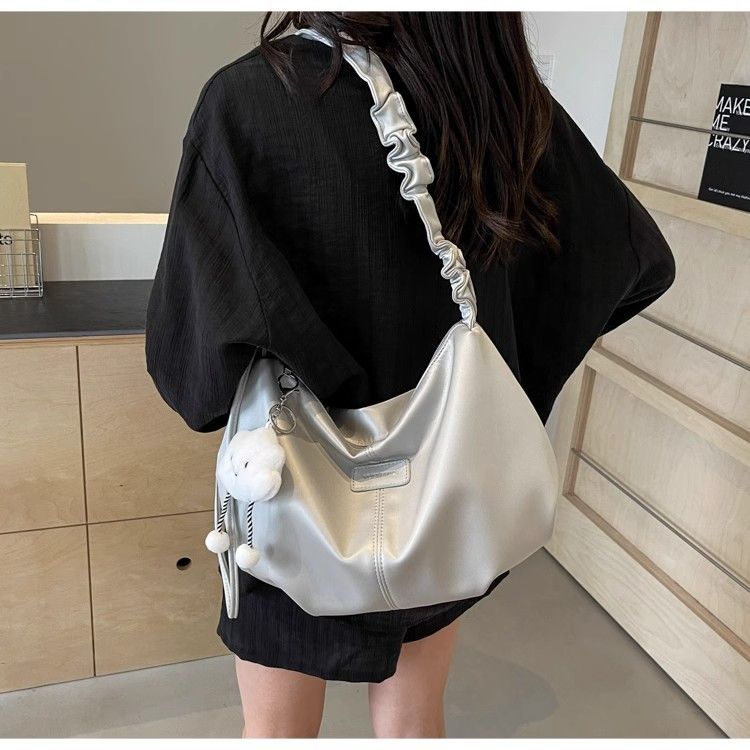 凯思琳森系慵懒风银色包包女大容量小众单肩斜挎包流行褶皱饺子包
