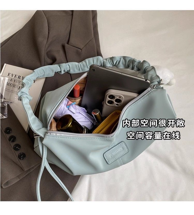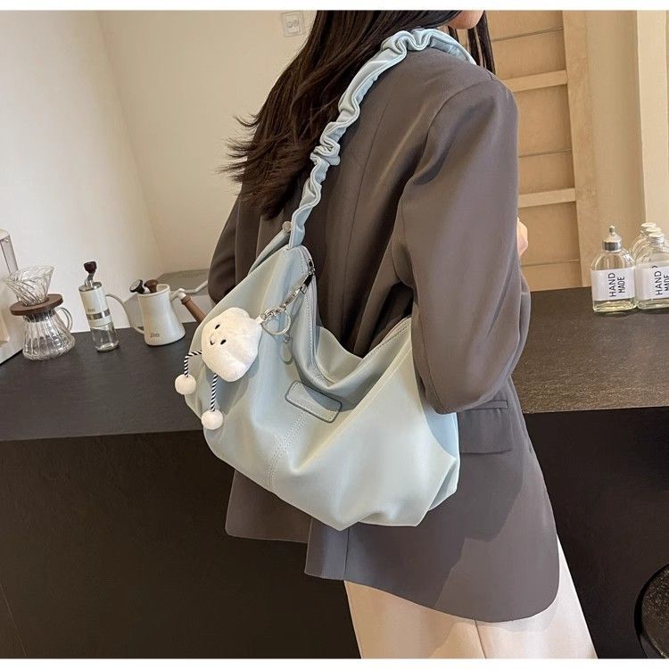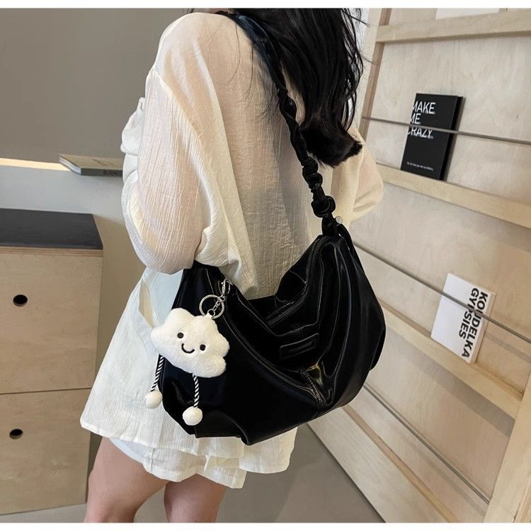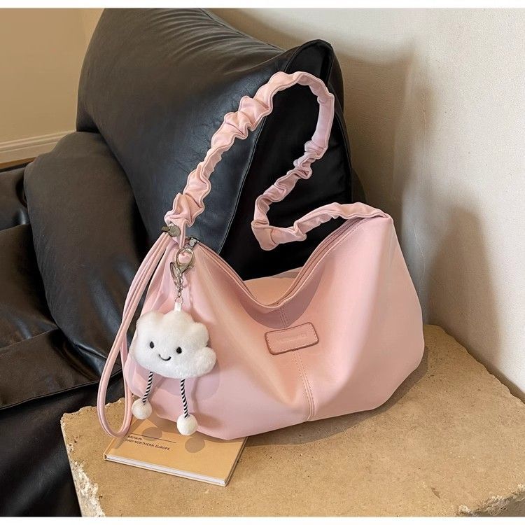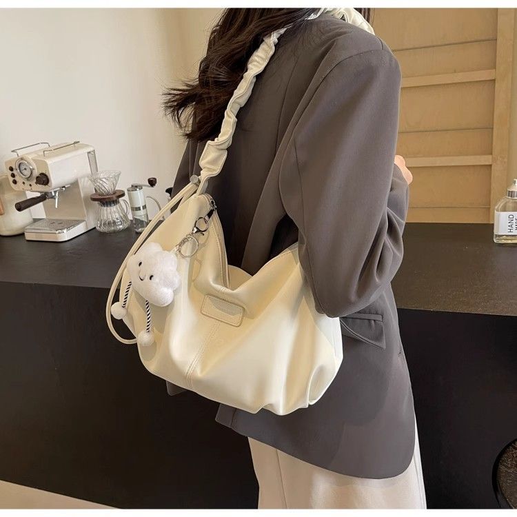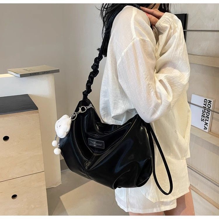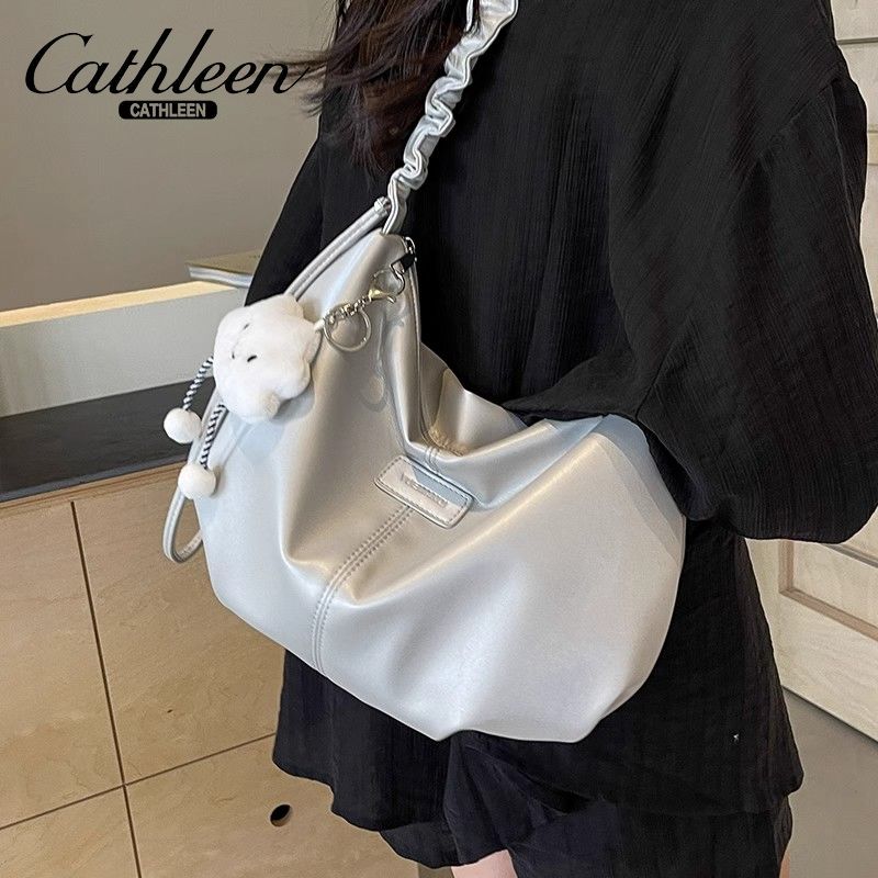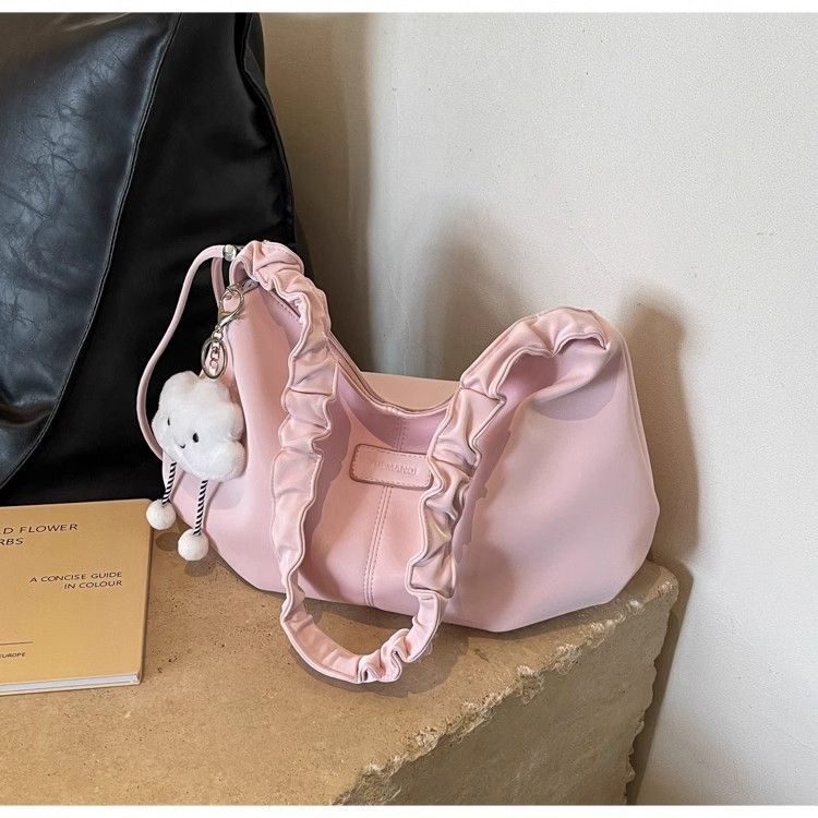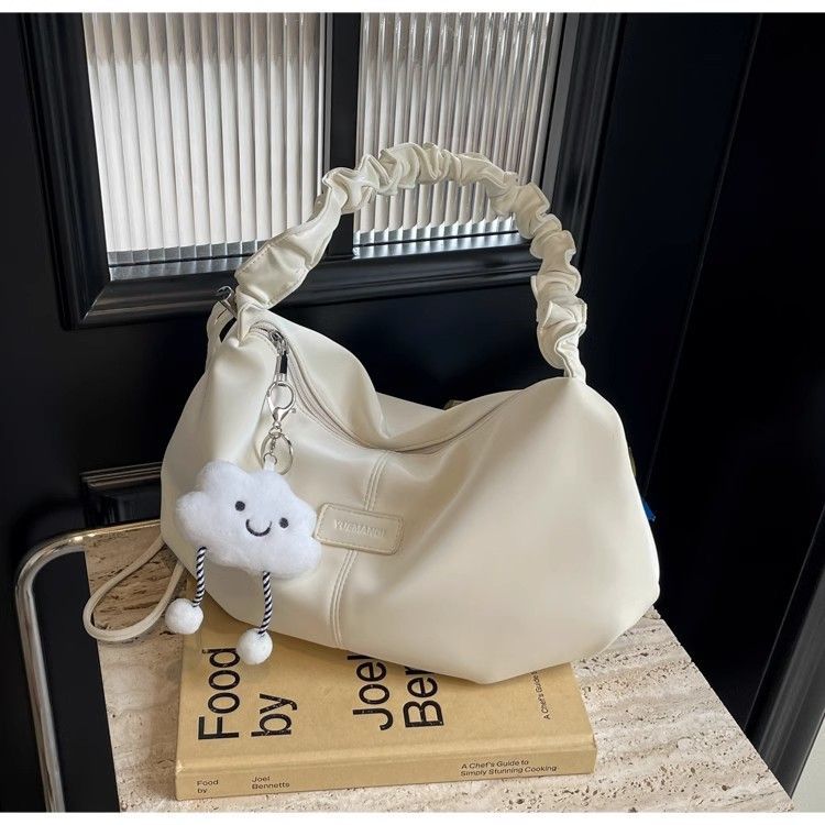 凯思琳森系慵懒风银色包包女大容量小众单肩斜挎包流行褶皱饺子包