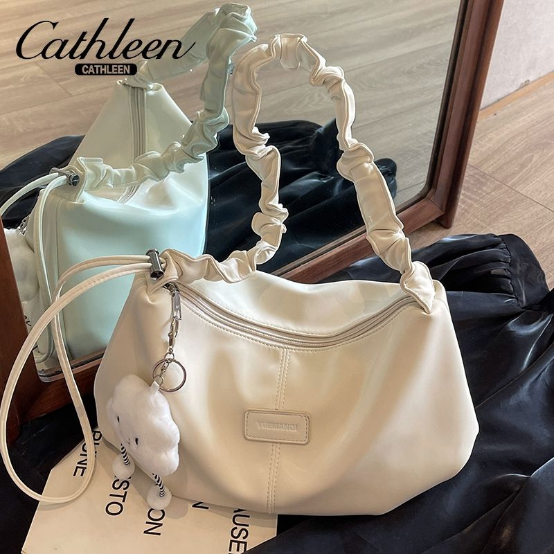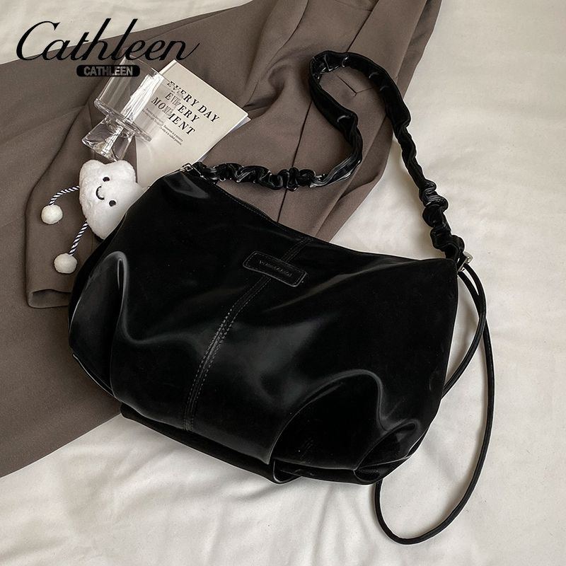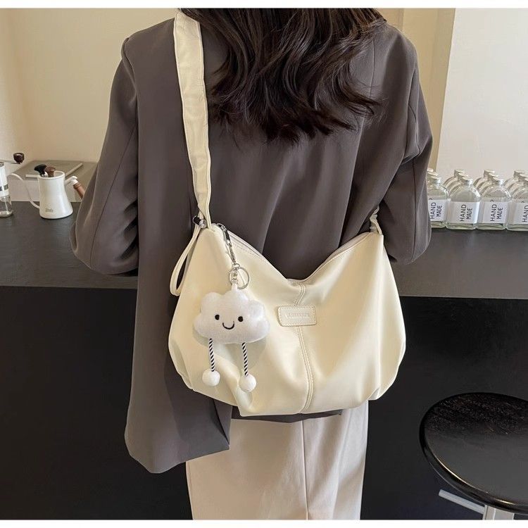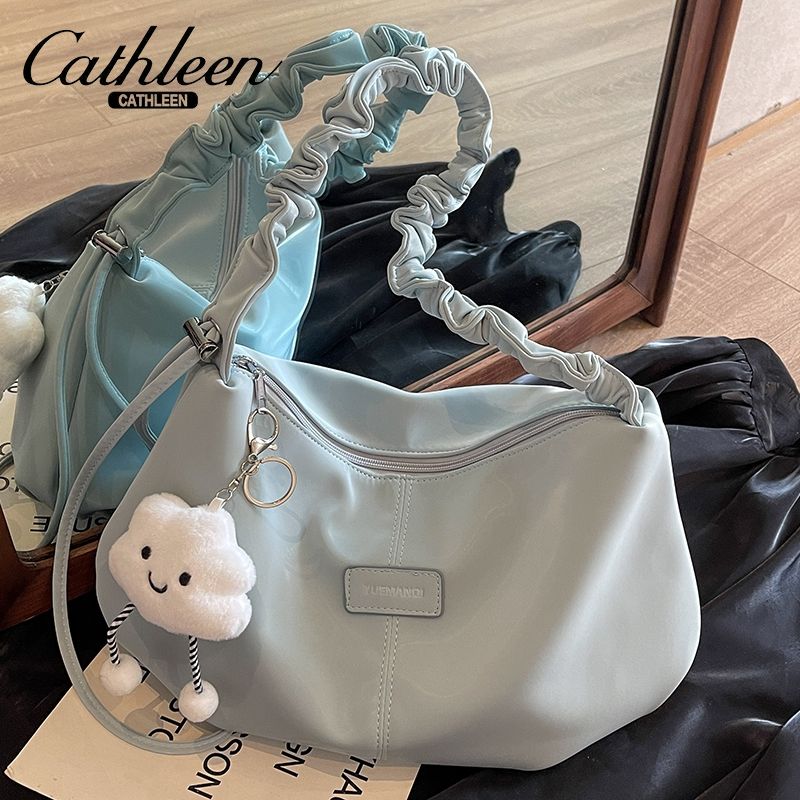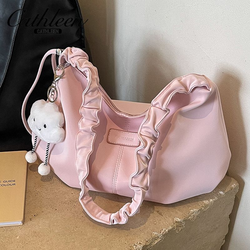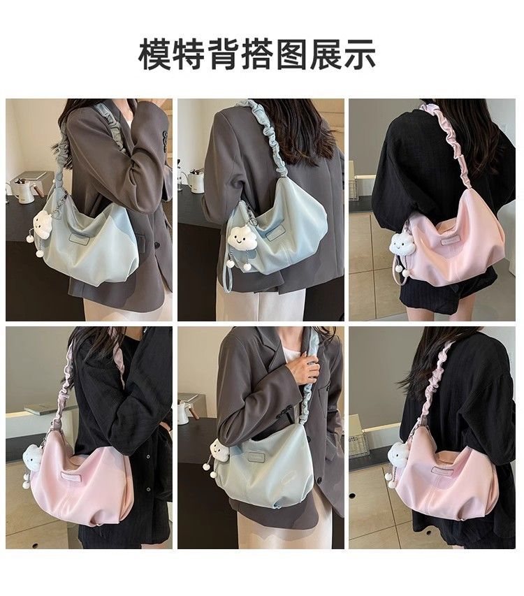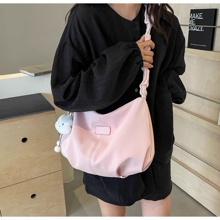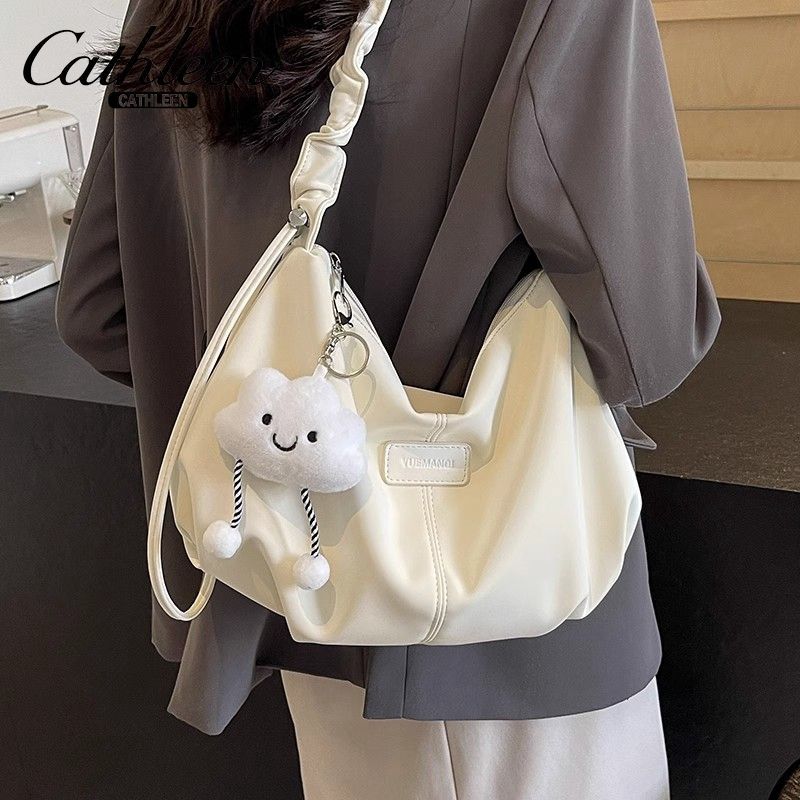 凯思琳森系慵懒风银色包包女大容量小众单肩斜挎包流行褶皱饺子包
