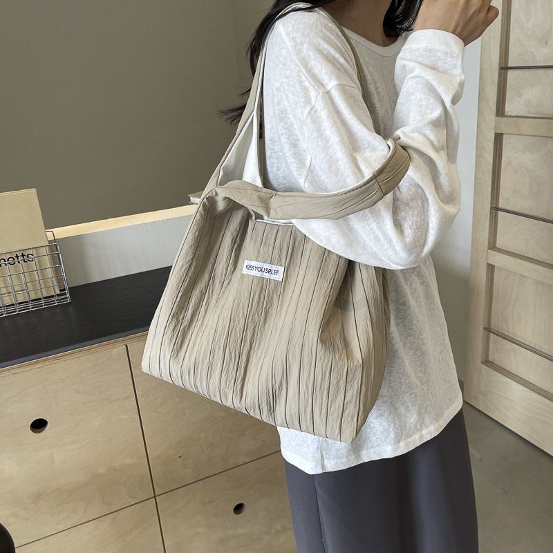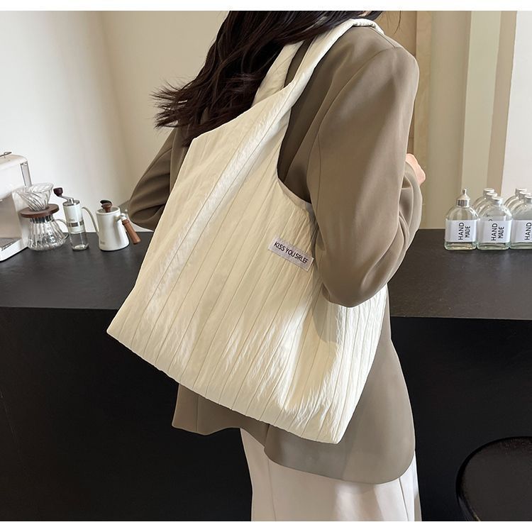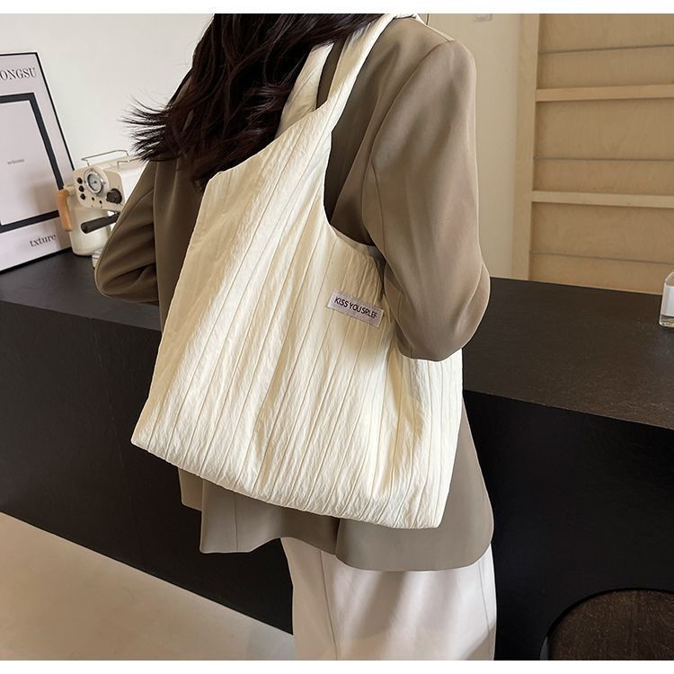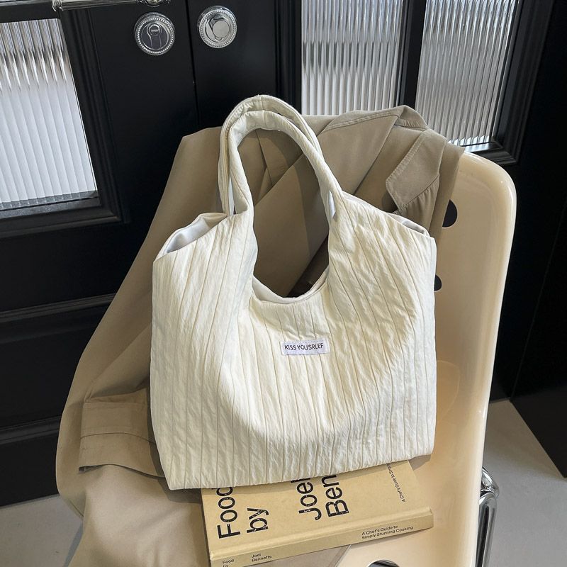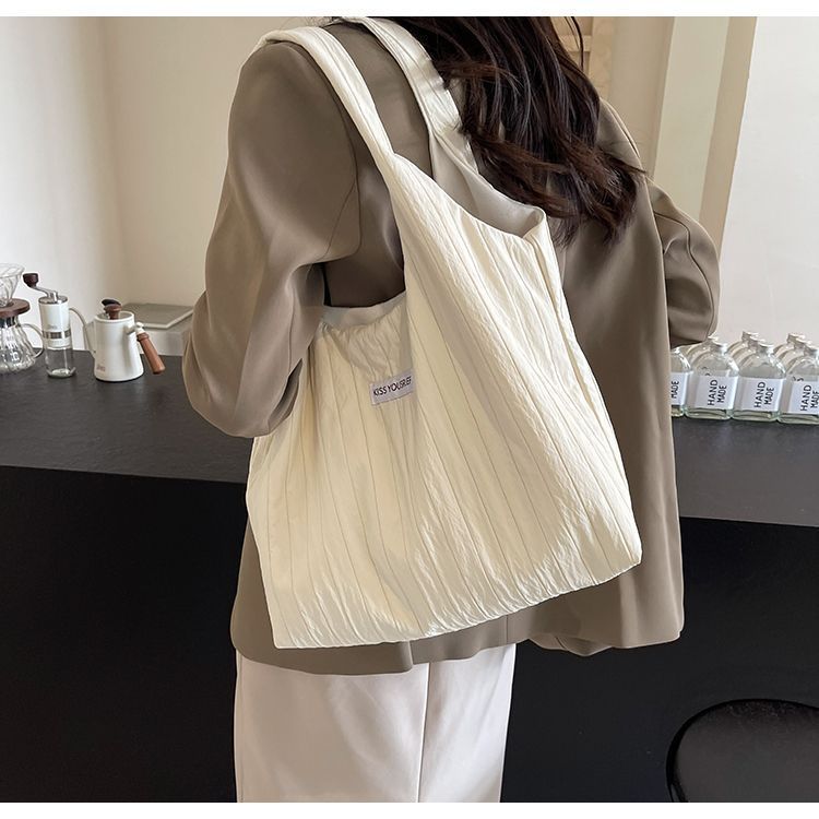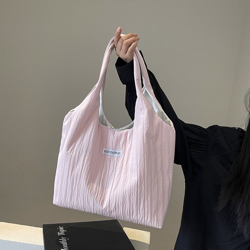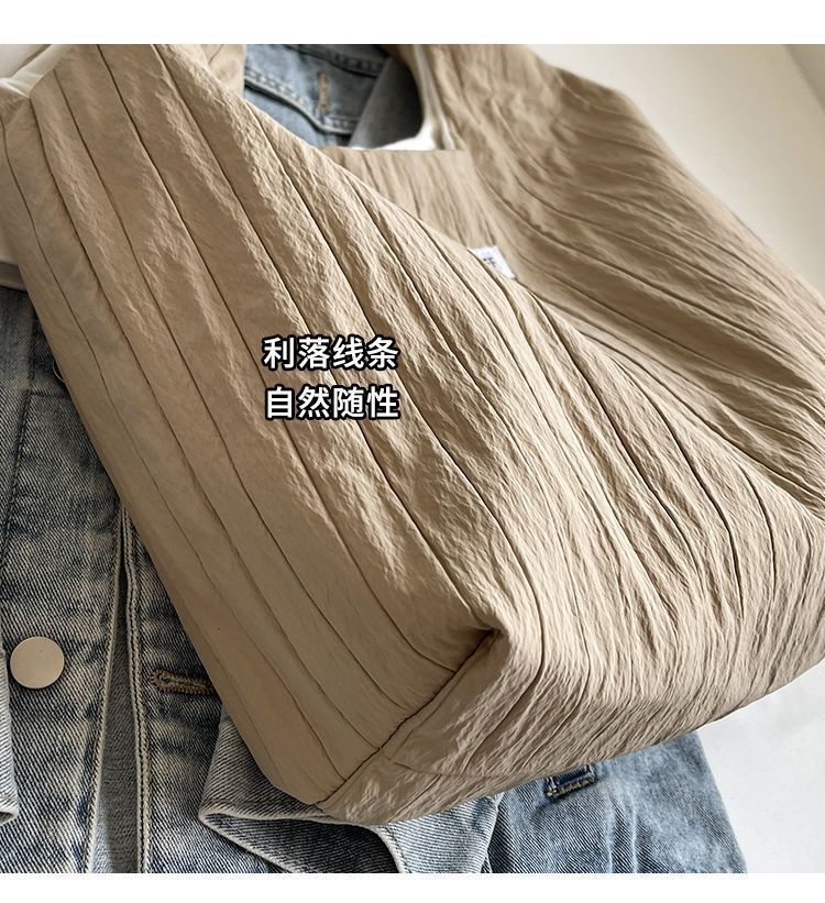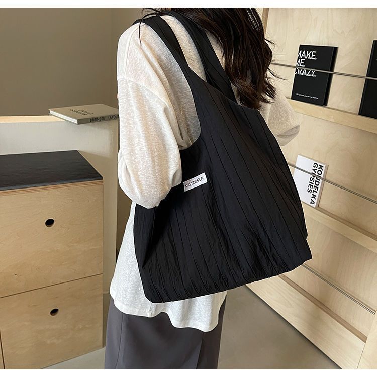 ins大容量托特包女2024新款夏季条纹车缝线日系简约单肩包休闲包