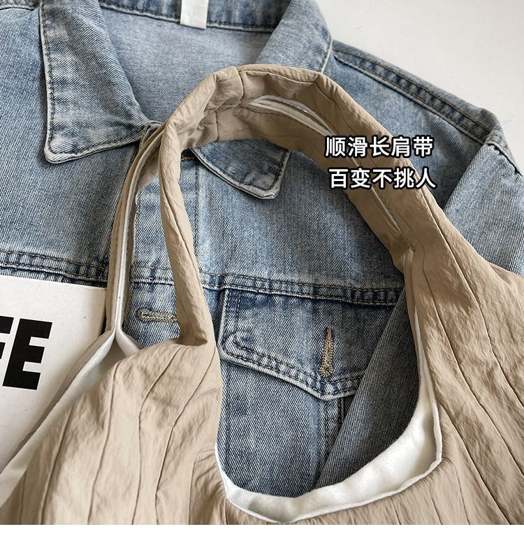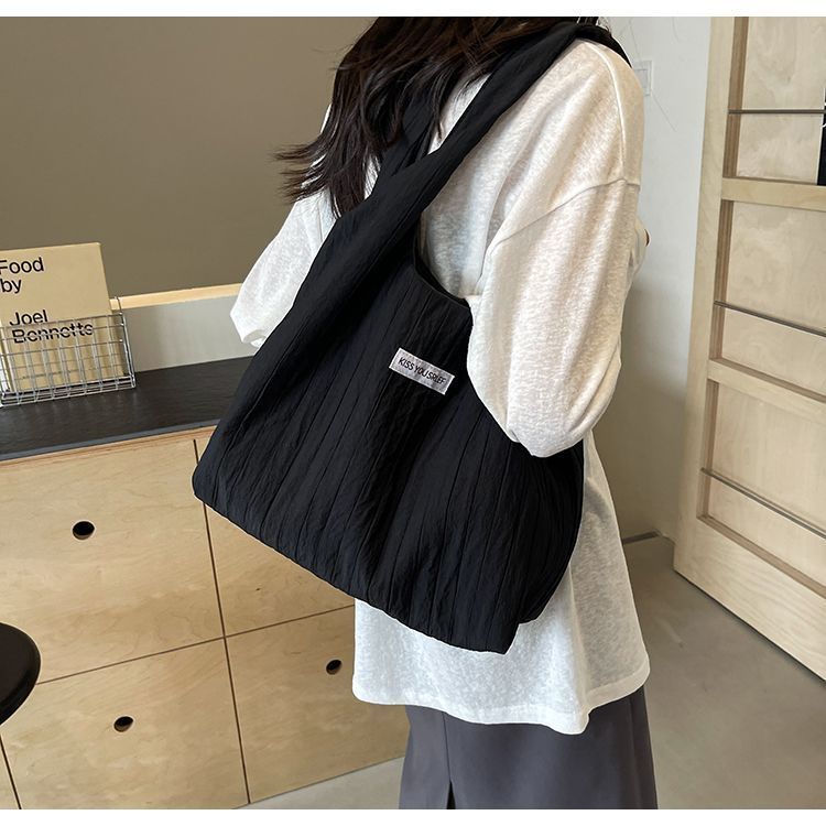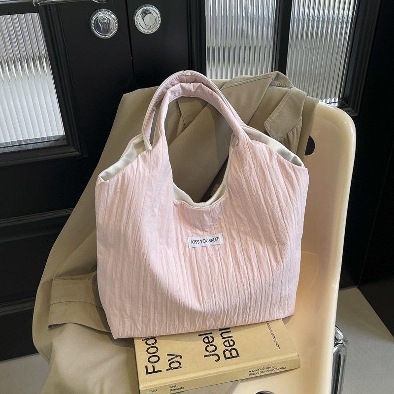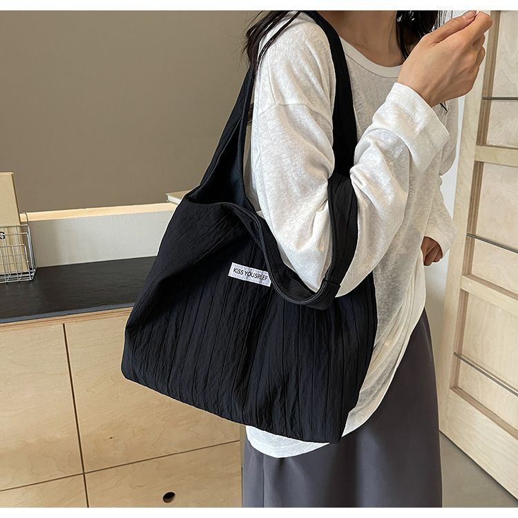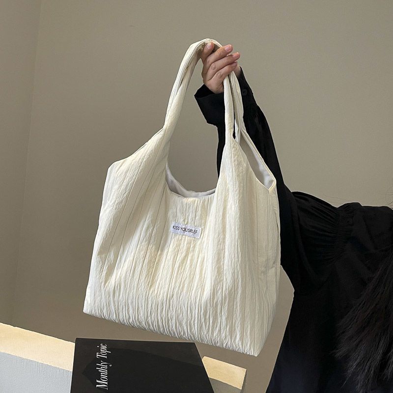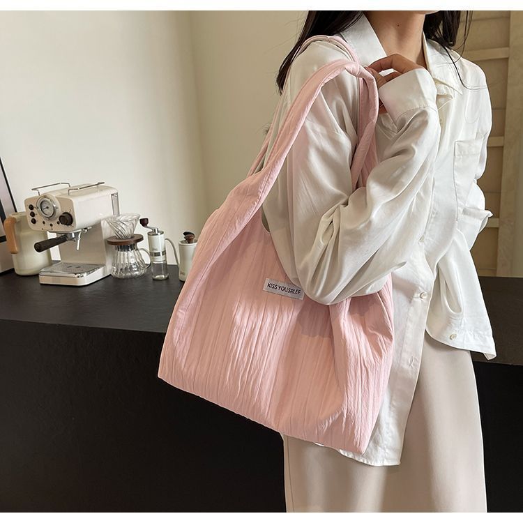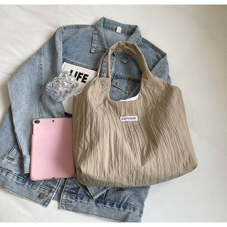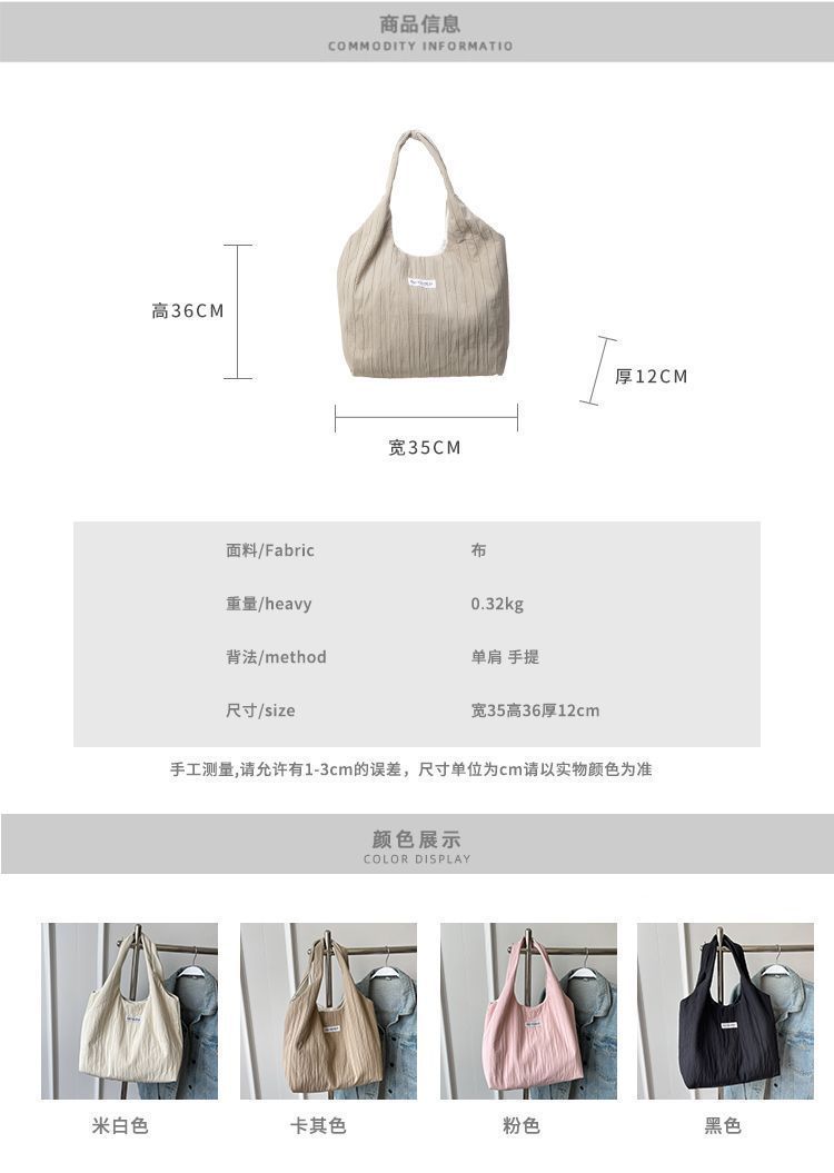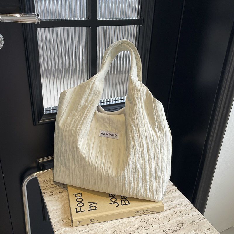 ins大容量托特包女2024新款夏季条纹车缝线日系简约单肩包休闲包