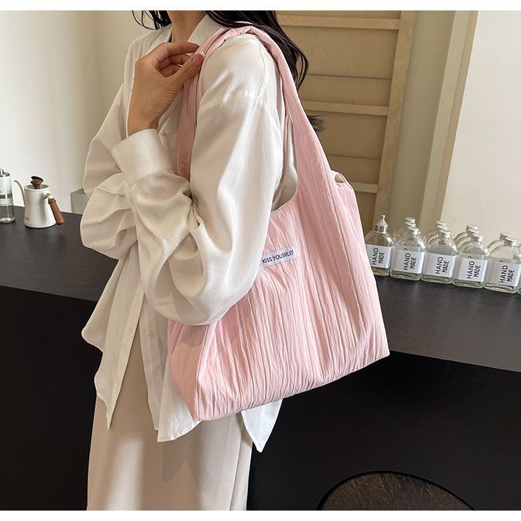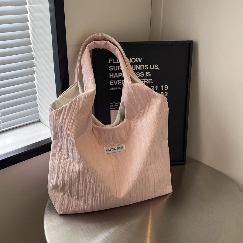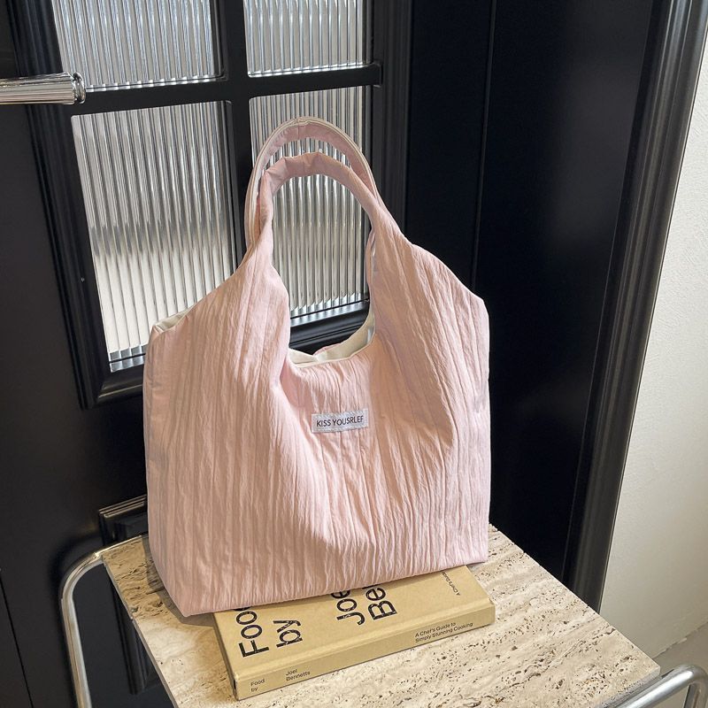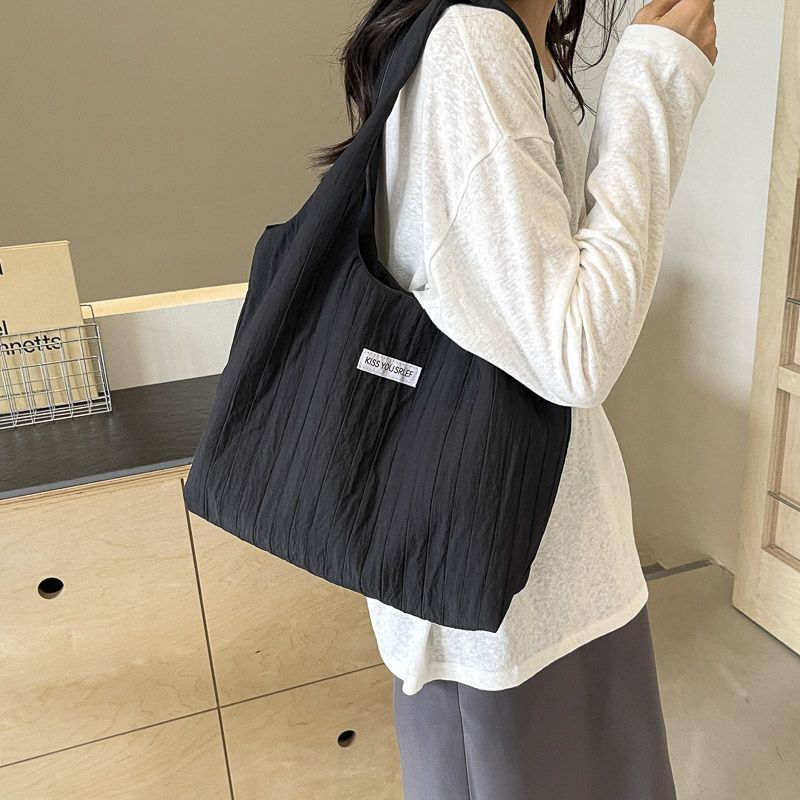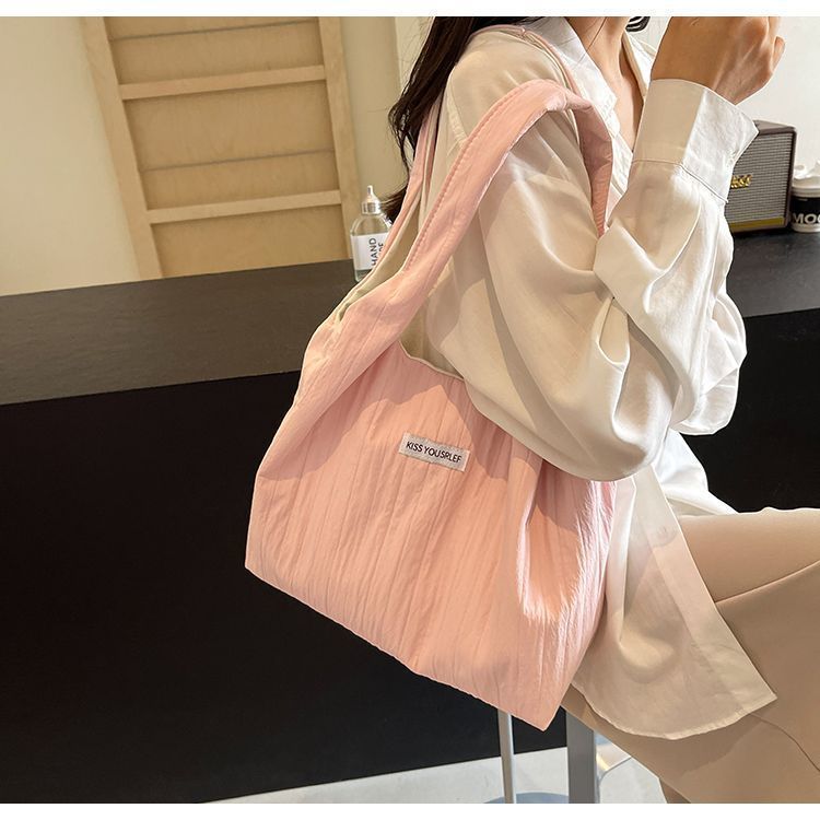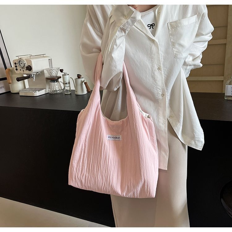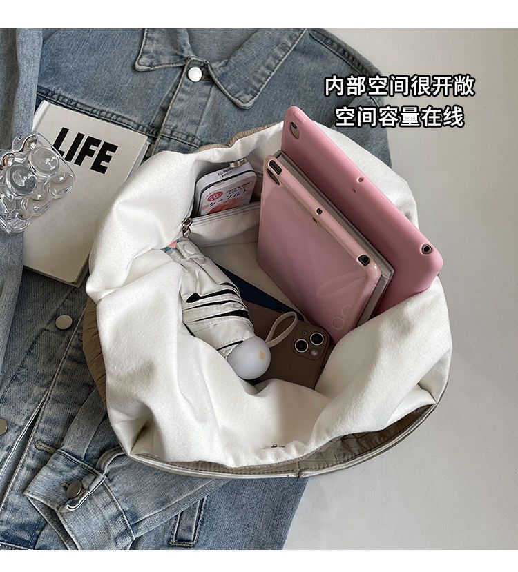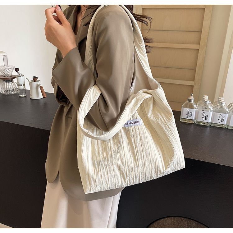 ins大容量托特包女2024新款夏季条纹车缝线日系简约单肩包休闲包