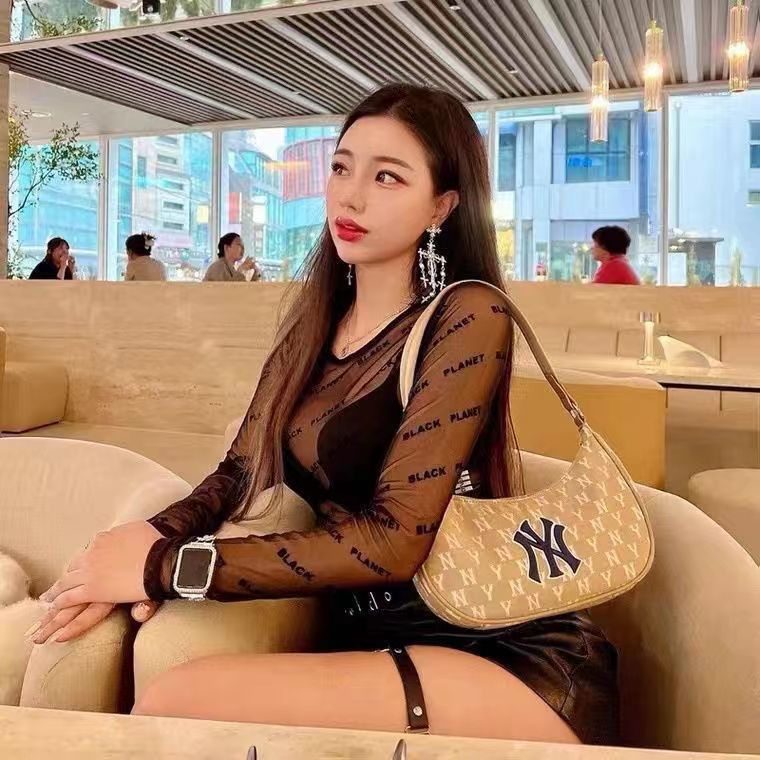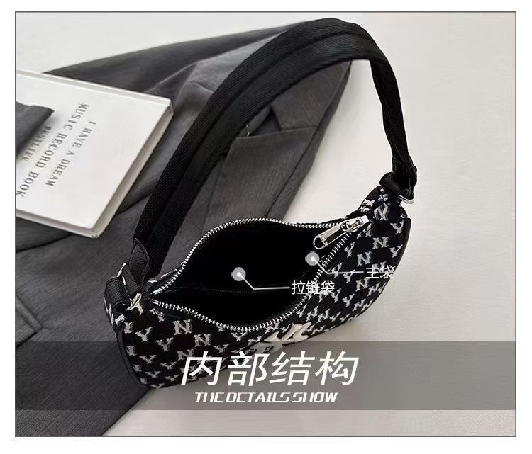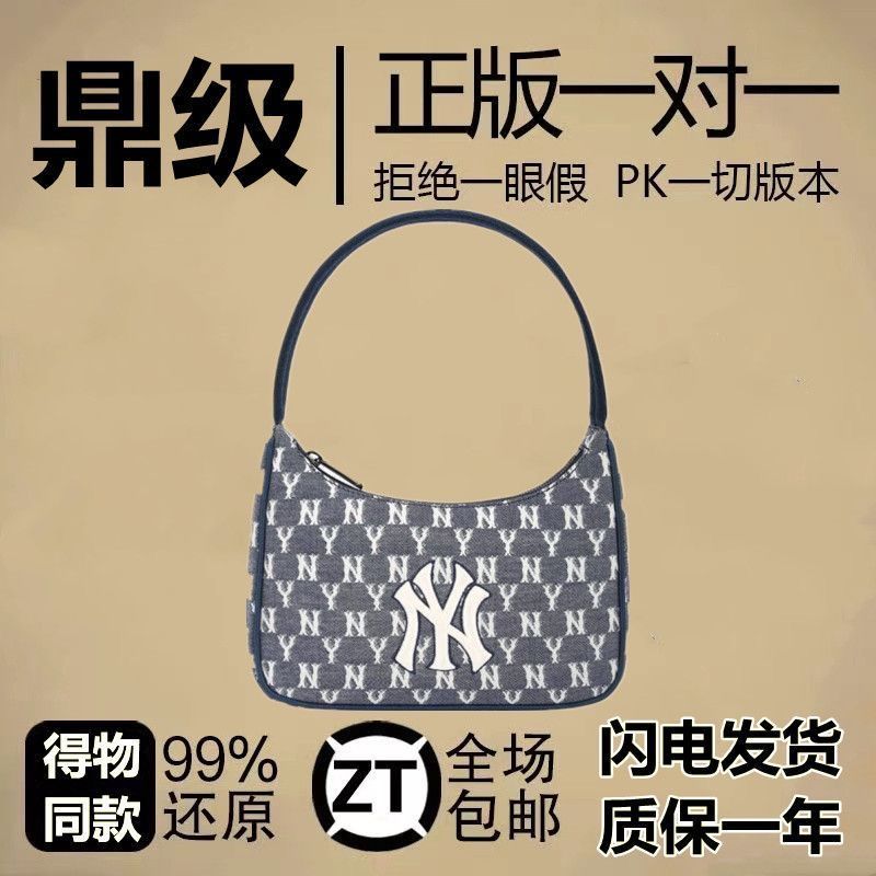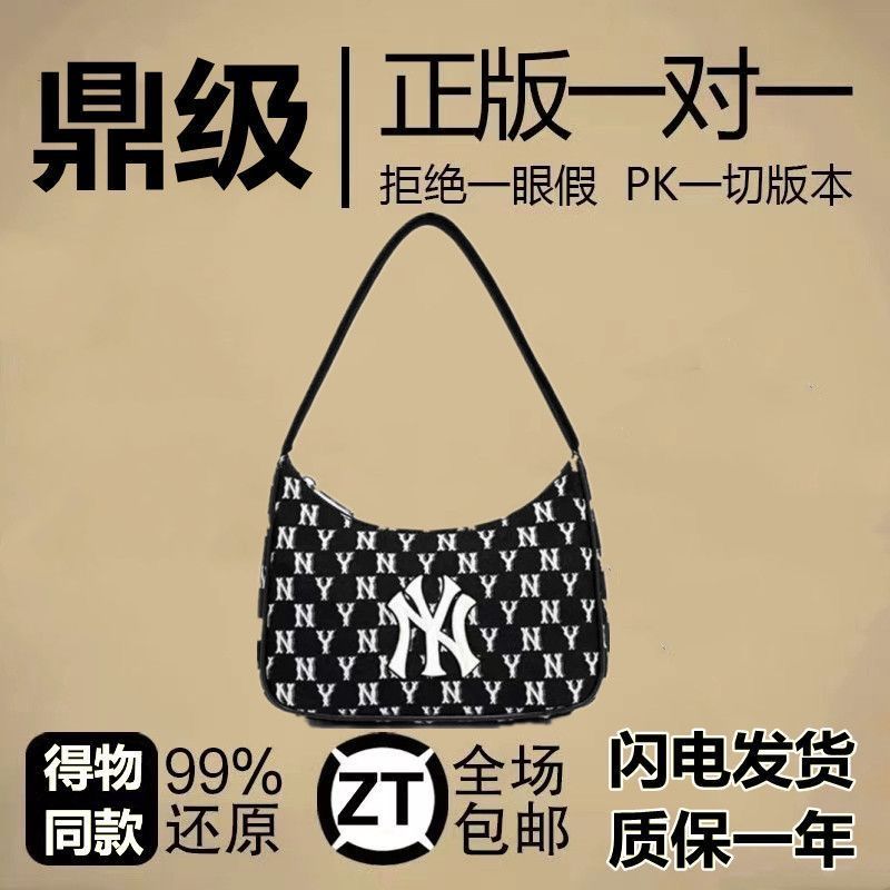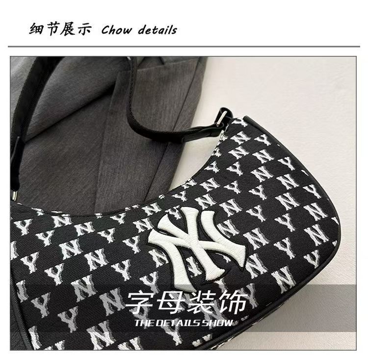 NY韩国腋下包新款ML洋基队压花手提包百搭休闲老花法棍单肩挎包女