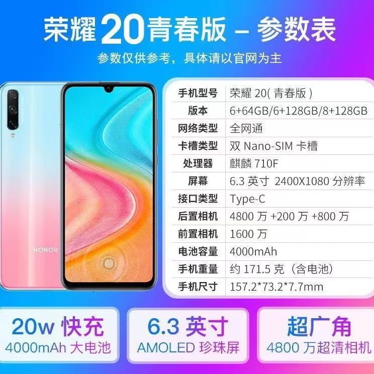 二手华为手机Huawei荣耀20青春全网通4G智能学生手机特价便宜清仓