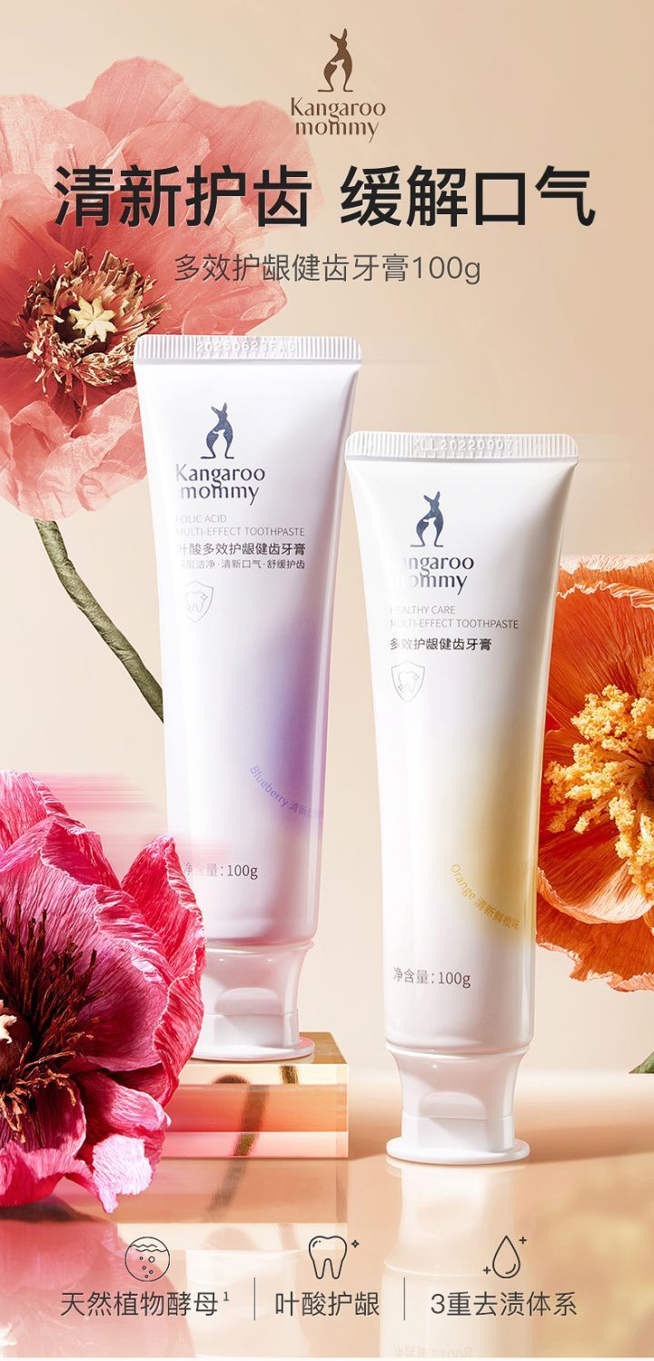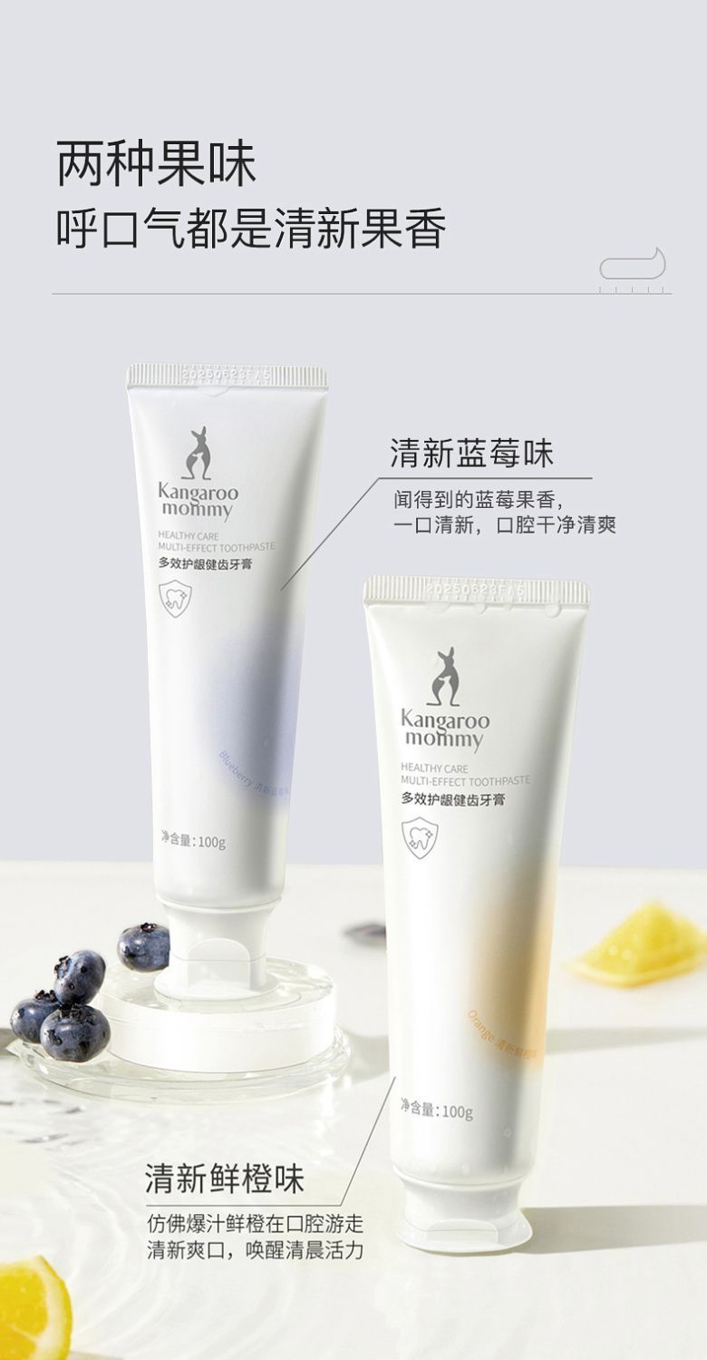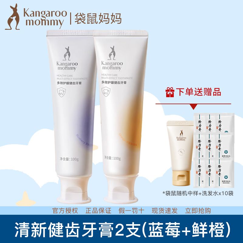 袋鼠妈妈口腔护理去渍牙膏清新口气护齿护牙龈无氟果香味套装正品