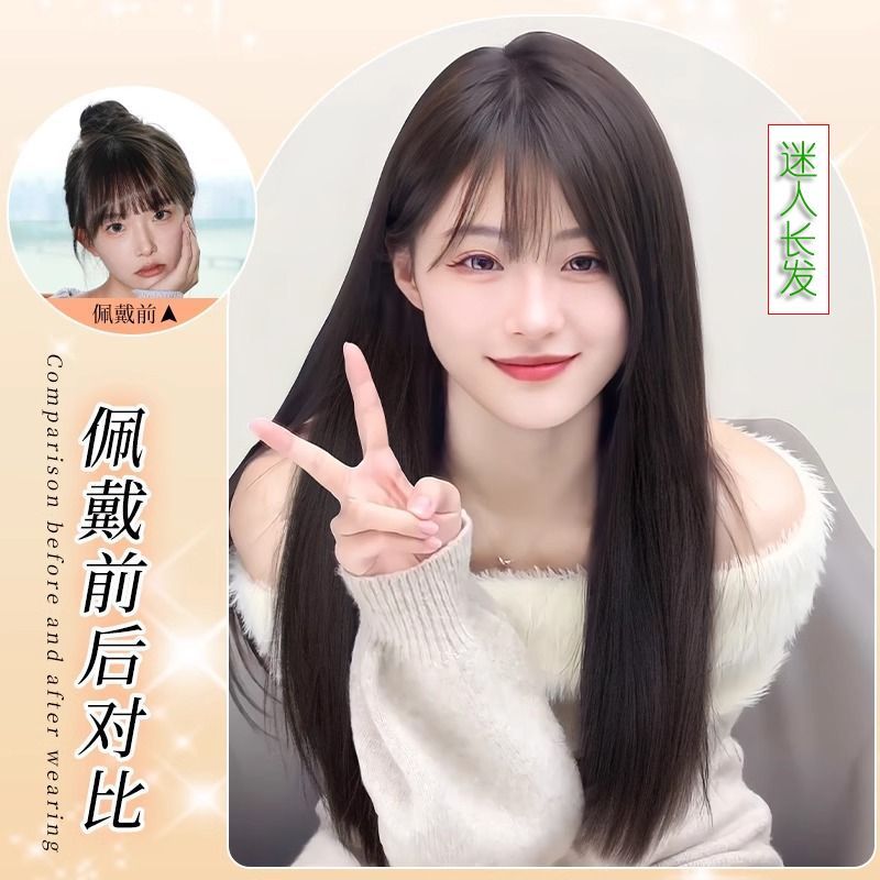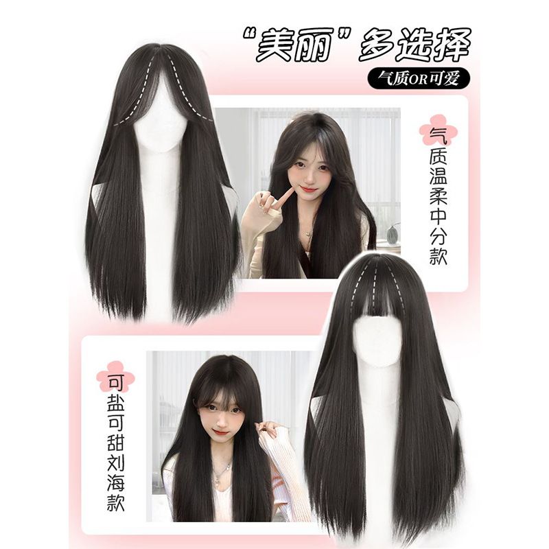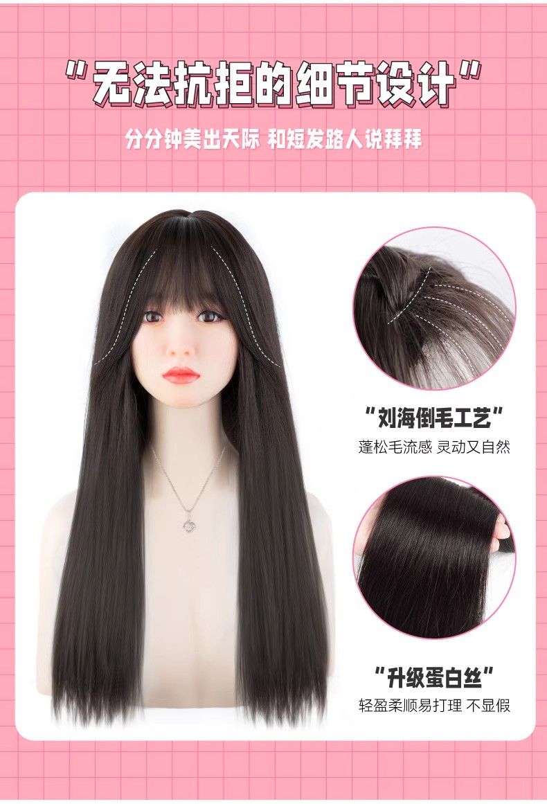 | brown and black [bangs/long straight hair] + five-piece care set(棕黑色【刘海款/长直发】+护理五件套) | USD $10.34 | 99999 piece available |