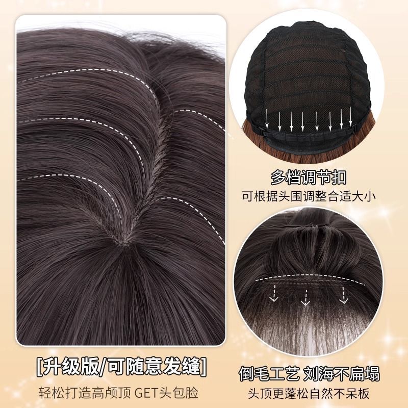 | brown black [temperament mid-length] + hair net(棕黑色【气质中分款】+发网) | USD $9.26 | 99999 piece available |