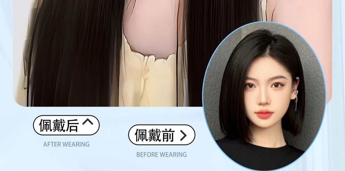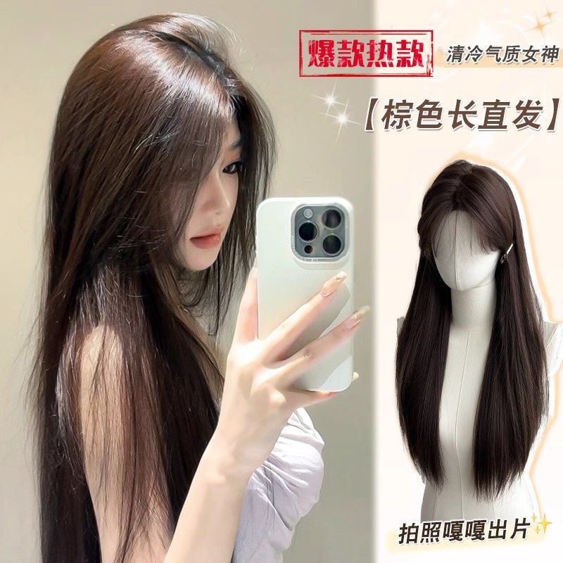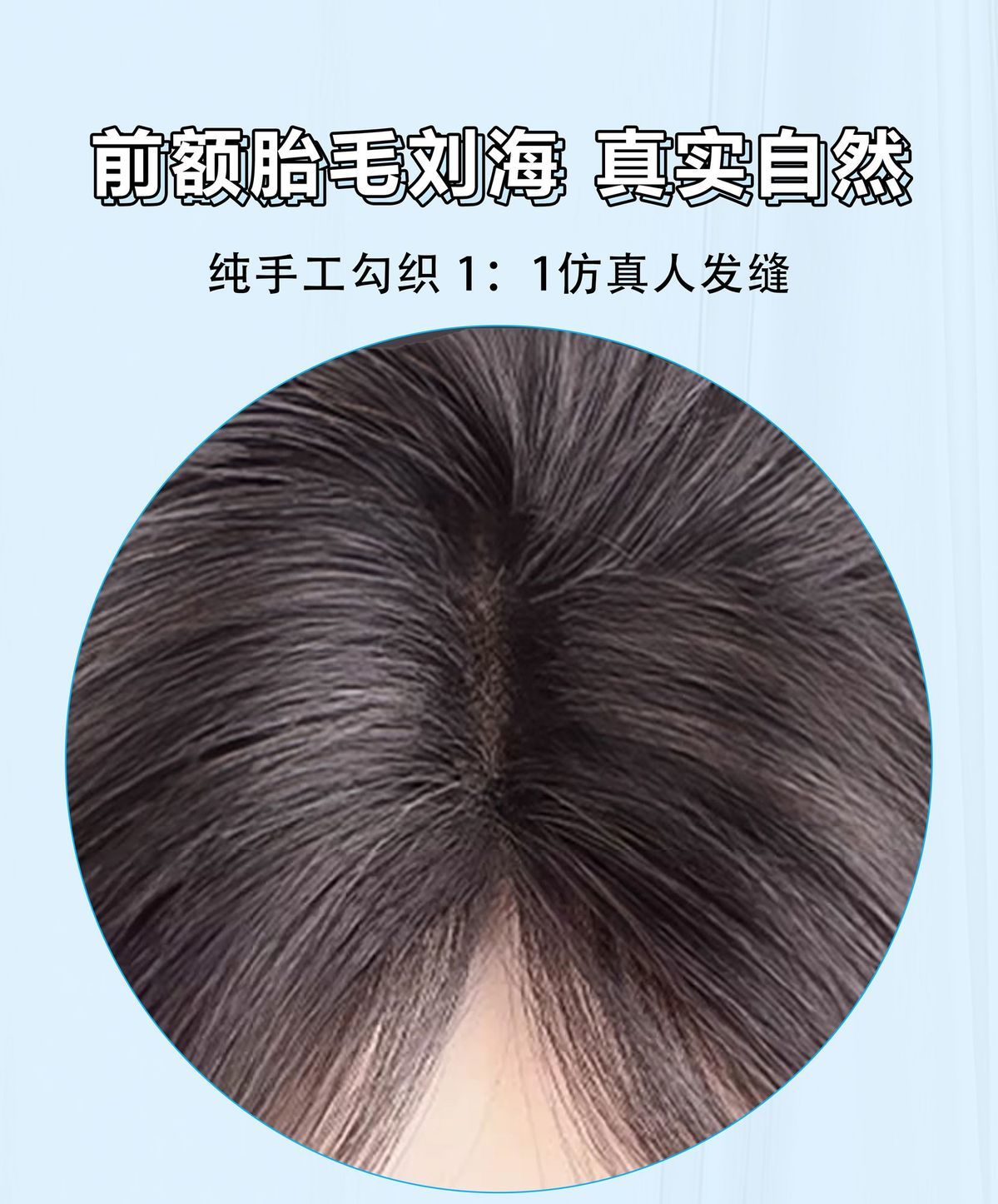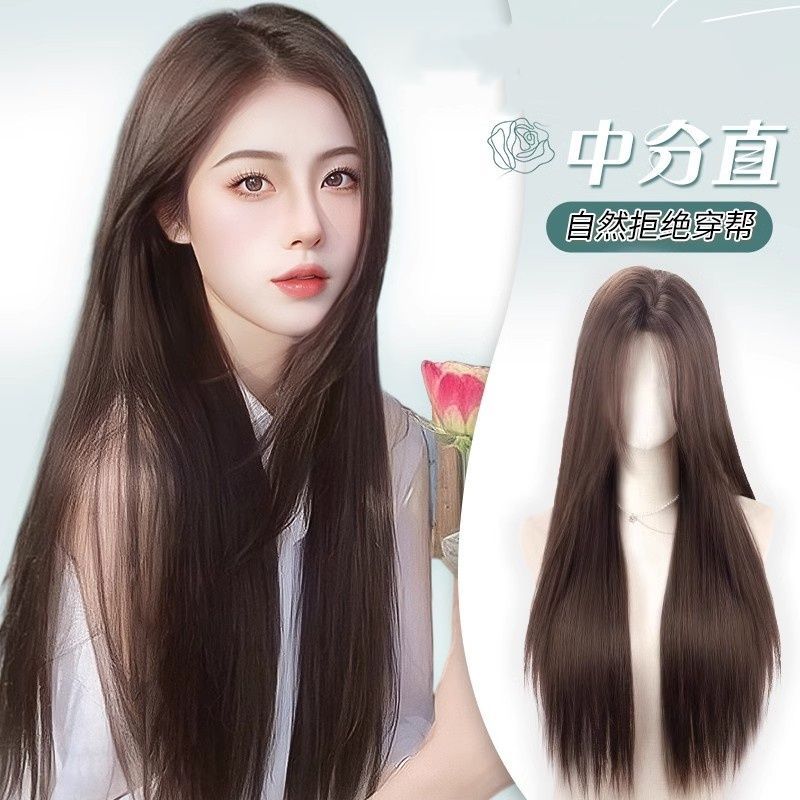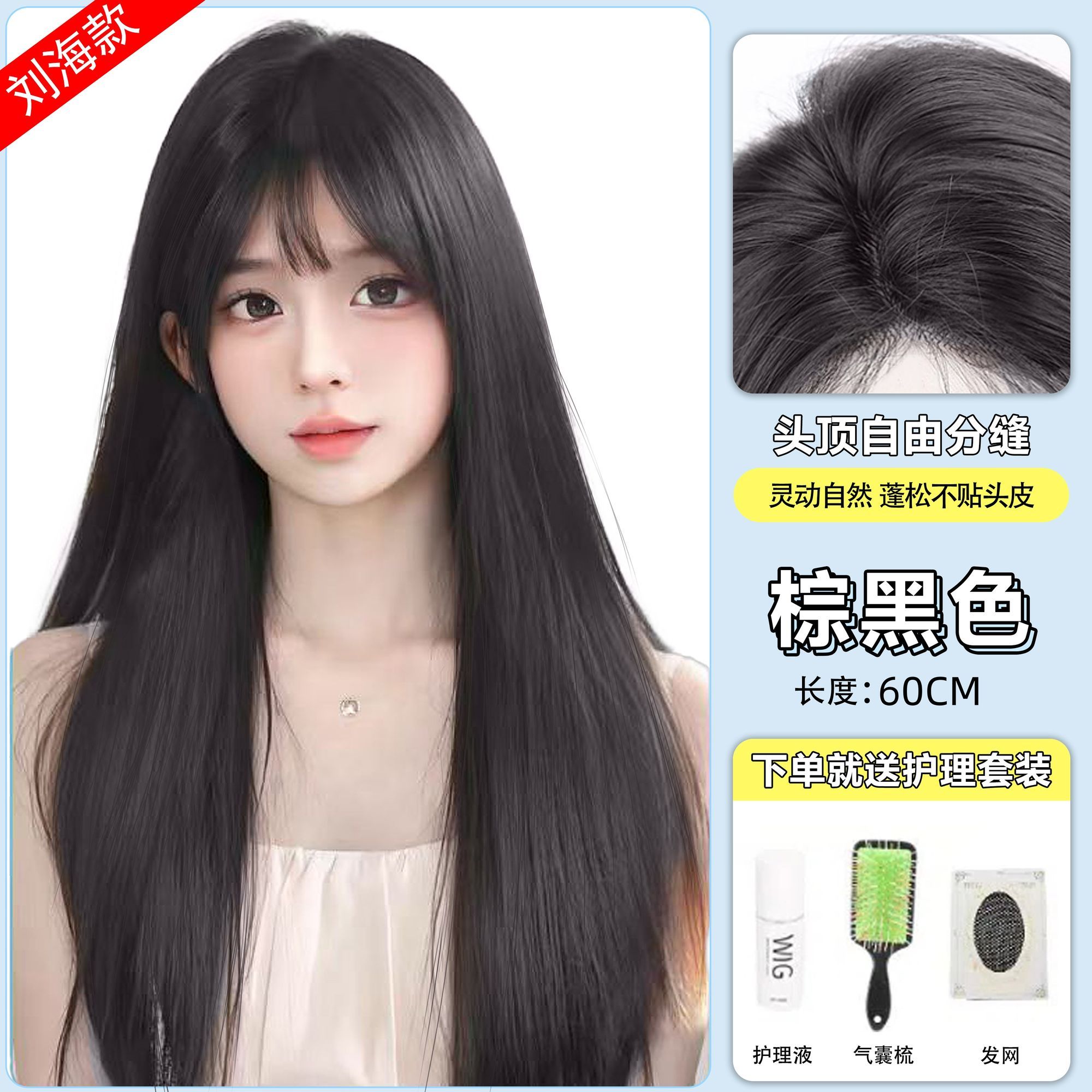 长直发女全头套式法式中分刘海整顶头套轻薄透气仿真发黑长直头套