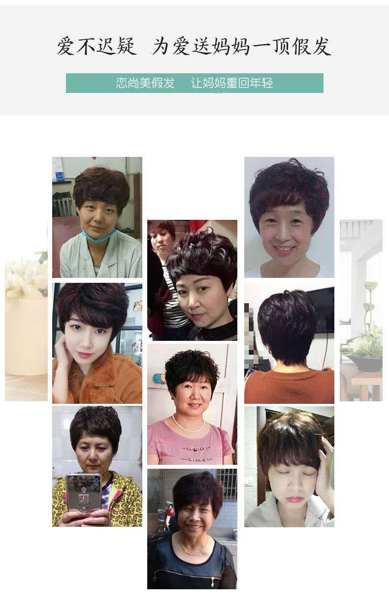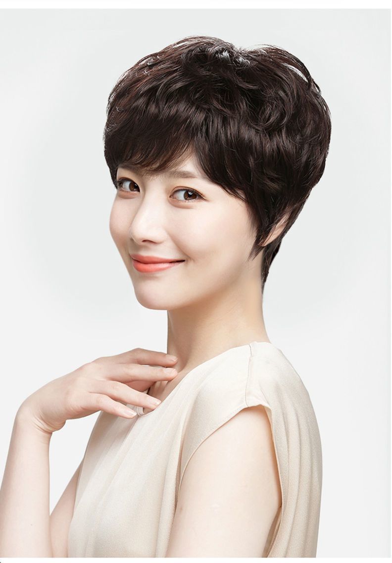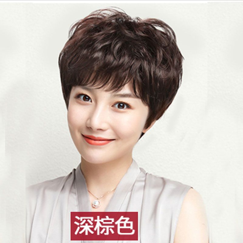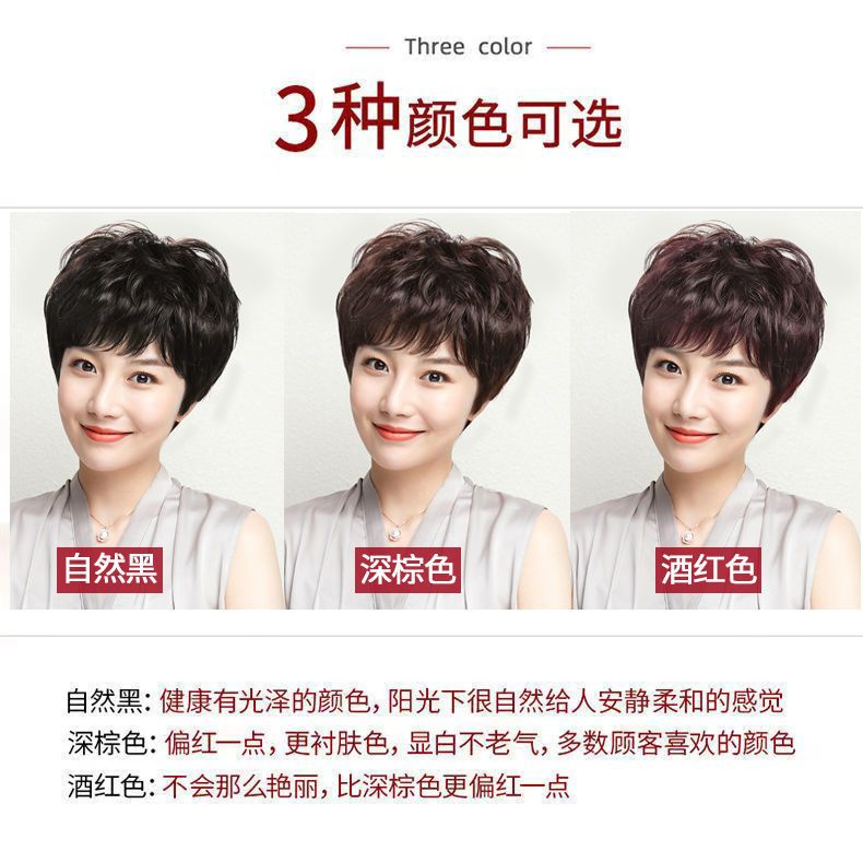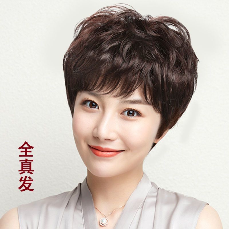 假发短发女真发全真人发全头套中老年女士妈妈款卷发假发套真人发