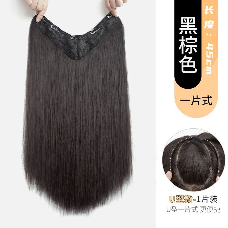 韩系长直发一片式u型直发增发量接发片轻薄隐形无痕气质黑长直