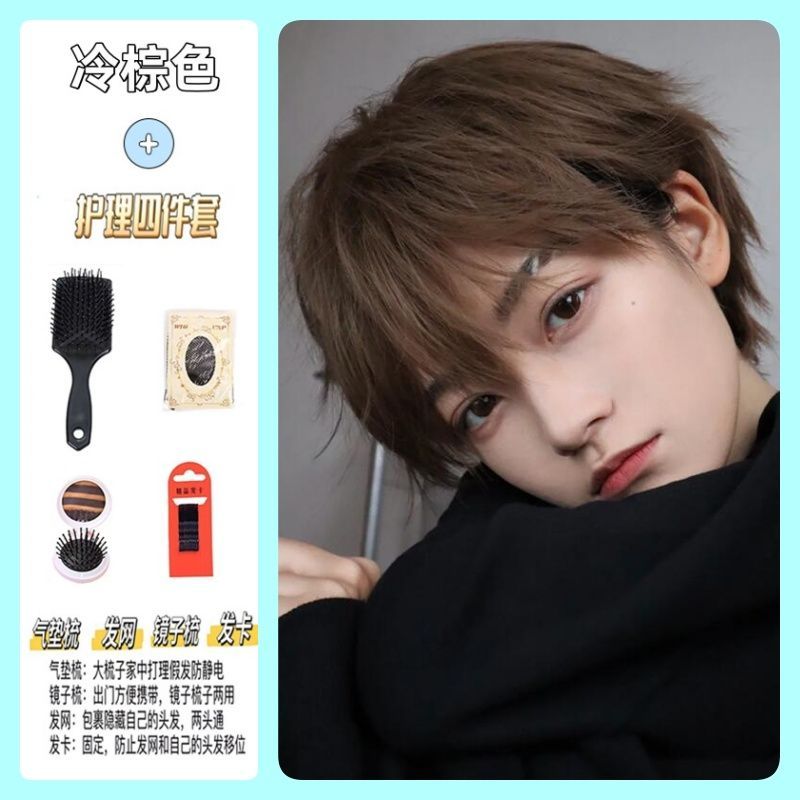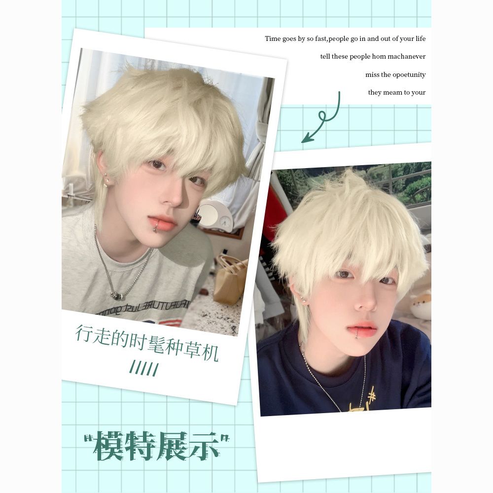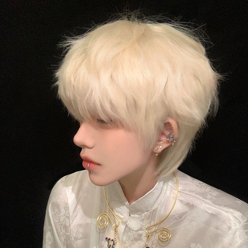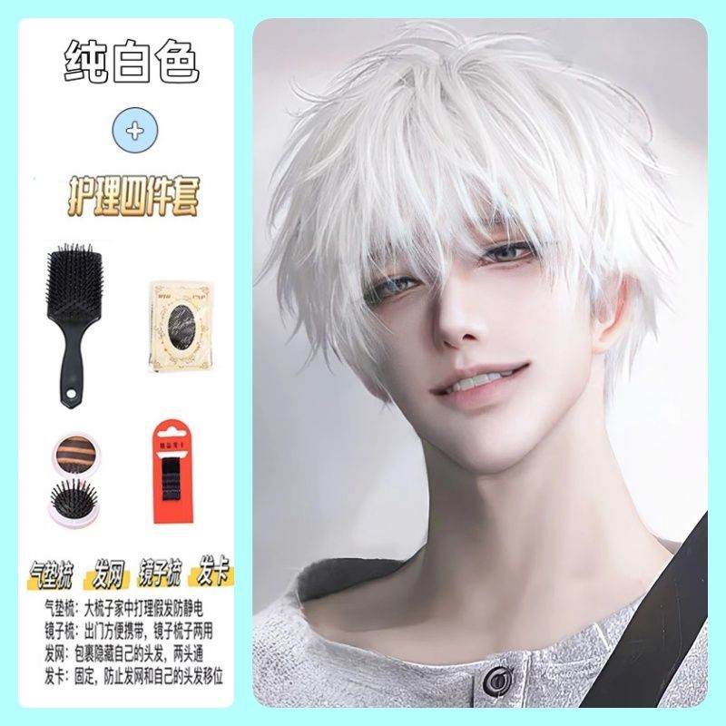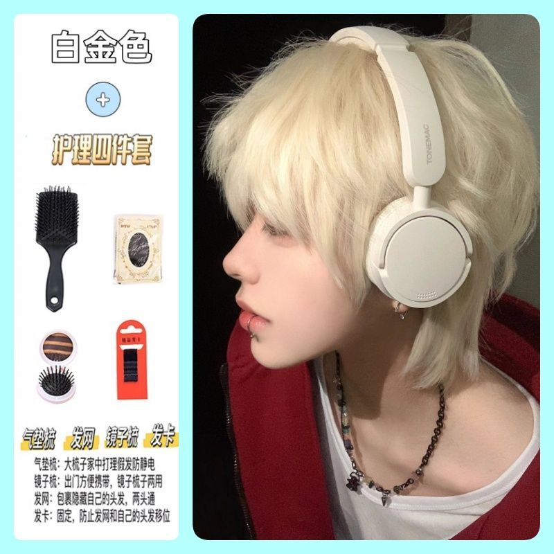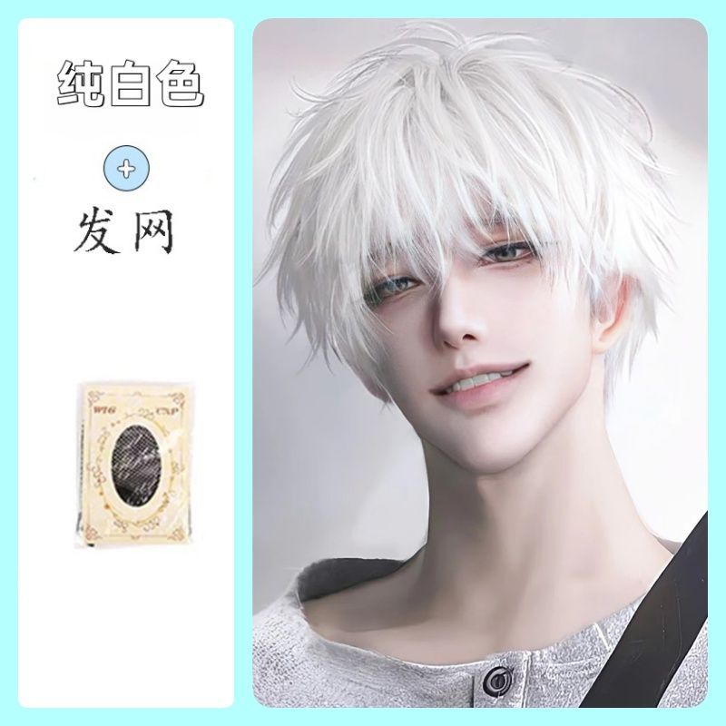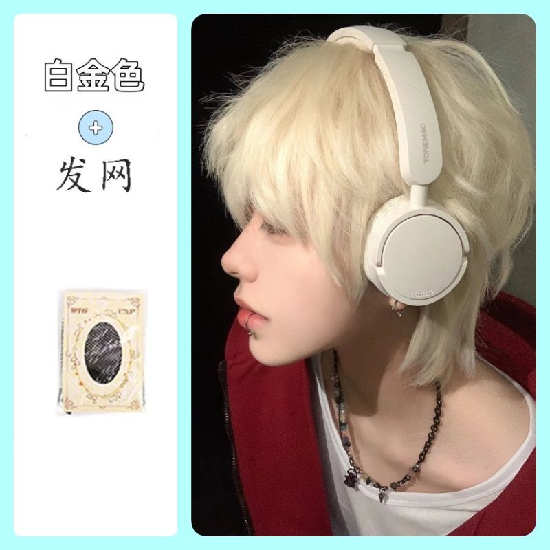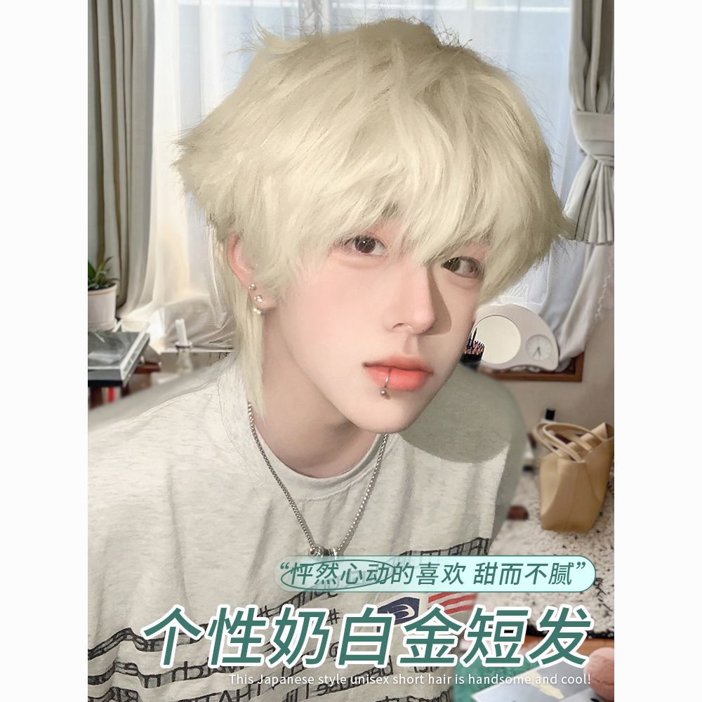 白金色男短发时尚帅气学生日常自然少年感蓬松自然动漫cos全头套