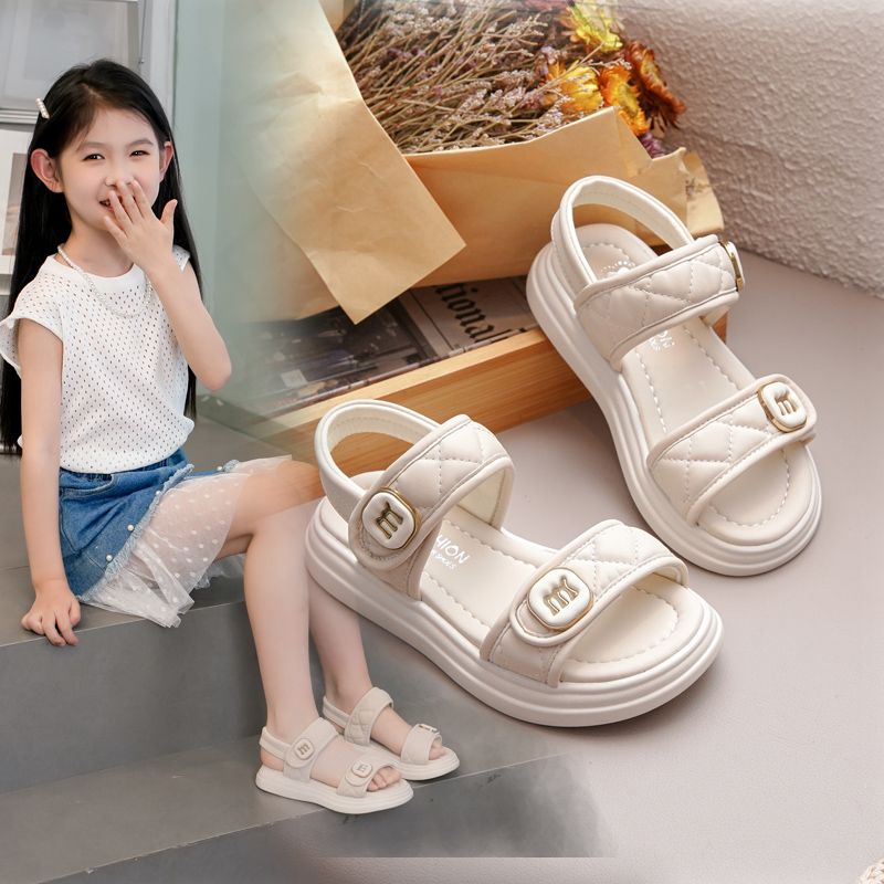 女童公主凉鞋2024夏季新款软底时尚百搭简约儿童露趾防滑沙滩鞋