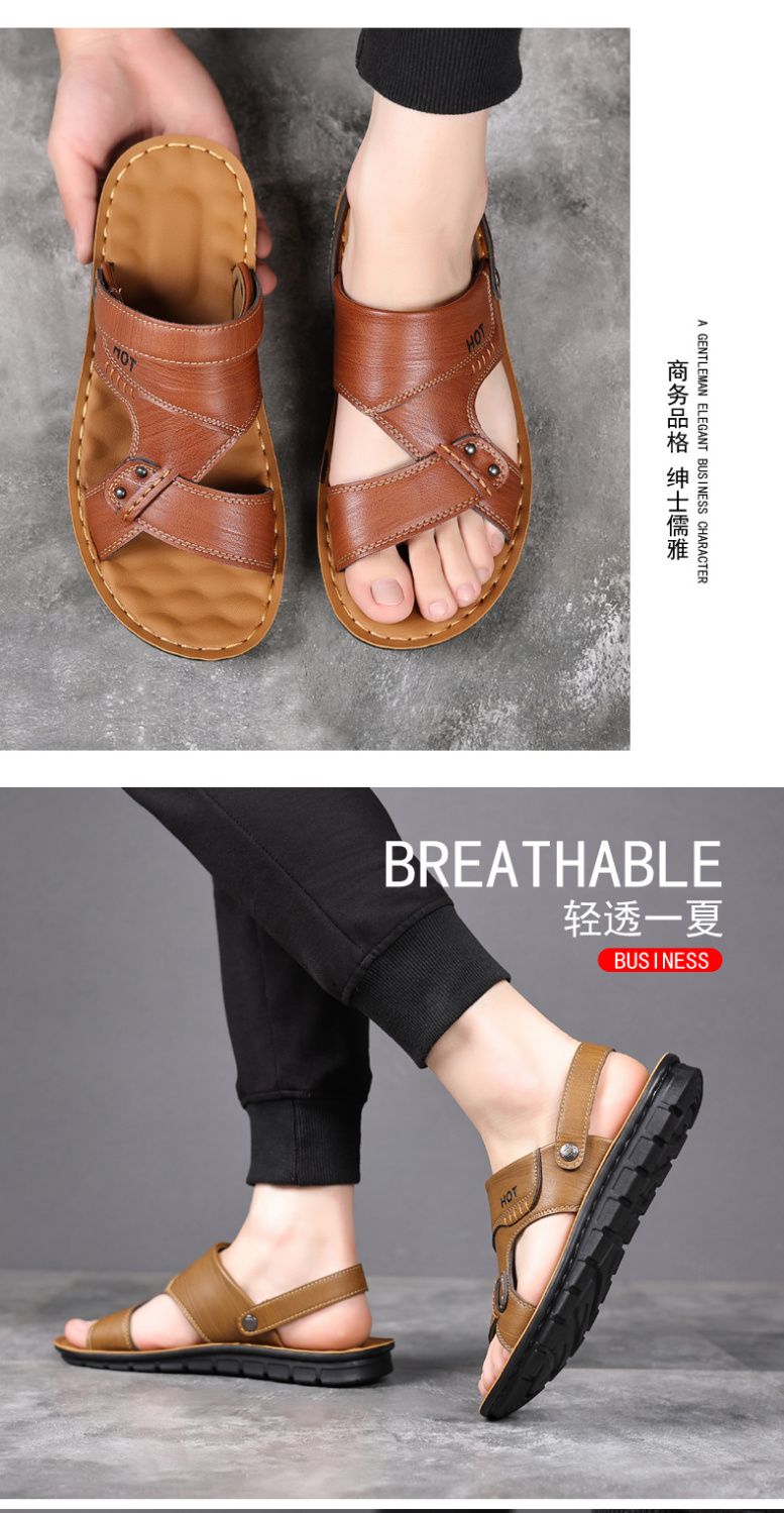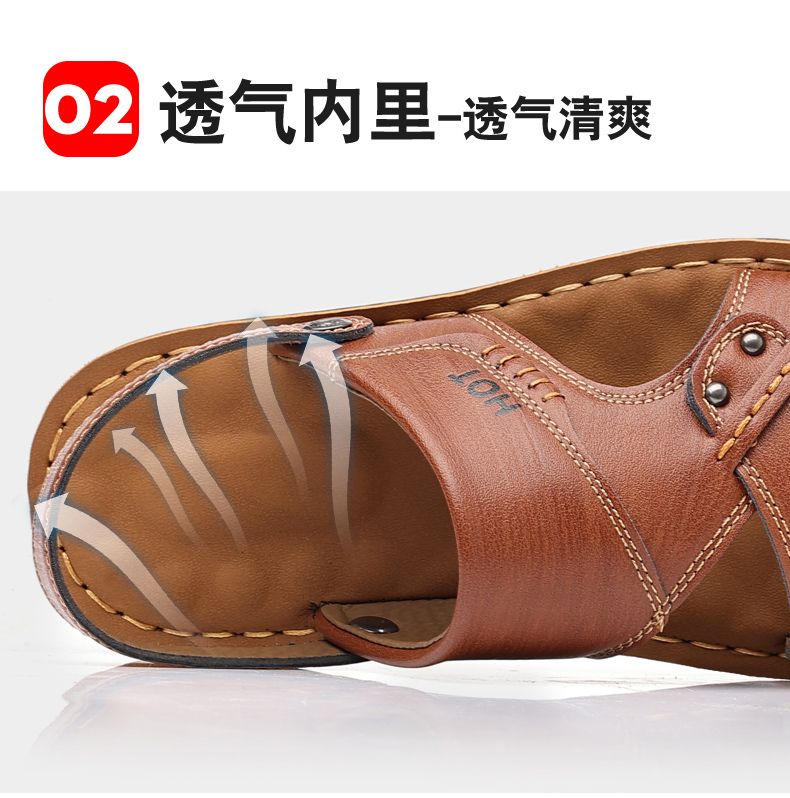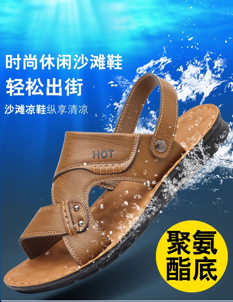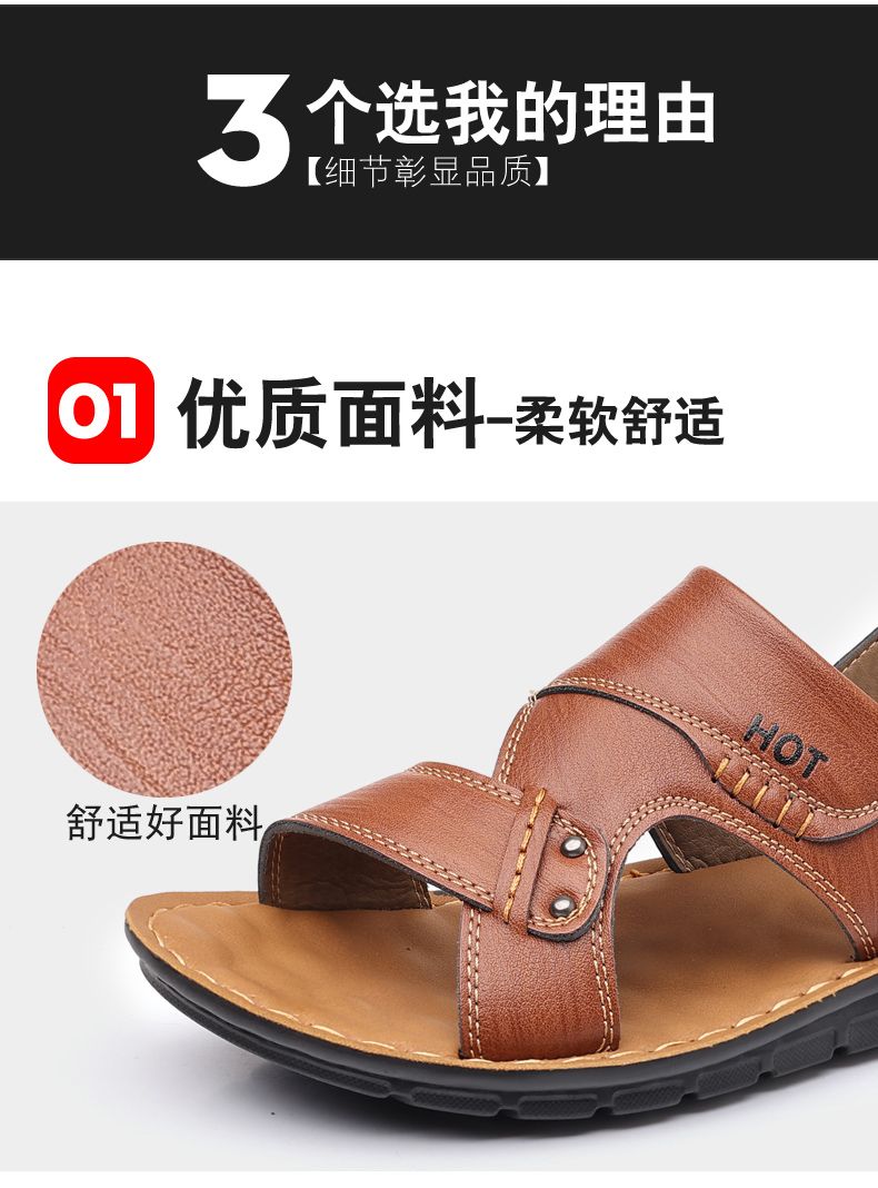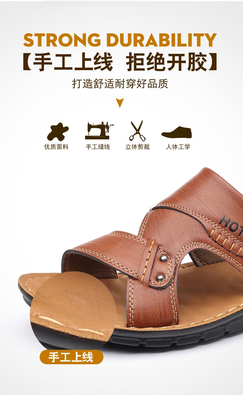 卡帝乐鳄鱼真皮牛皮凉鞋夏季休闲男士防滑软底厚底沙滩鞋两用拖鞋