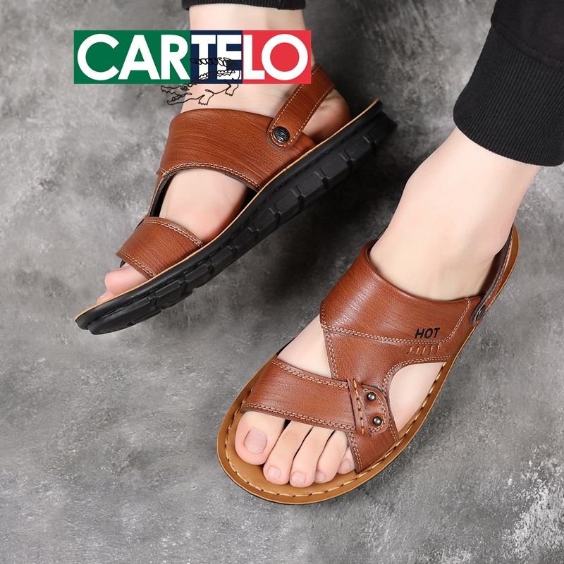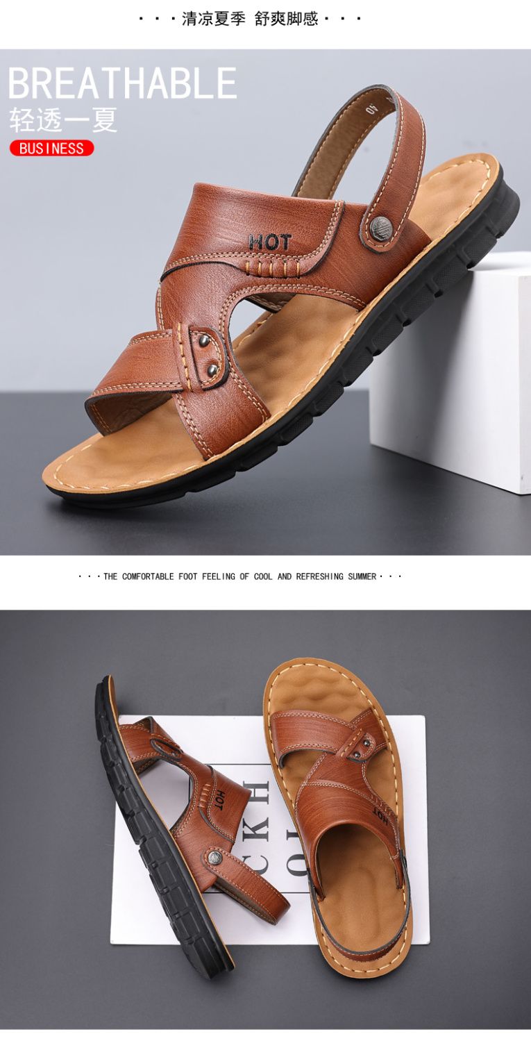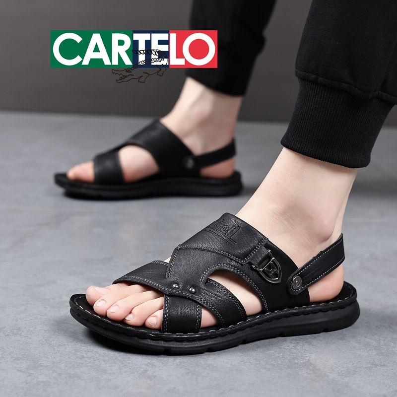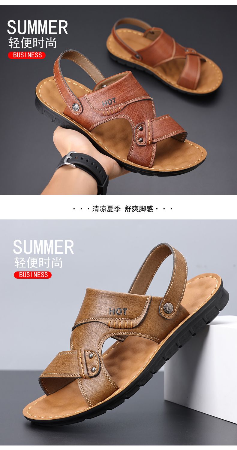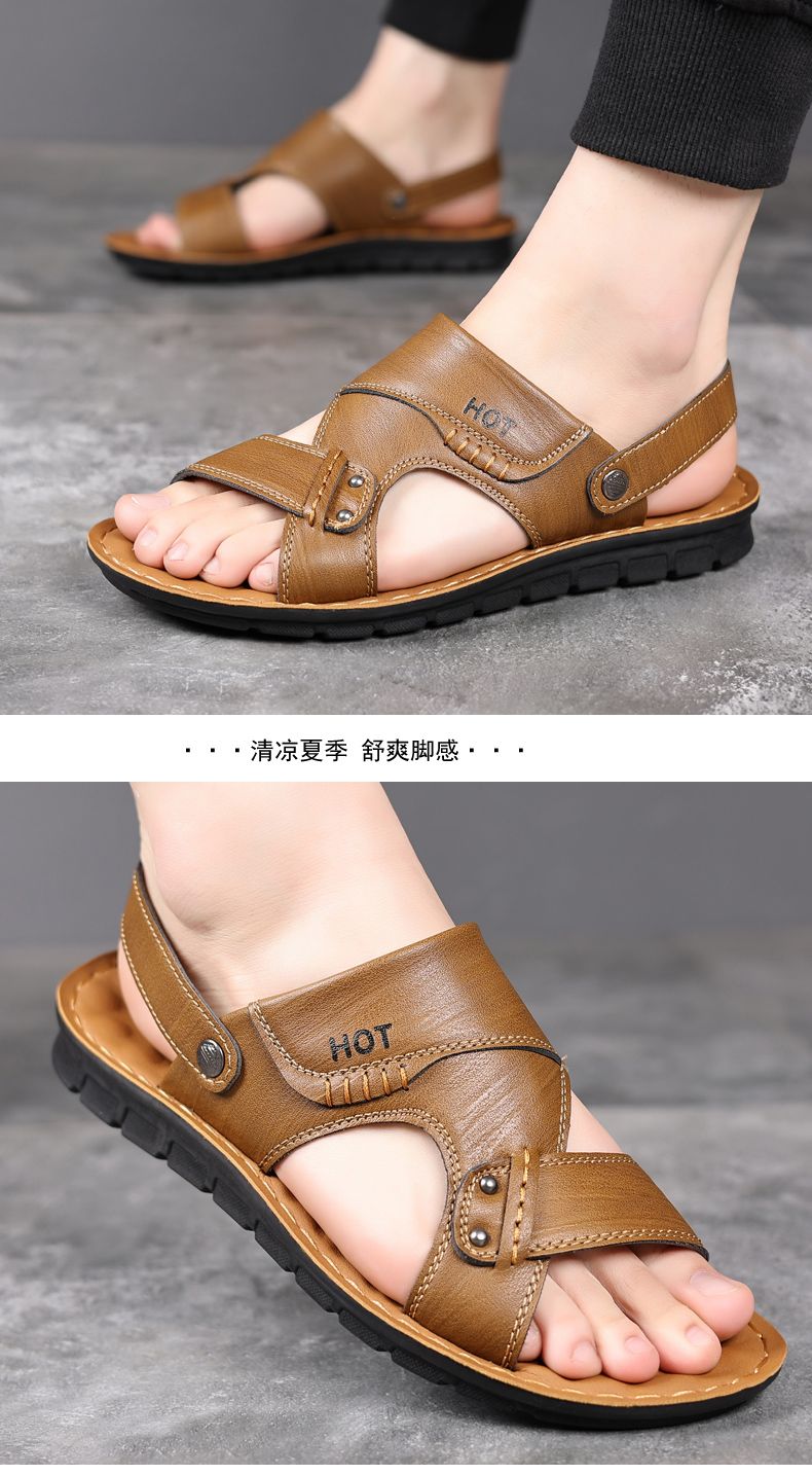 卡帝乐鳄鱼真皮牛皮凉鞋夏季休闲男士防滑软底厚底沙滩鞋两用拖鞋