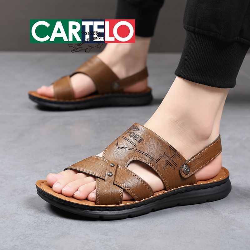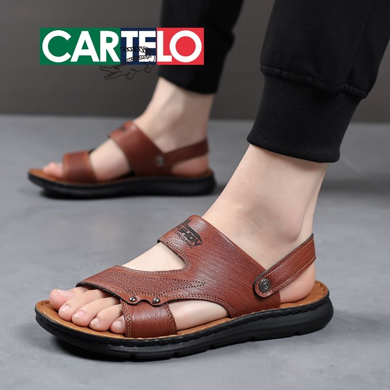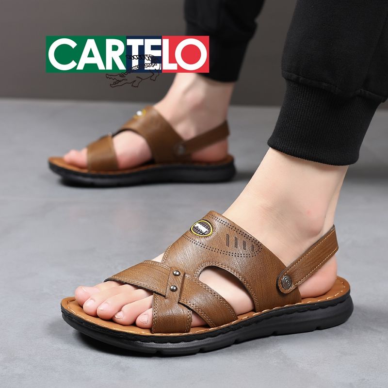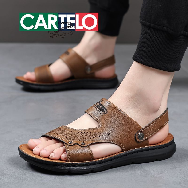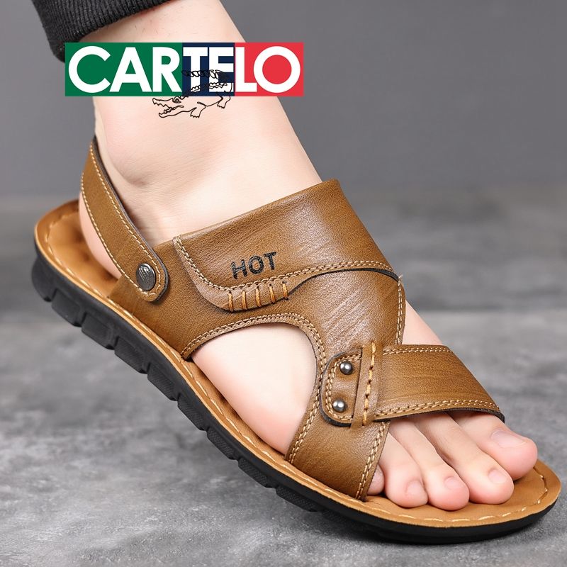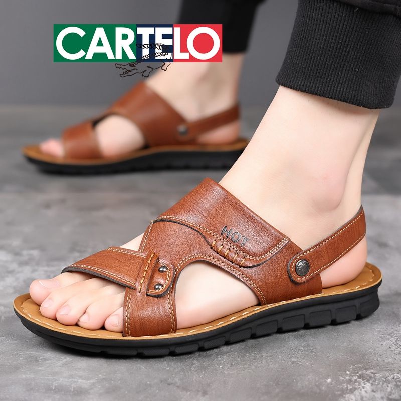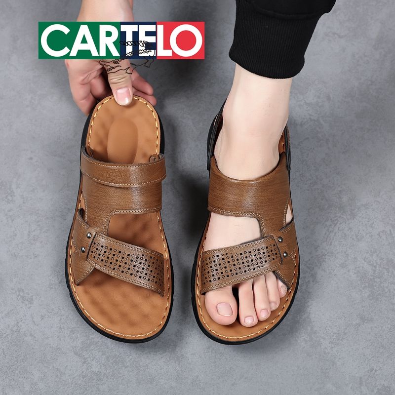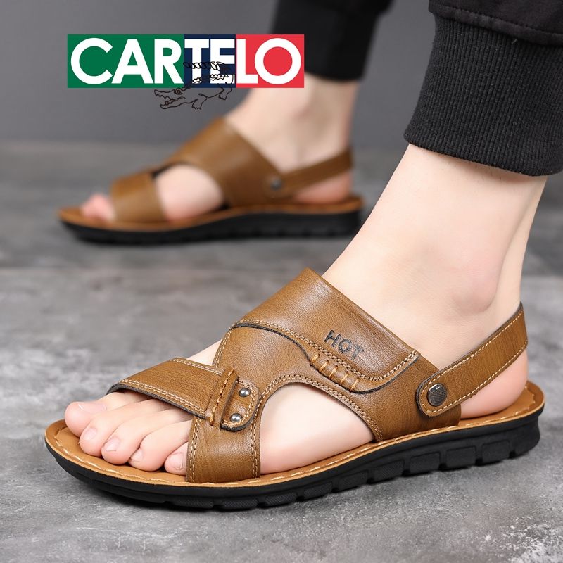 卡帝乐鳄鱼真皮牛皮凉鞋夏季休闲男士防滑软底厚底沙滩鞋两用拖鞋