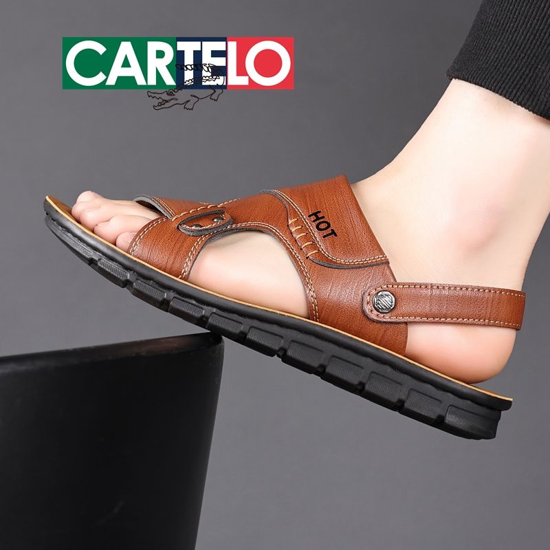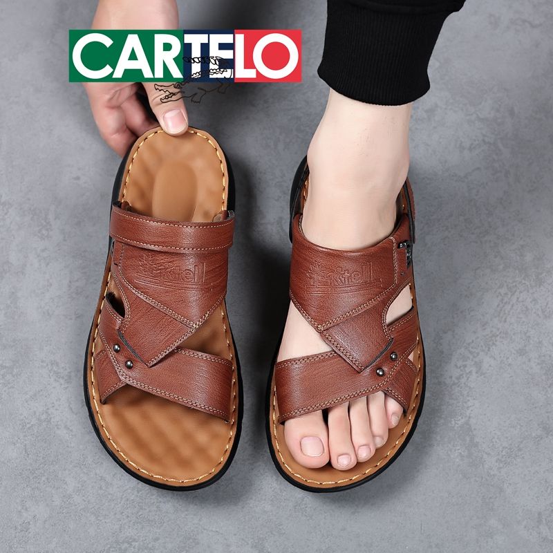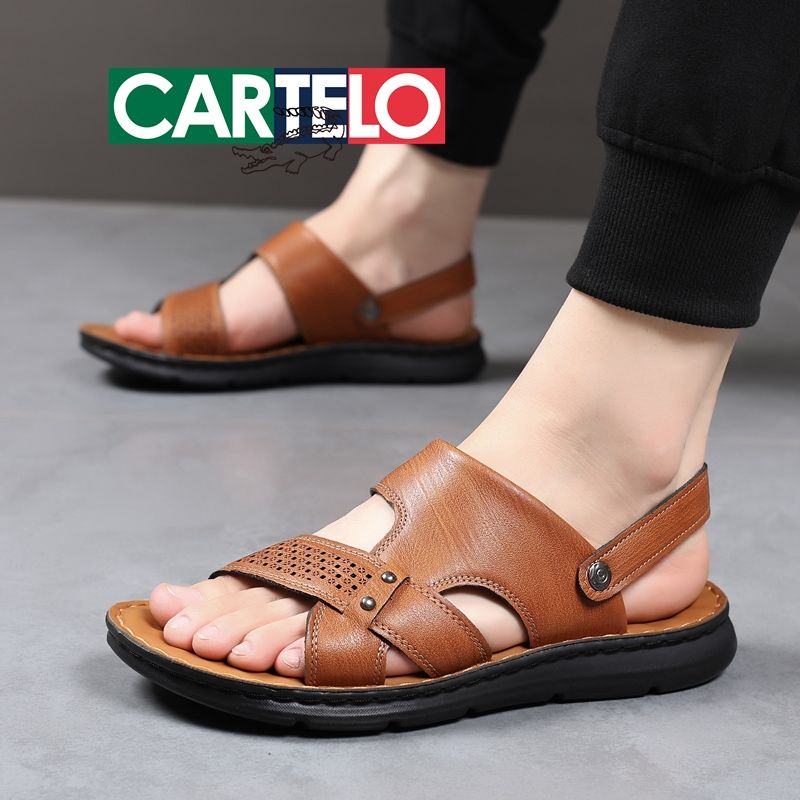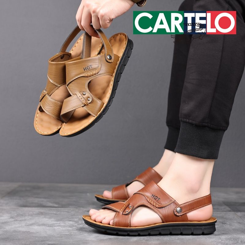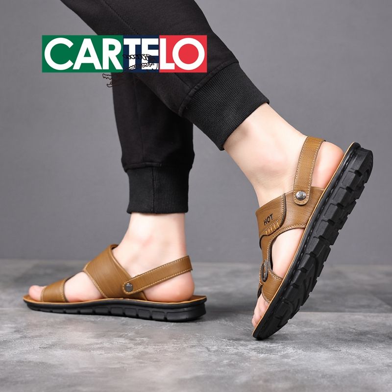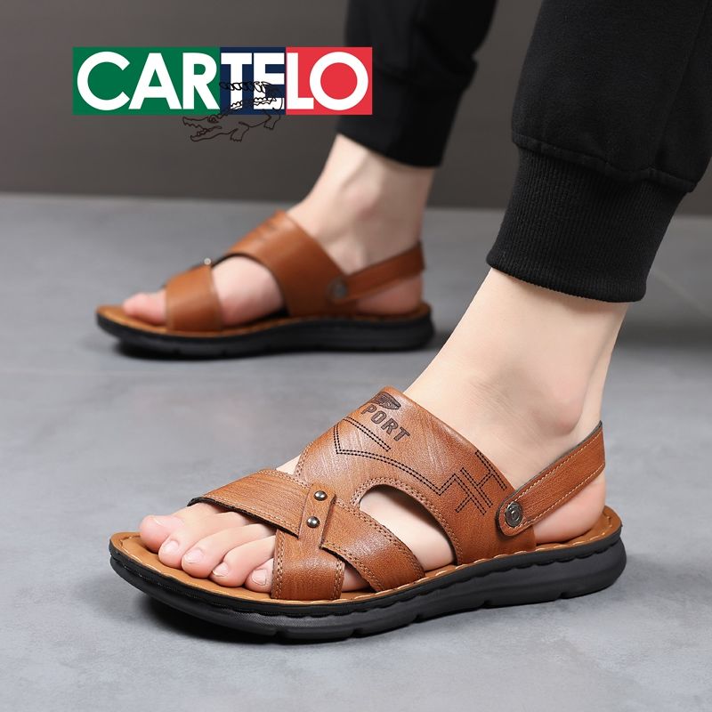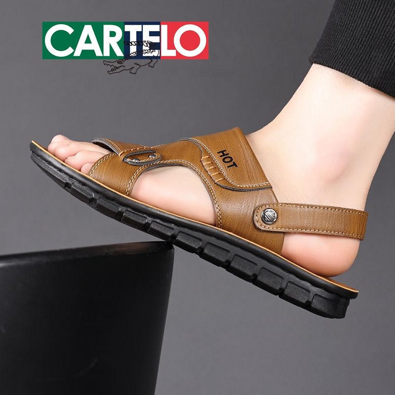 卡帝乐鳄鱼真皮牛皮凉鞋夏季休闲男士防滑软底厚底沙滩鞋两用拖鞋