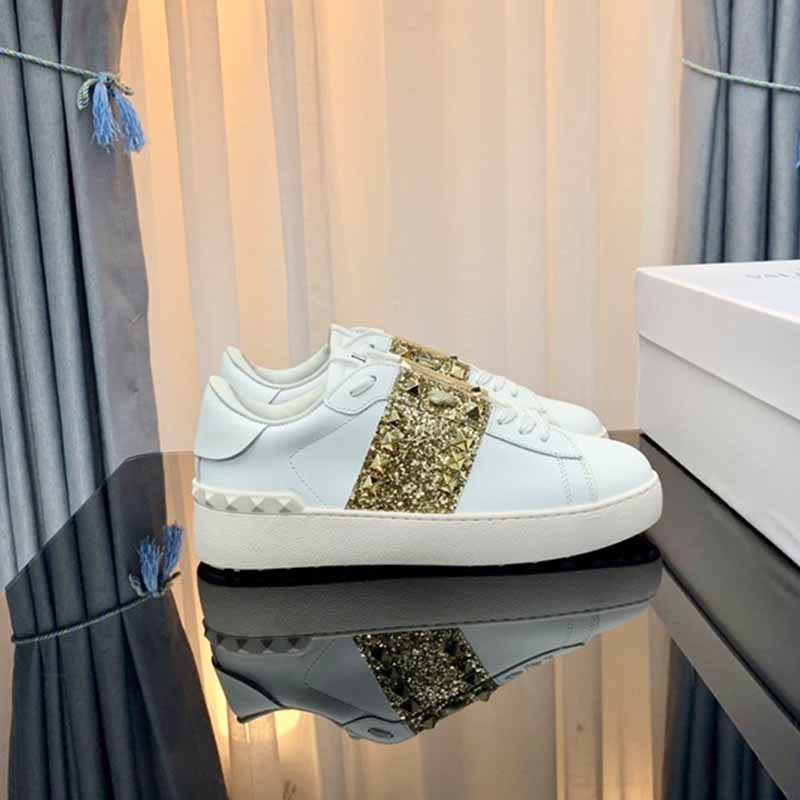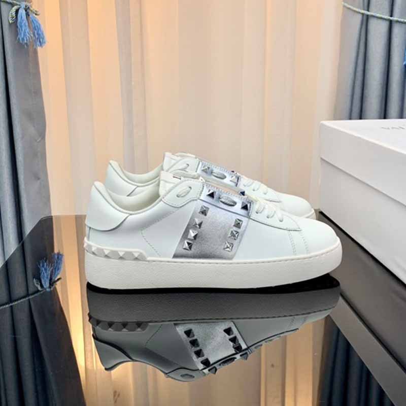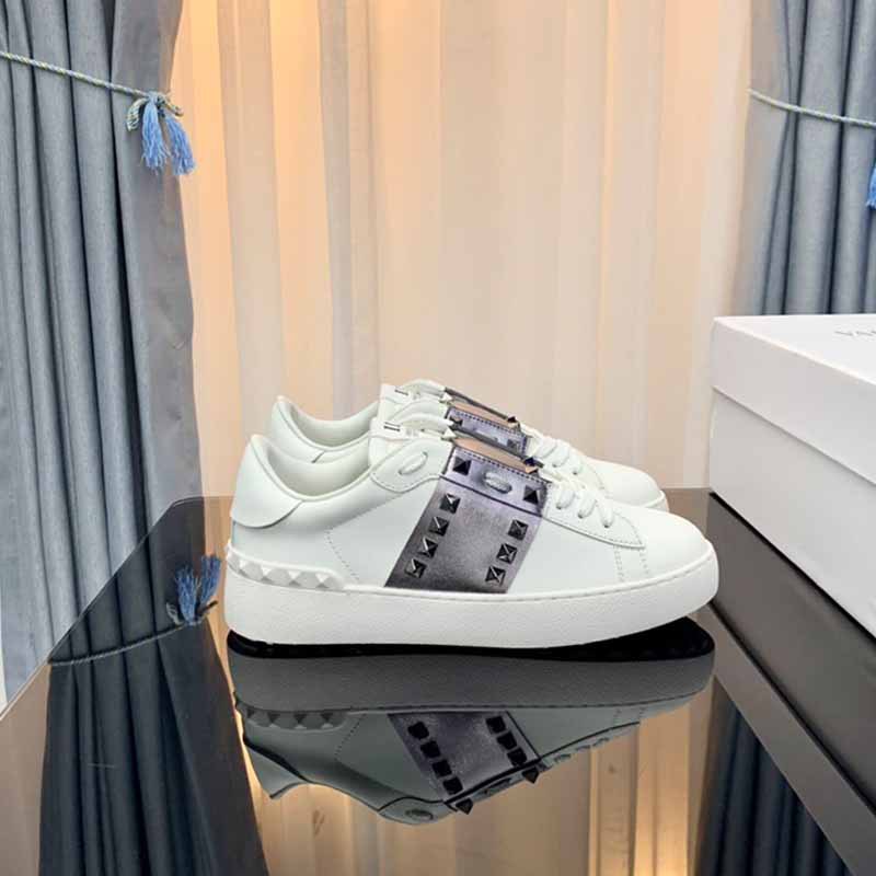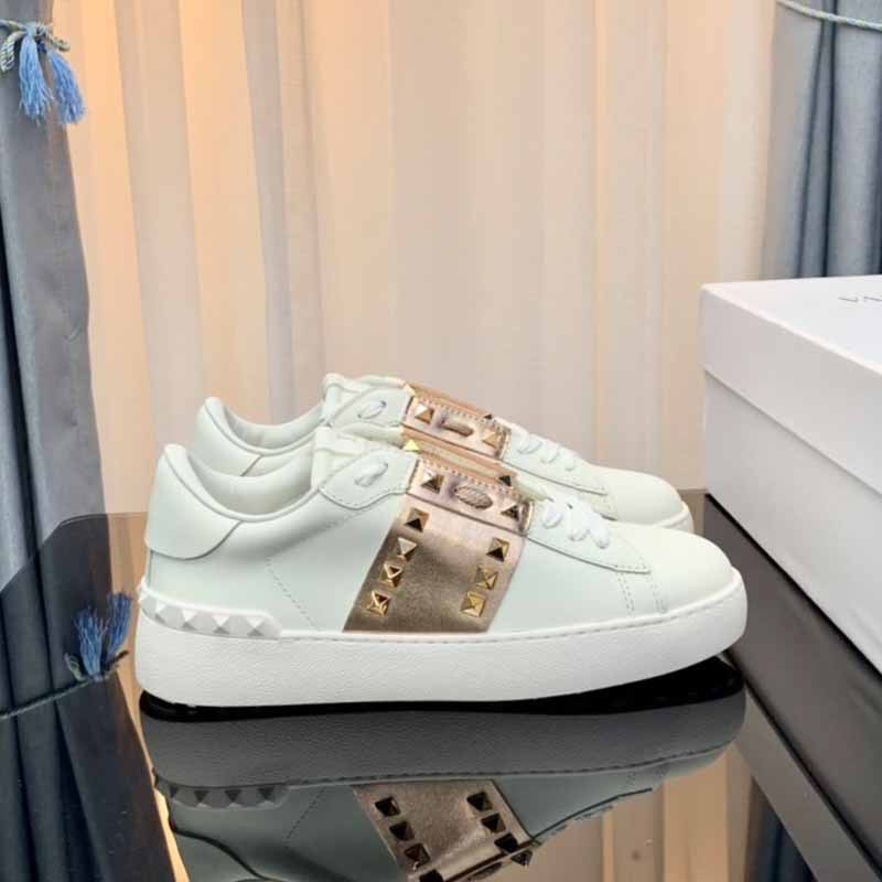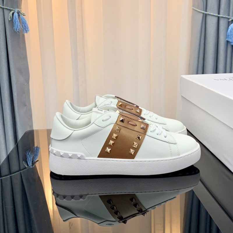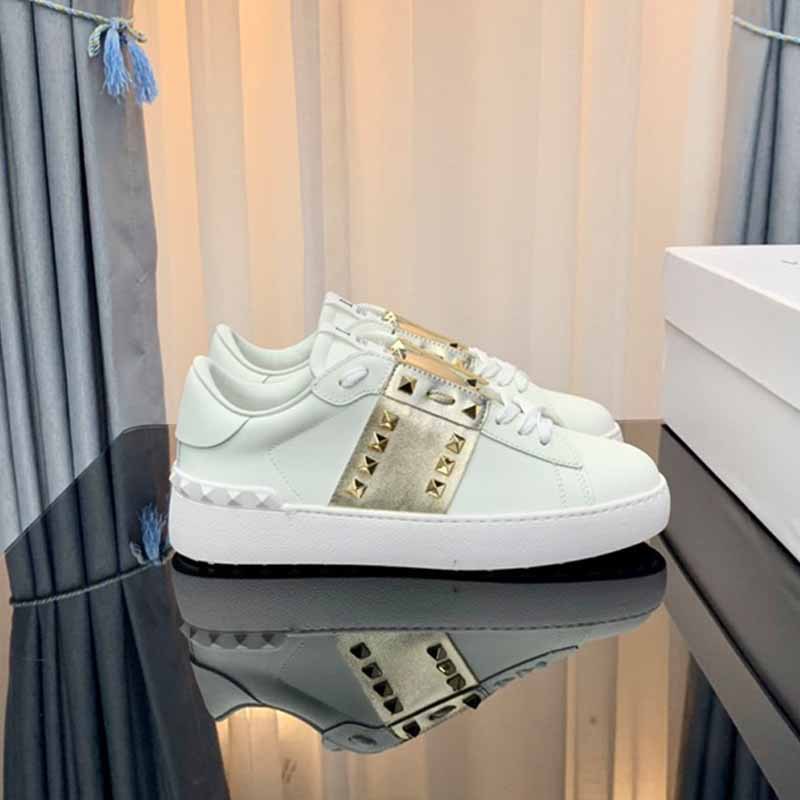 外贸V家休闲运动鞋铆钉小白鞋真皮时尚潮流情侣单鞋男女同款鞋