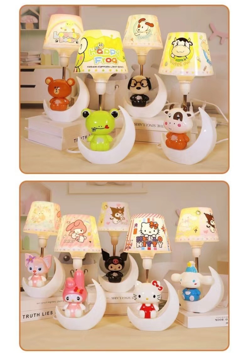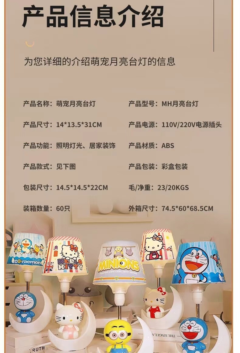 库洛米桌面月亮台灯学习护眼灯按钮插电夜灯可扭转卧室床头灯夜灯
