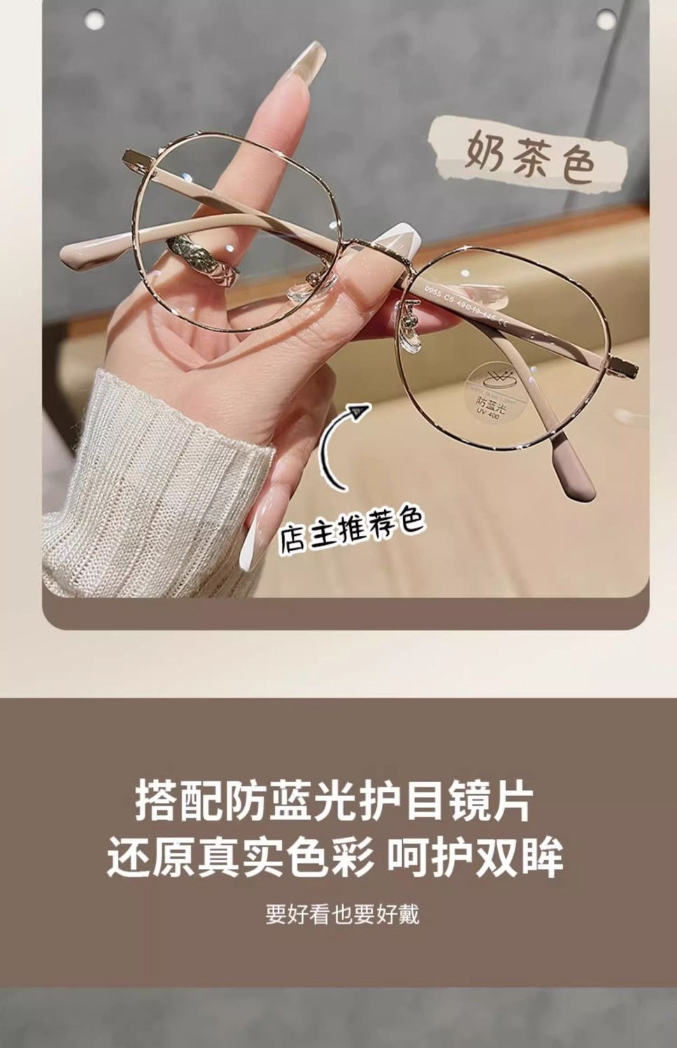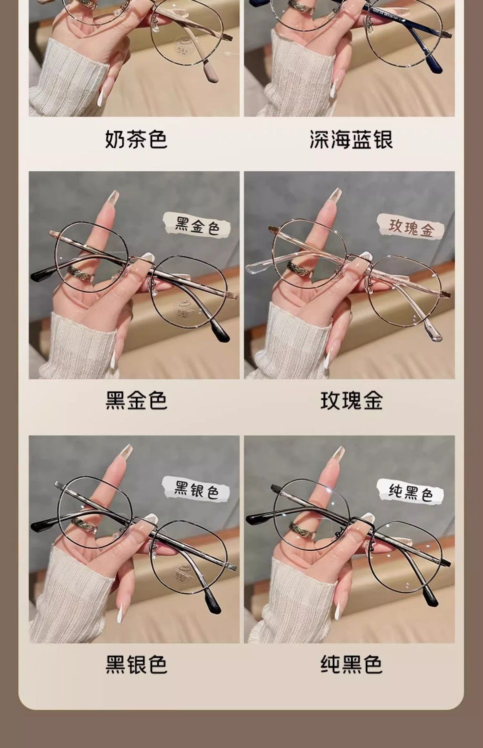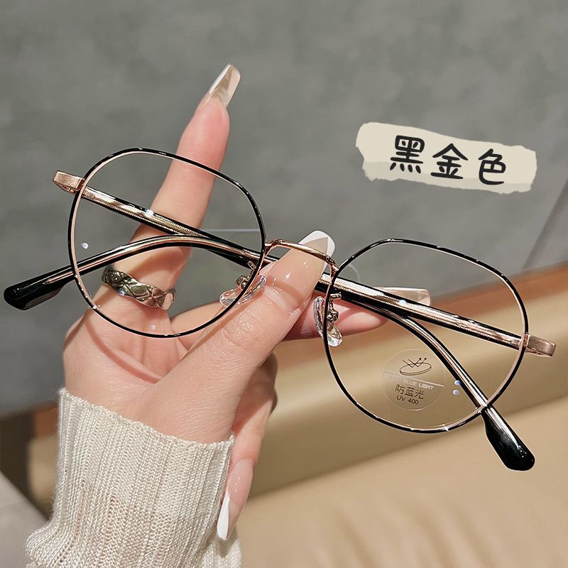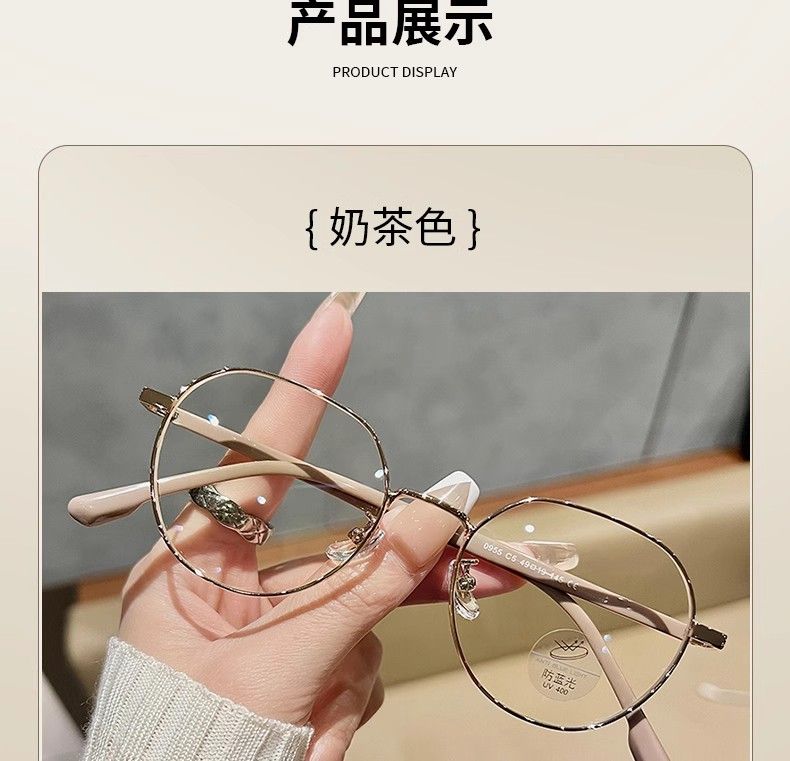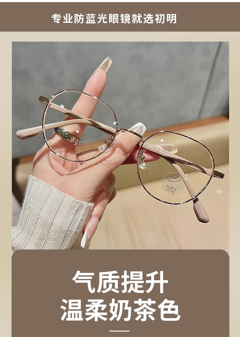 韩系显白奶茶色眼镜框女可配近视度数素颜文艺小框金丝防蓝光变色