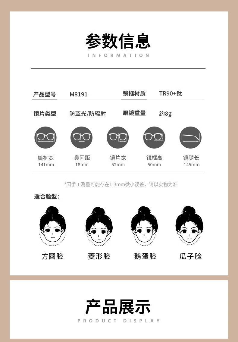 | [advanced anti-blue ray radiation protection] customized 300 degrees(【高级防蓝光防辐射】定制300度) | USD $14.53 | 99999 piece available |
