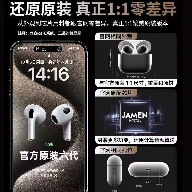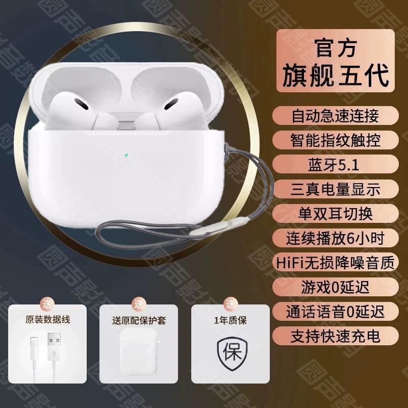华强北新款蓝牙耳机五代新款高音质运动降噪入耳式ios安卓通用