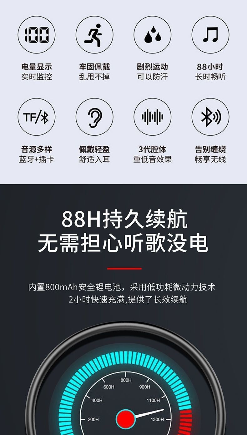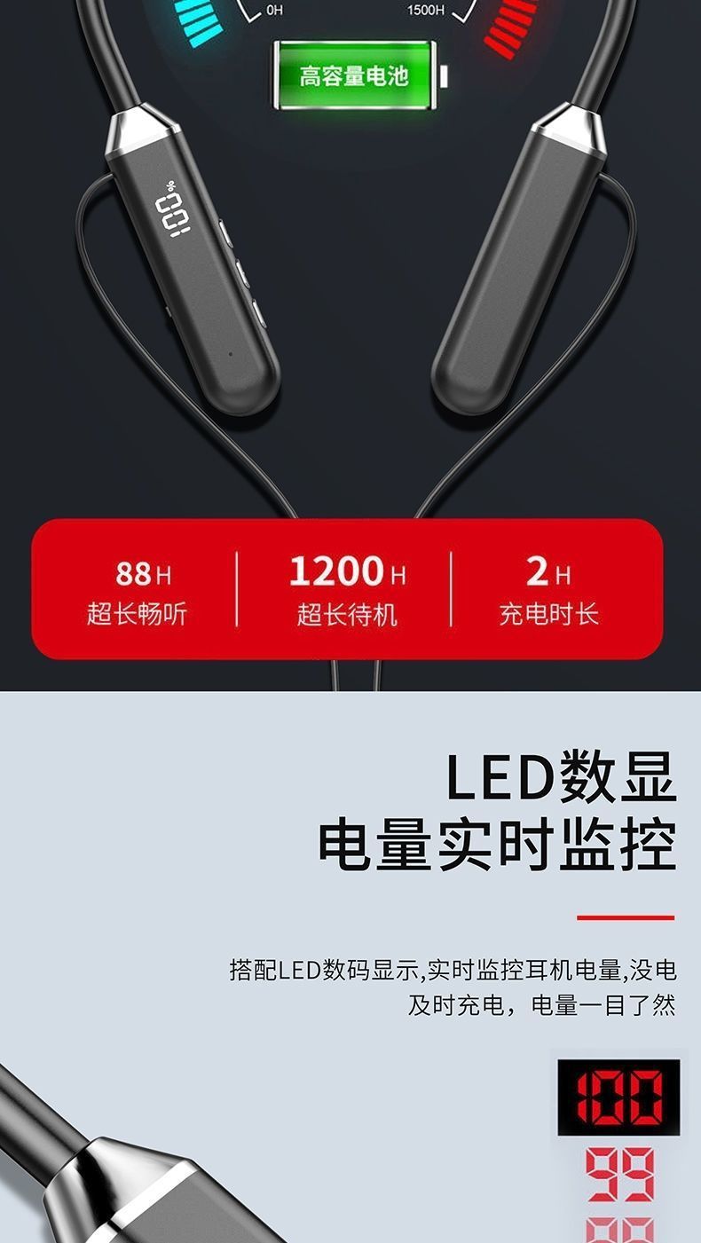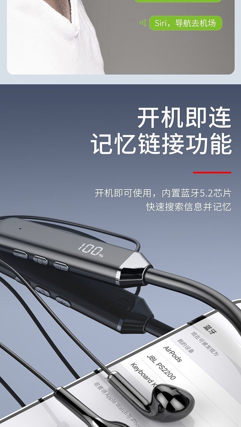 无线蓝牙耳机运动型挂脖超长待机重低音华为苹果VIVO小米OPPO通用