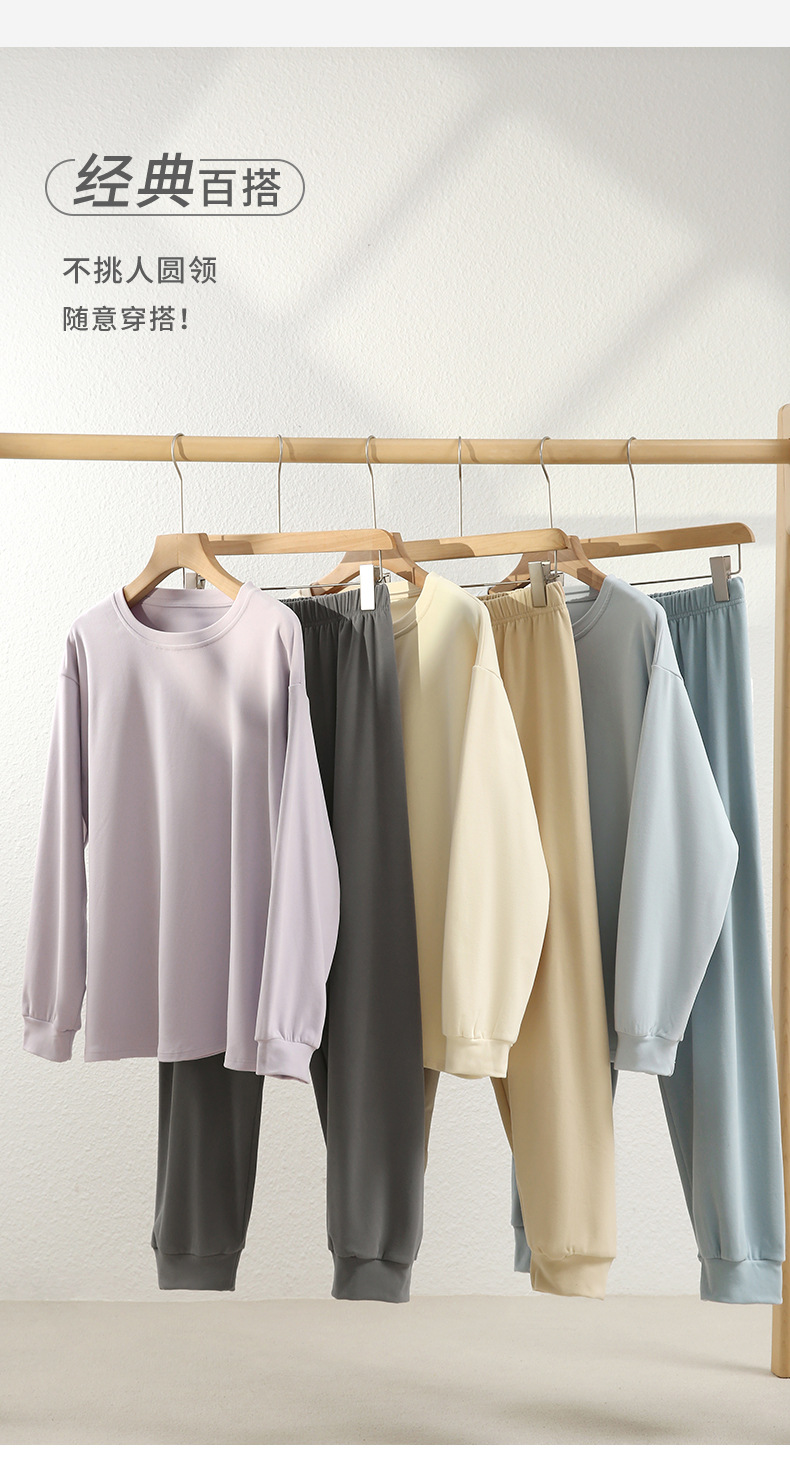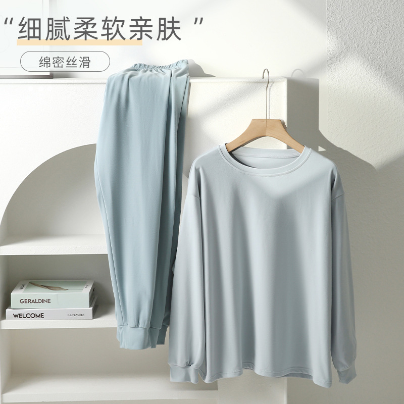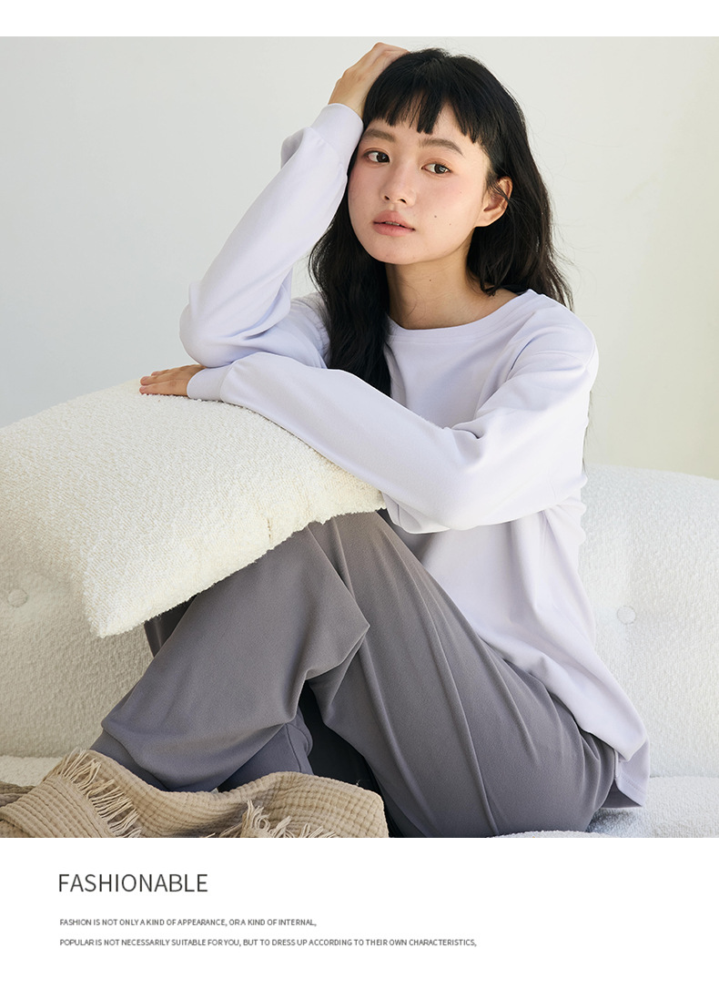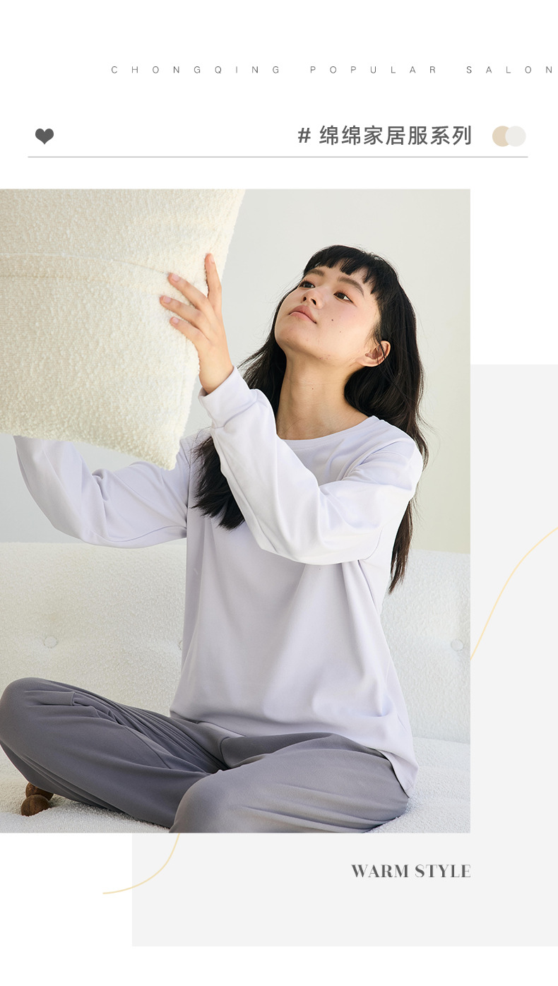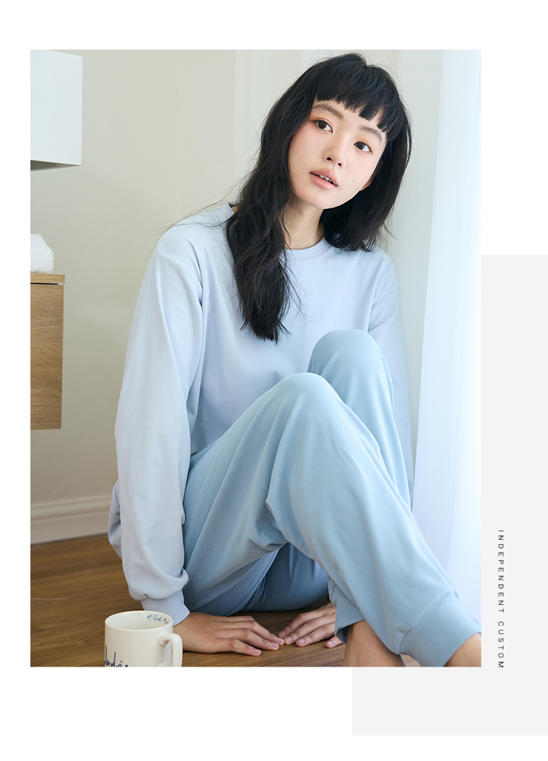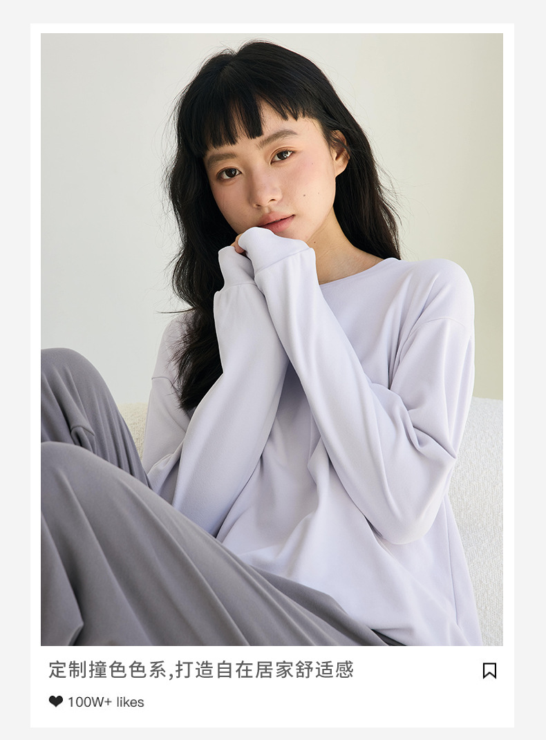 家居服女秋冬撞色套装宽松圆领长袖上衣休闲长裤软糯外穿套头睡衣